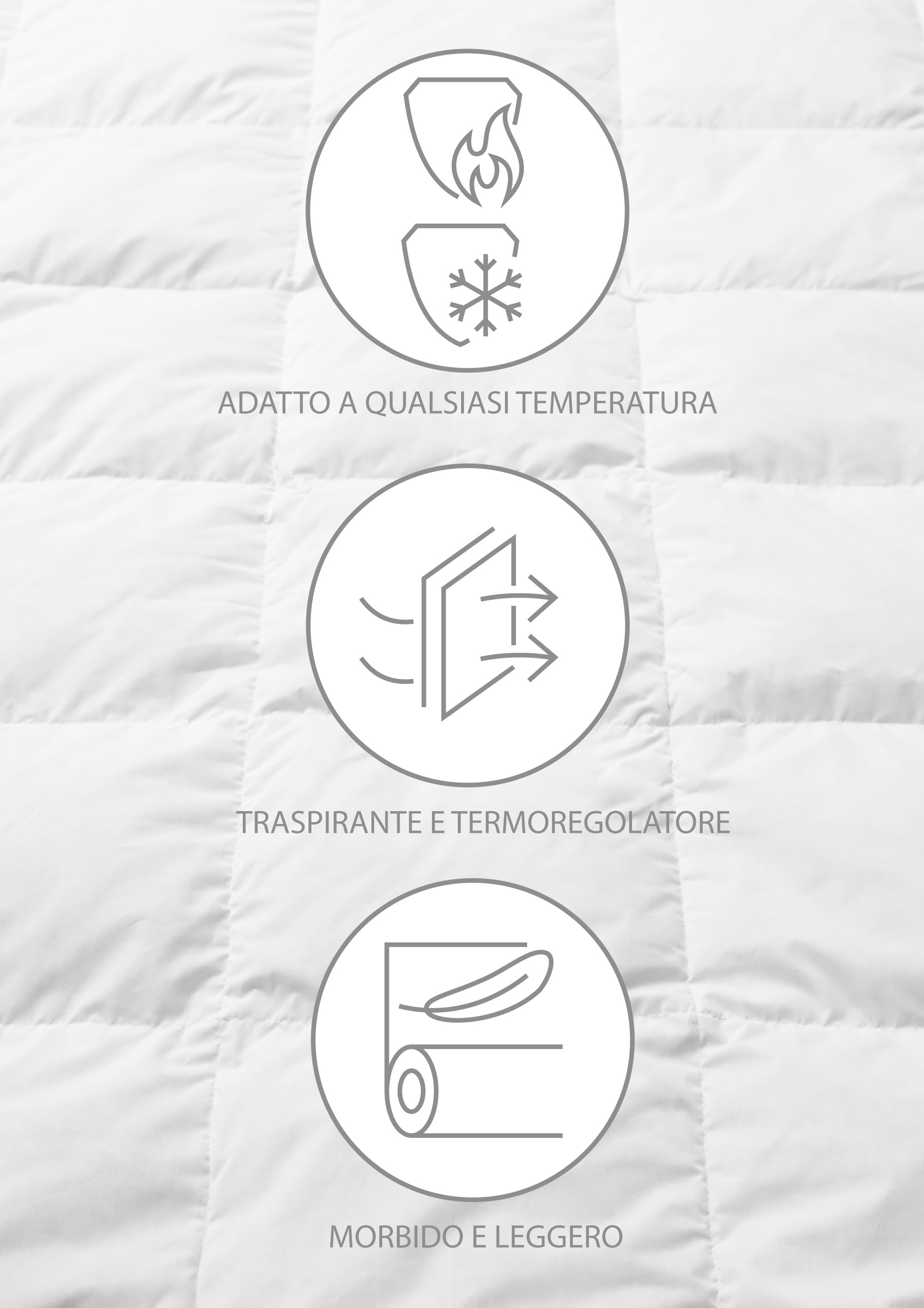 ✔️Composizione: 50% Piumino d'oca 50% Piumette d'oca, tessuto in raso di cotone colore bianco trapuntatura a quadri per una stabilità e una distribuzione omogenea della piuma