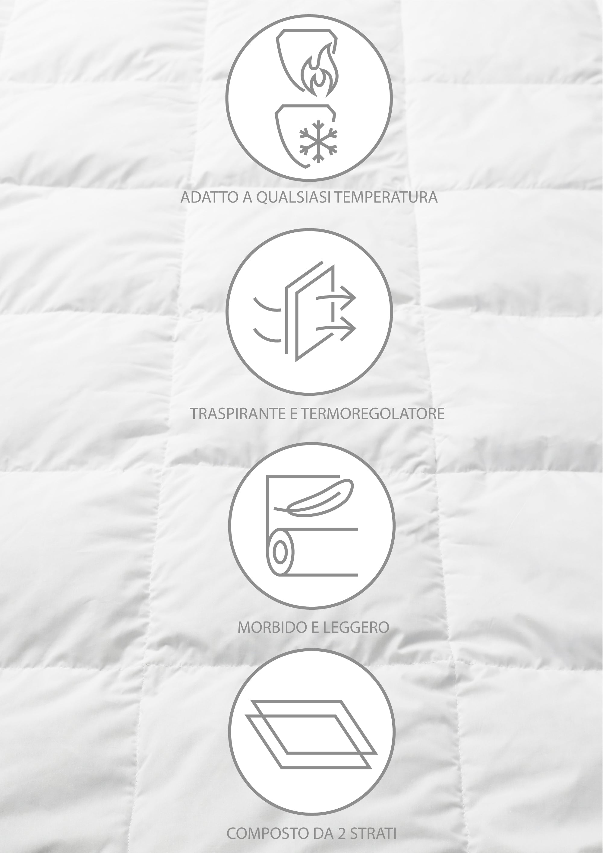 ✔ Qualità: Realizzato seguendo altissimi standard qualitativi, con piume e piumette sterilizzate secondo normative, prodotto certificato. grazie all'alta traspirazione e alla proprietà della Piuma con la sua funzione Termoregolante il piumino garantirà in qualsiasi periodo utilizzato una massima qualità del sonno