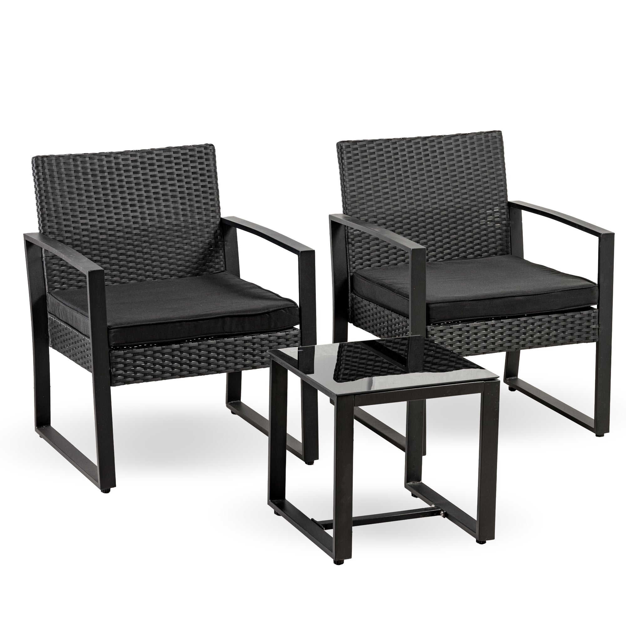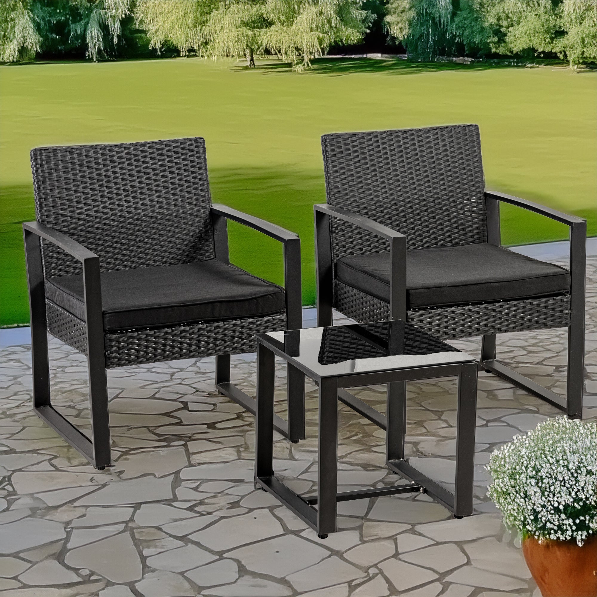 Salottino Da Esterno Set Bistrot Poltrone E Tavolino Elegante Telaio In Acciaio Tavolo Salotto Con Piano In Vetro Temperato Con 2 Sedie Con Comodi Cuscini Terrazzo Balcone Giardino Rivestimento Rattan