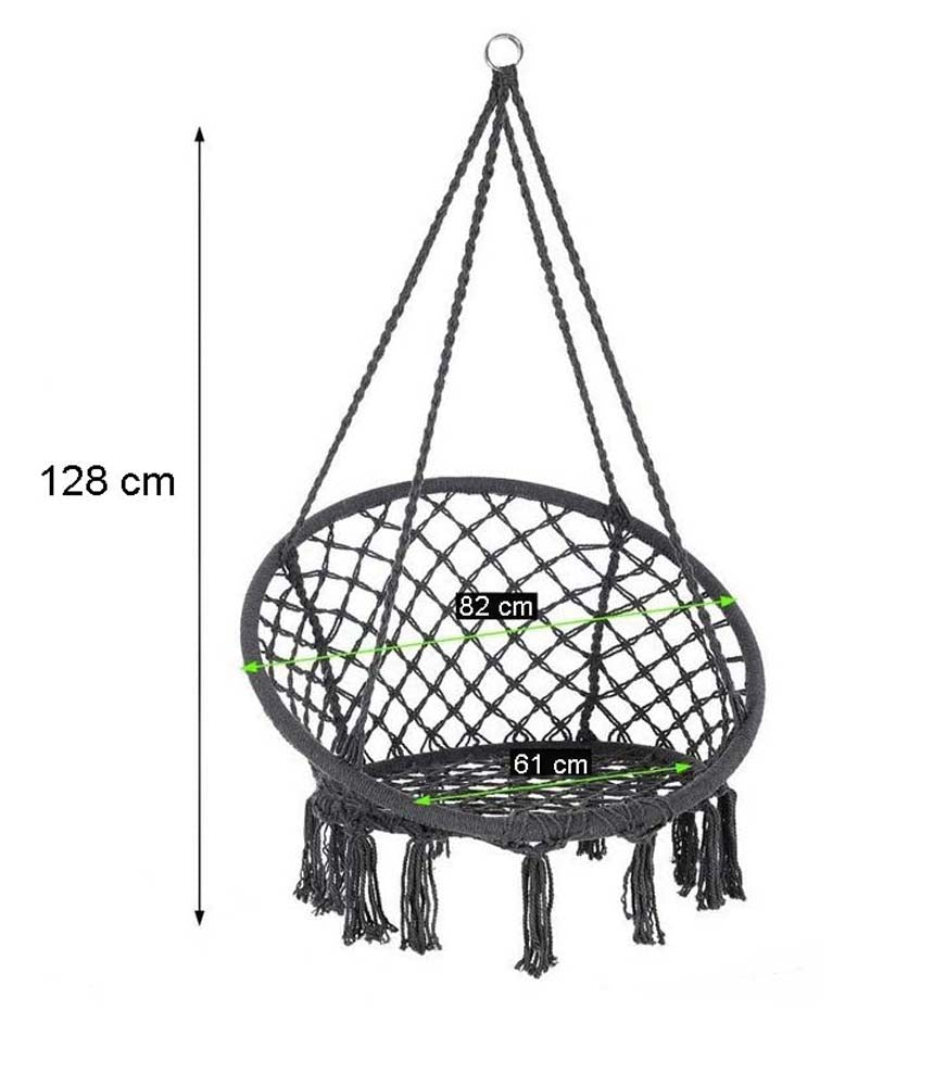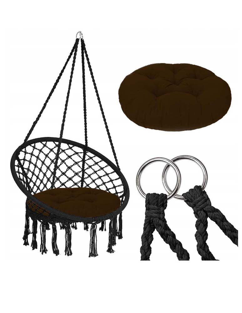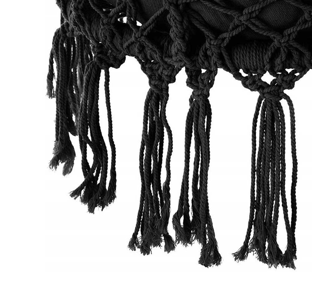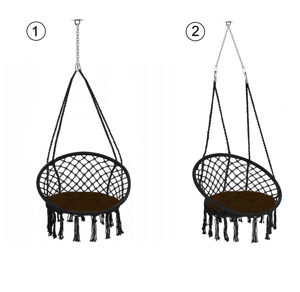 Sedia Sospesa ad Altalena Lavorata a maglia con Corda in Cotone Frange Macrame Con Comodo Cuscino Sfoderabile Amaca per Interni/Esterni Capacità 120 Kg Nero
