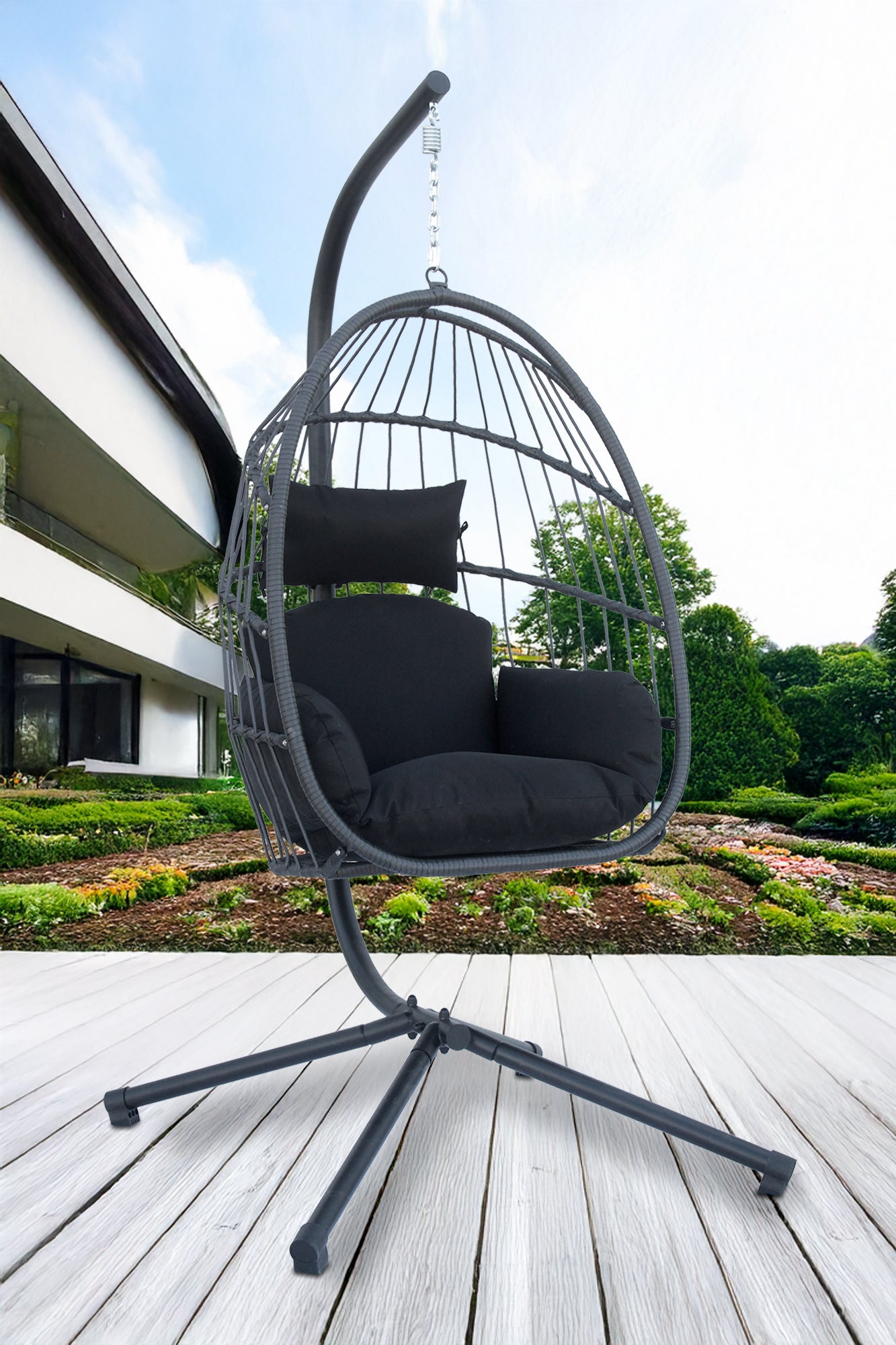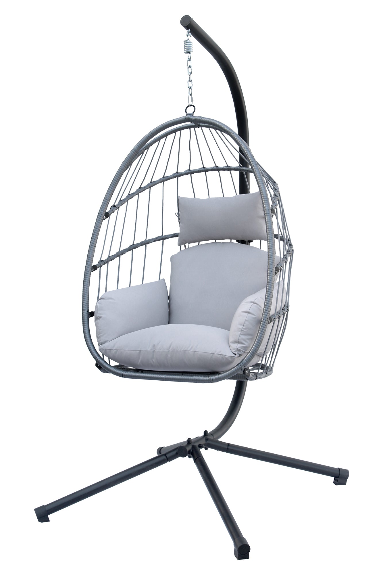 Sedia A Dondolo Poltrona Pensile Sospesa In Rattan Struttura In Acciaio Cuscini Sfoderabili Ovetto Richiudibile Altalena Giardino Casa Struttura Inclusa