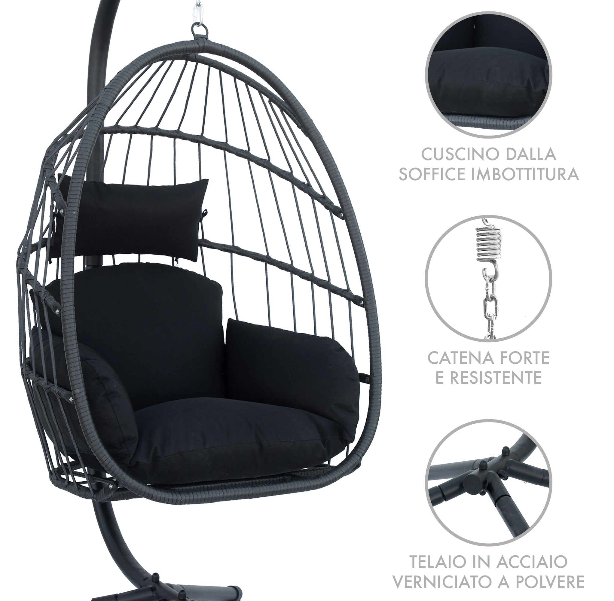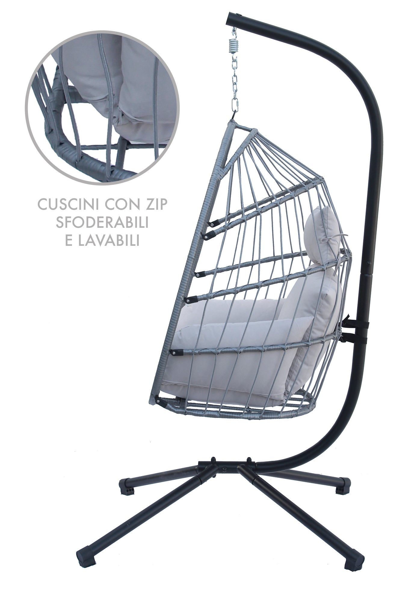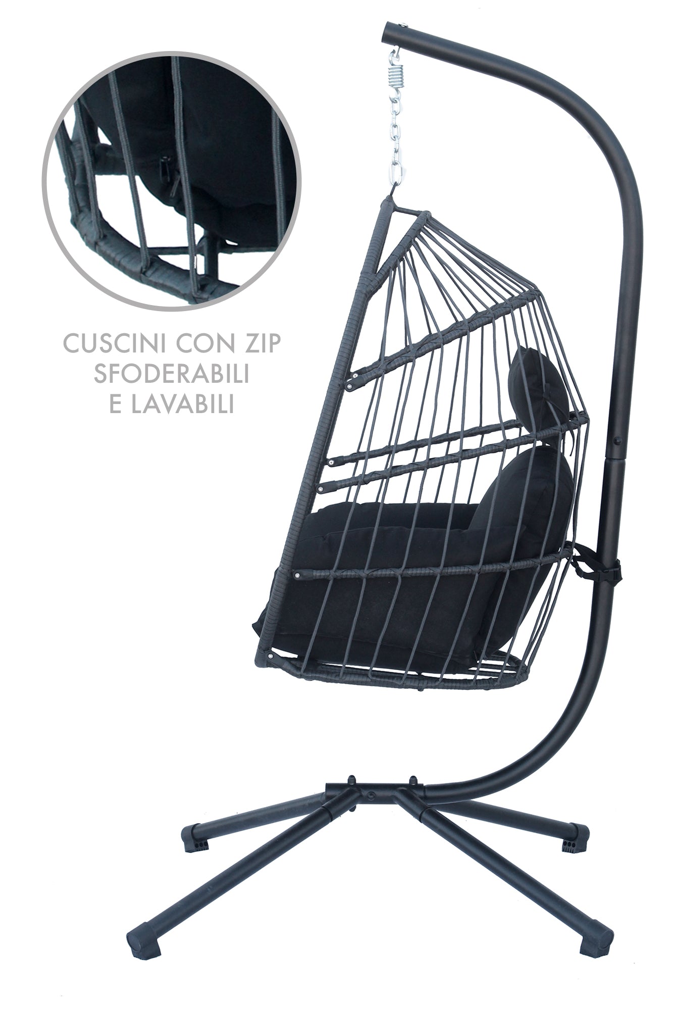 ✔️SEDIA A DONDOLO POLTRONA PENSILE:Sospesa per Interno ed Esterno Ovetto Modello Annette a Nido Uovo AutoPortante Richiudibile Completa di Struttura in Acciaio e Cuscini Sfoderabili