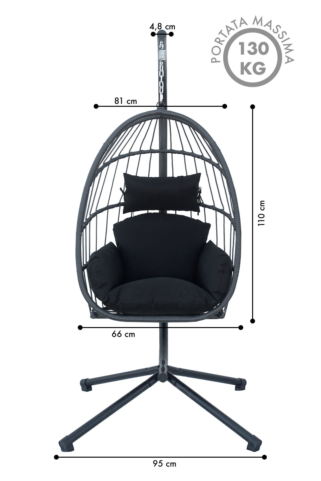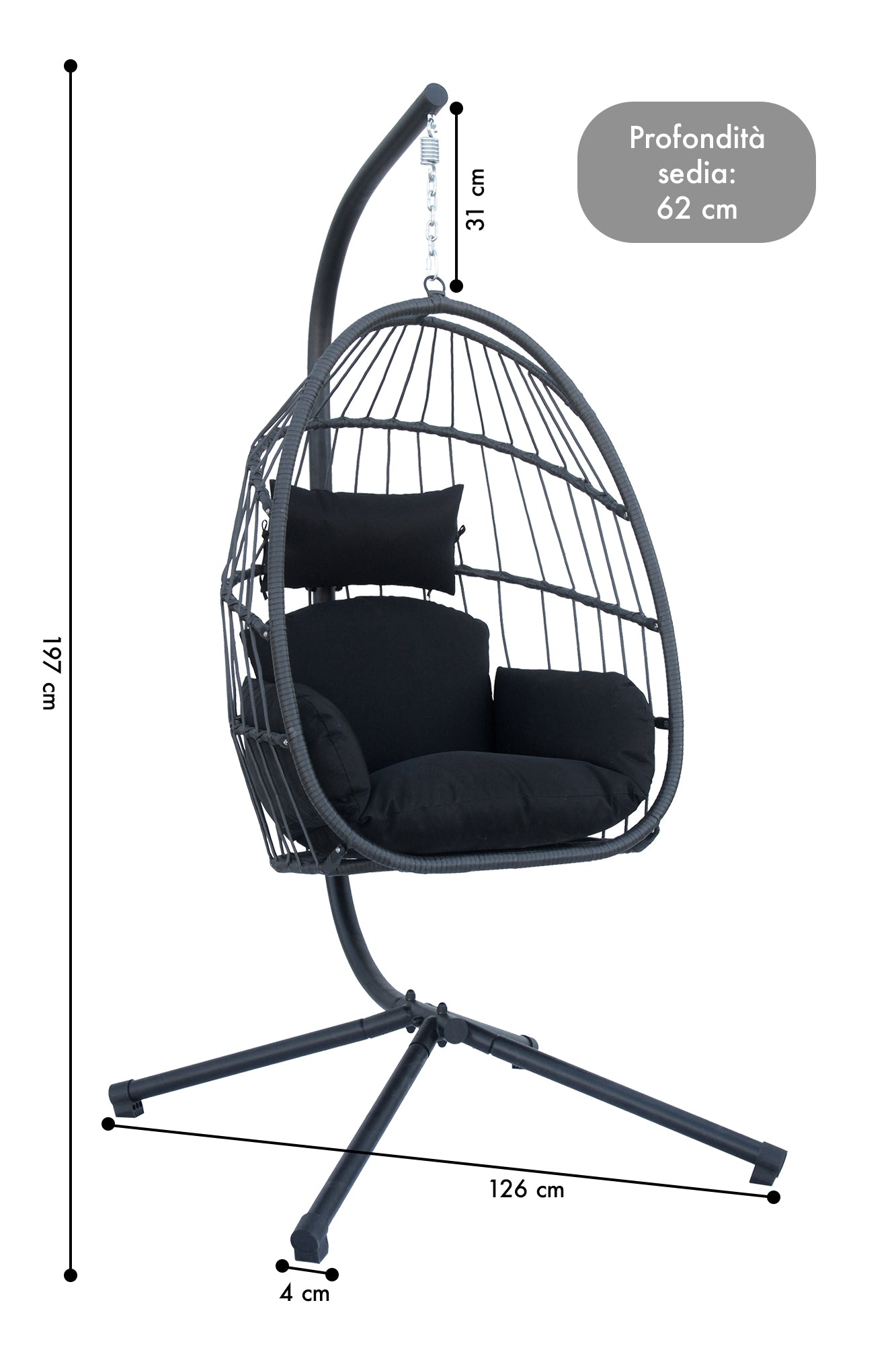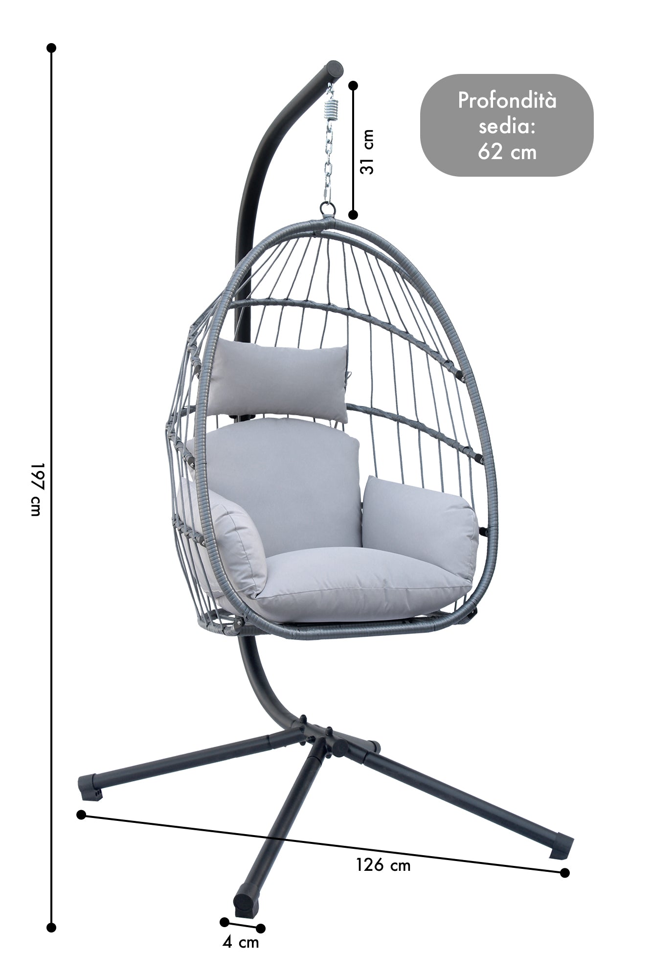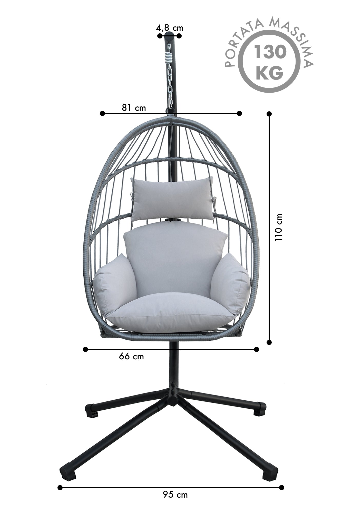 ✔️SEDIA A DONDOLO POLTRONA PENSILE:Sospesa per Interno ed Esterno Ovetto Modello Annette a Nido Uovo AutoPortante Richiudibile Completa di Struttura in Acciaio e Cuscini Sfoderabili