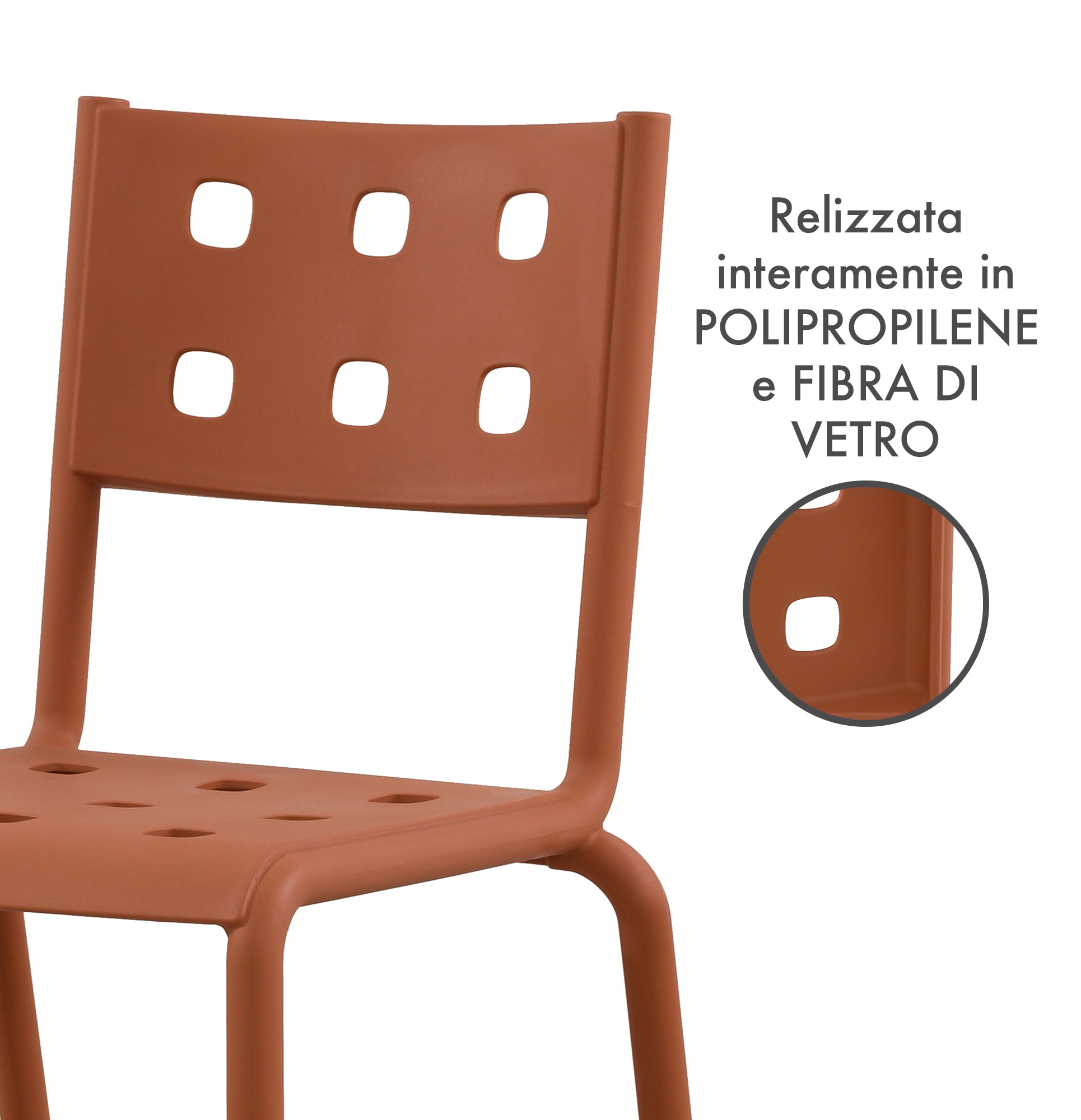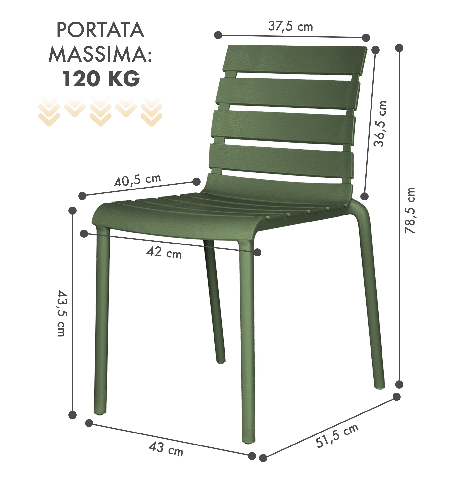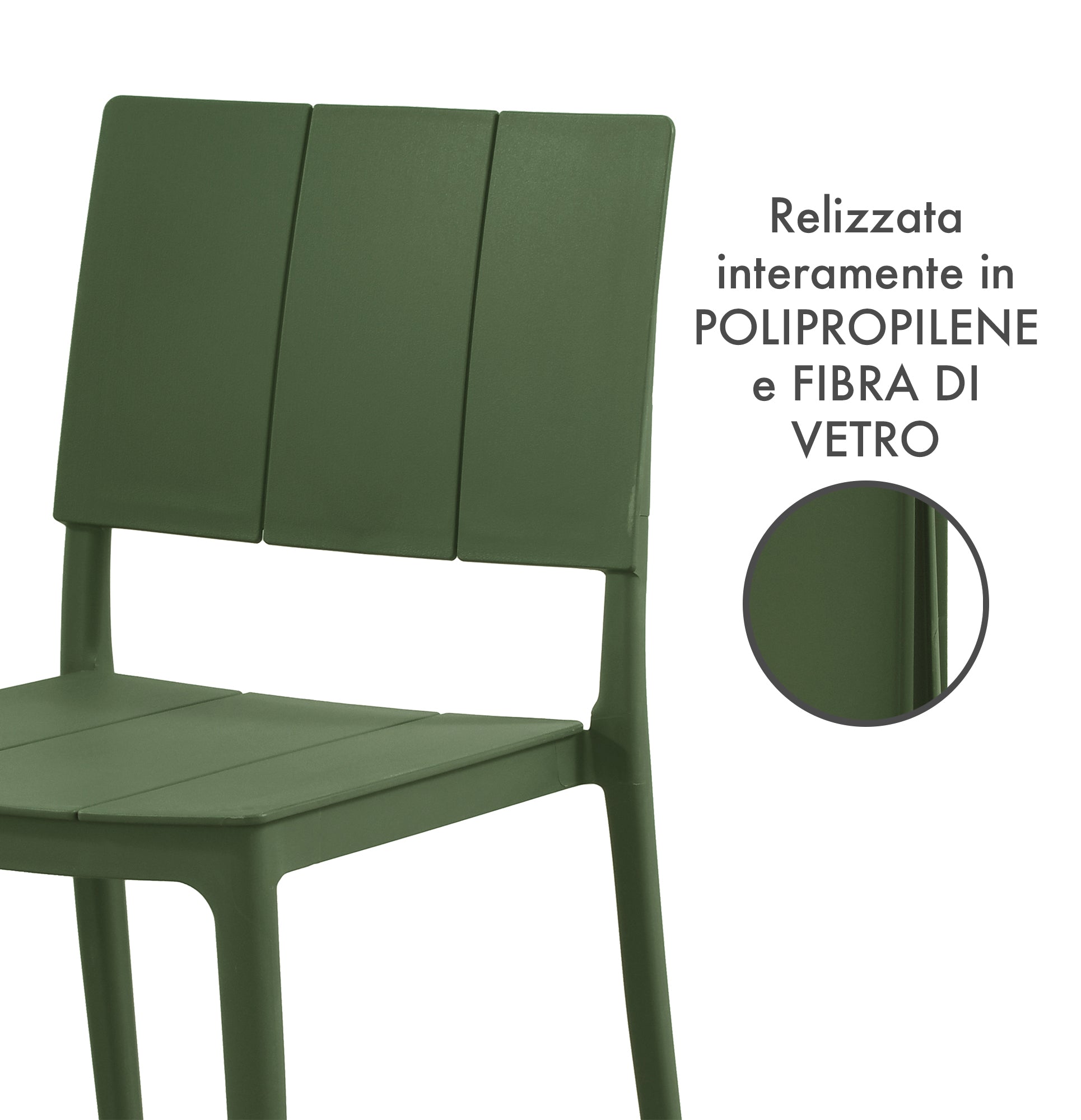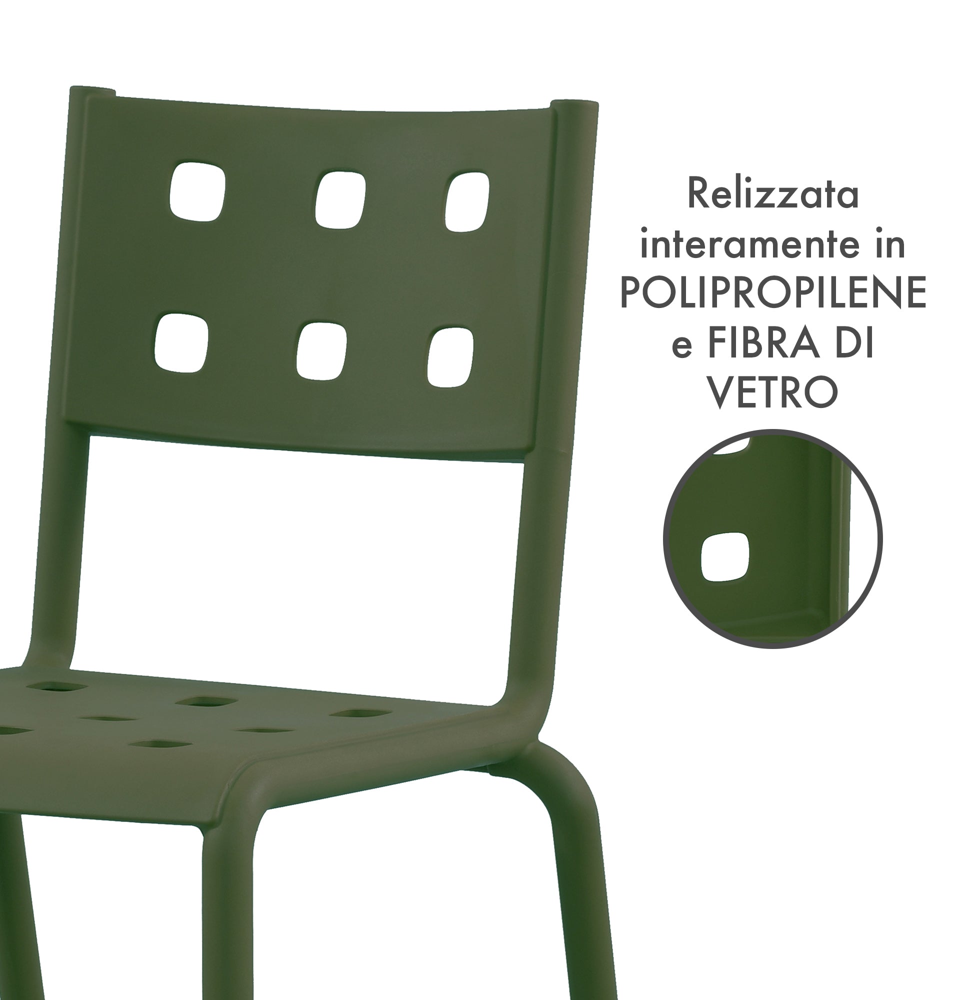 ✔️PRODOTTO CON MATERIALE DI QUALITA': Il set comprende 4 sedie realizzate in polipropilene e fibra di vetro, un materiale composito che combina leggerezza e grande resistenza. La fibra di vetro nelle sedie aumenta robustezza, durabilità e stabilità, offrendo una struttura resiliente contro sollecitazioni meccaniche come trazione e flessione portata massima consigliata 120 kg