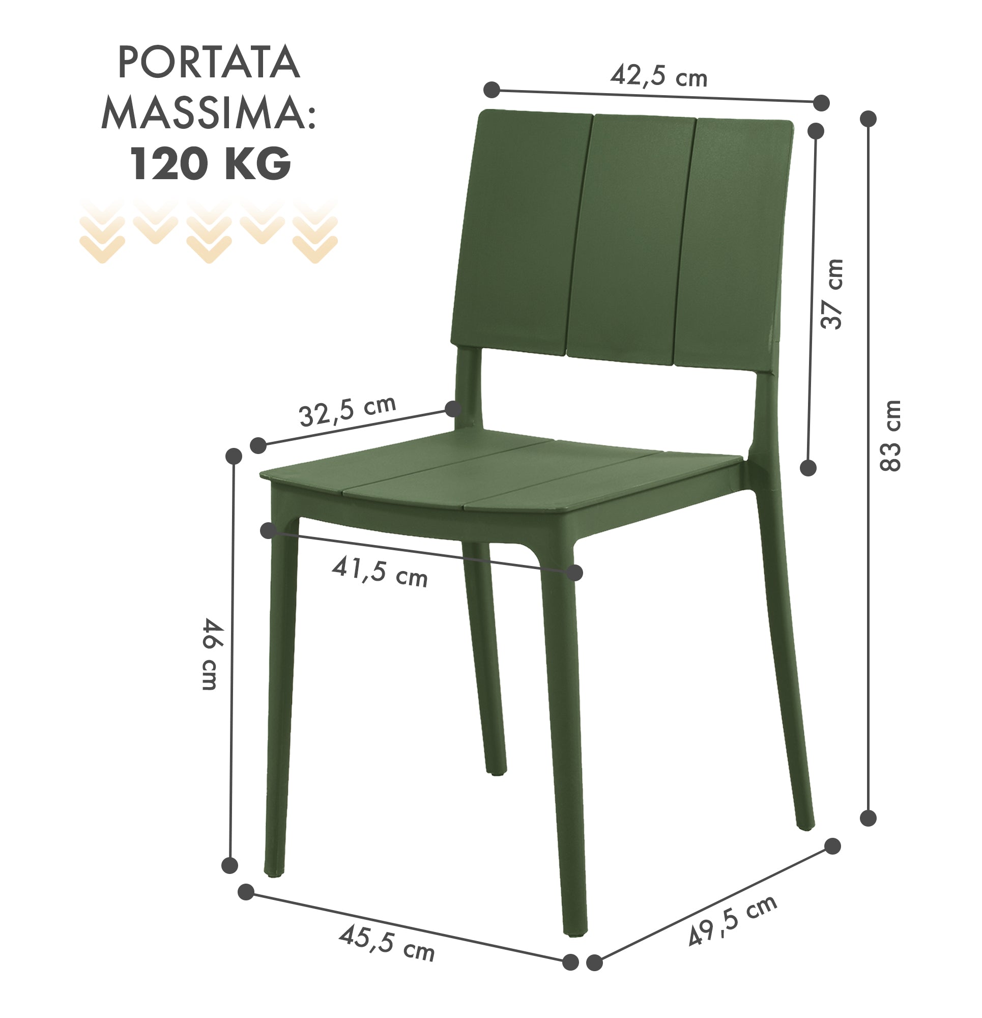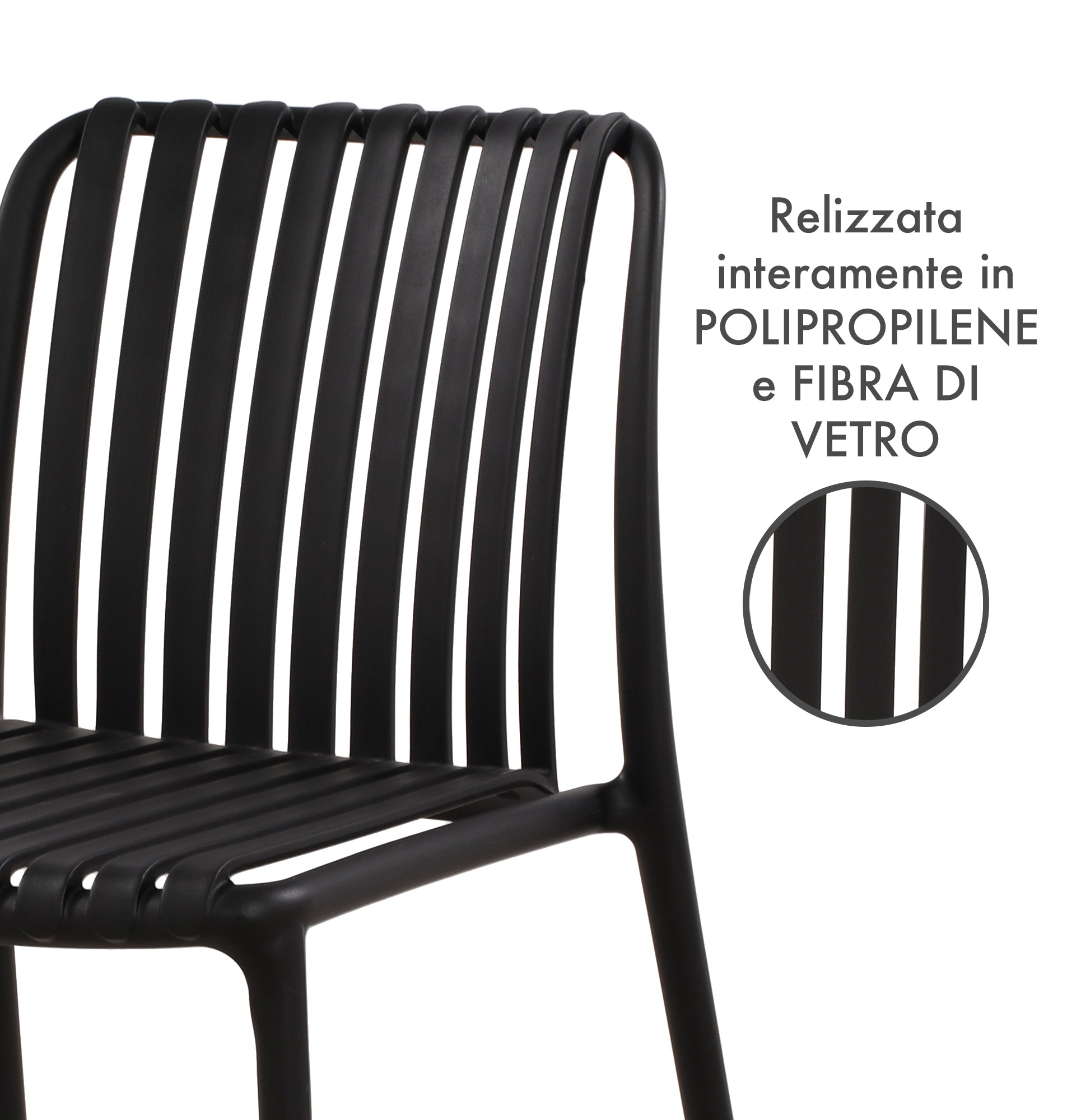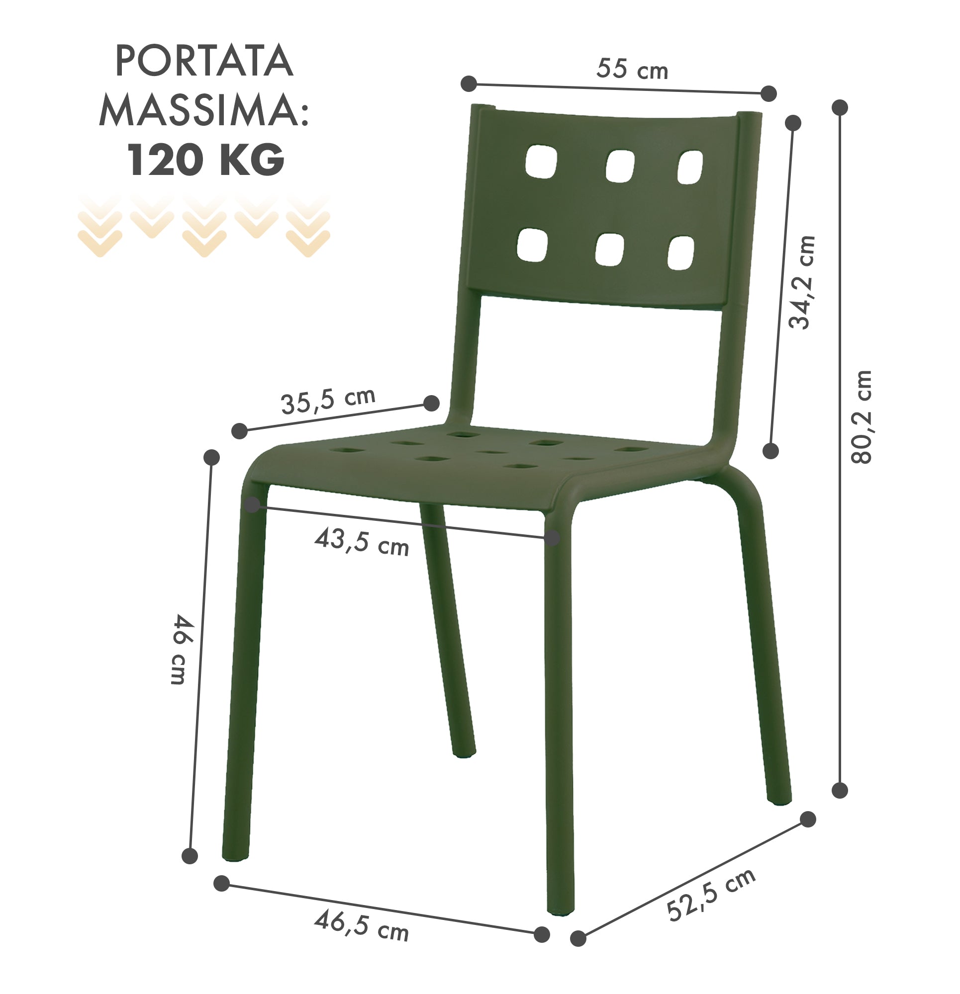 ✔️PRODOTTO CON MATERIALE DI QUALITA': Il set comprende 4 sedie realizzate in polipropilene e fibra di vetro, un materiale composito che combina leggerezza e grande resistenza. La fibra di vetro nelle sedie aumenta robustezza, durabilità e stabilità, offrendo una struttura resiliente contro sollecitazioni meccaniche come trazione e flessione portata massima consigliata 120 kg