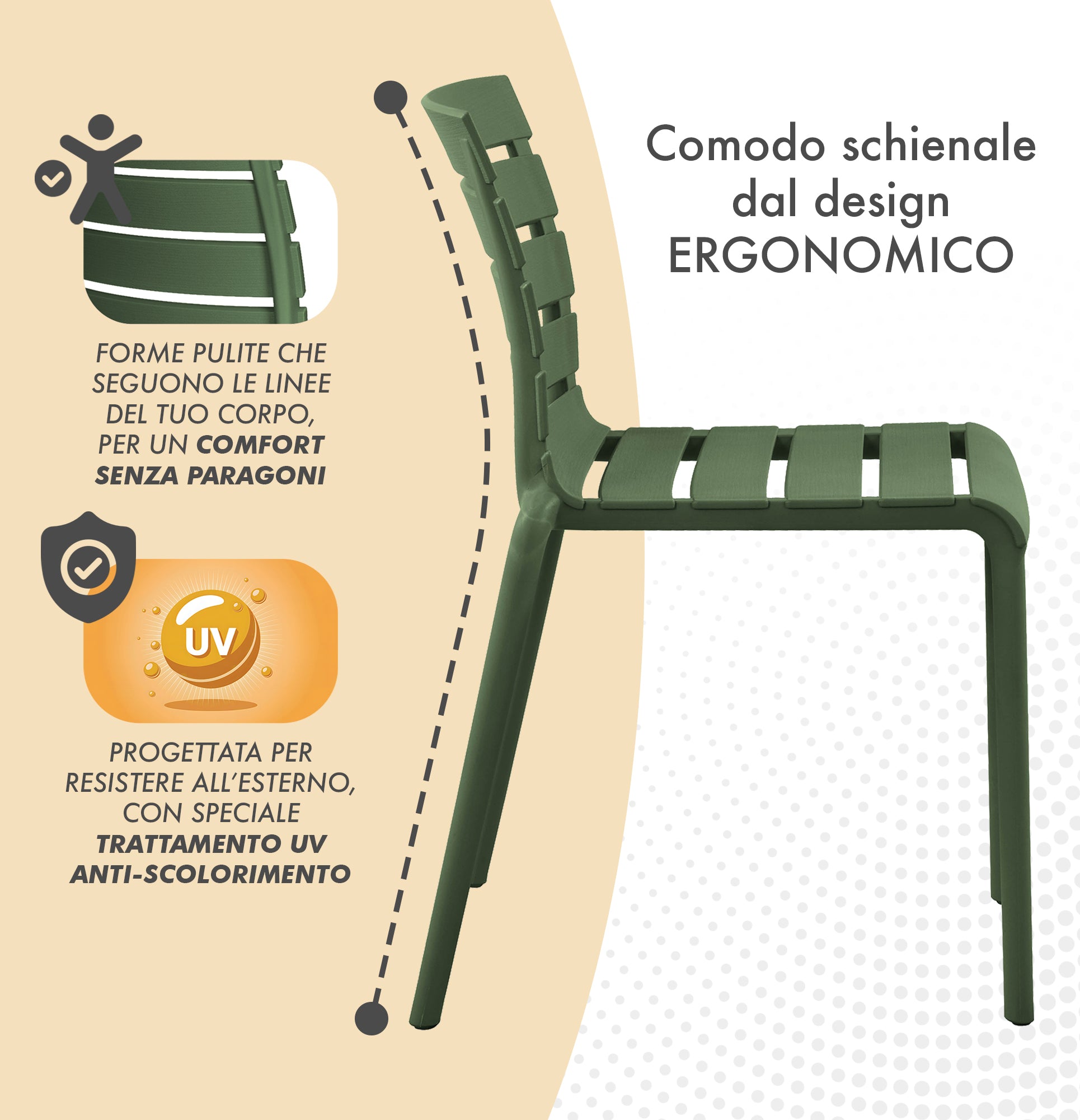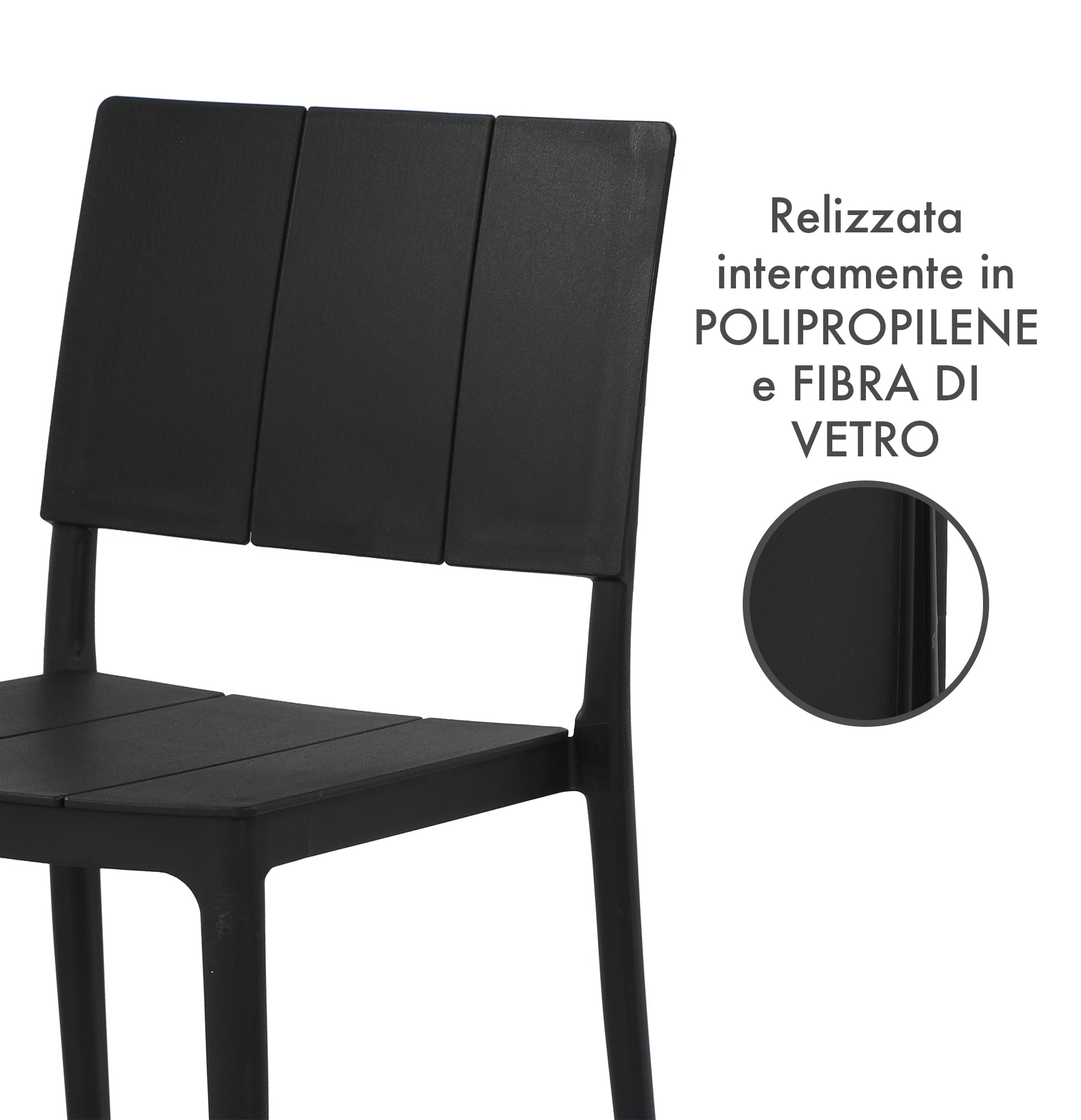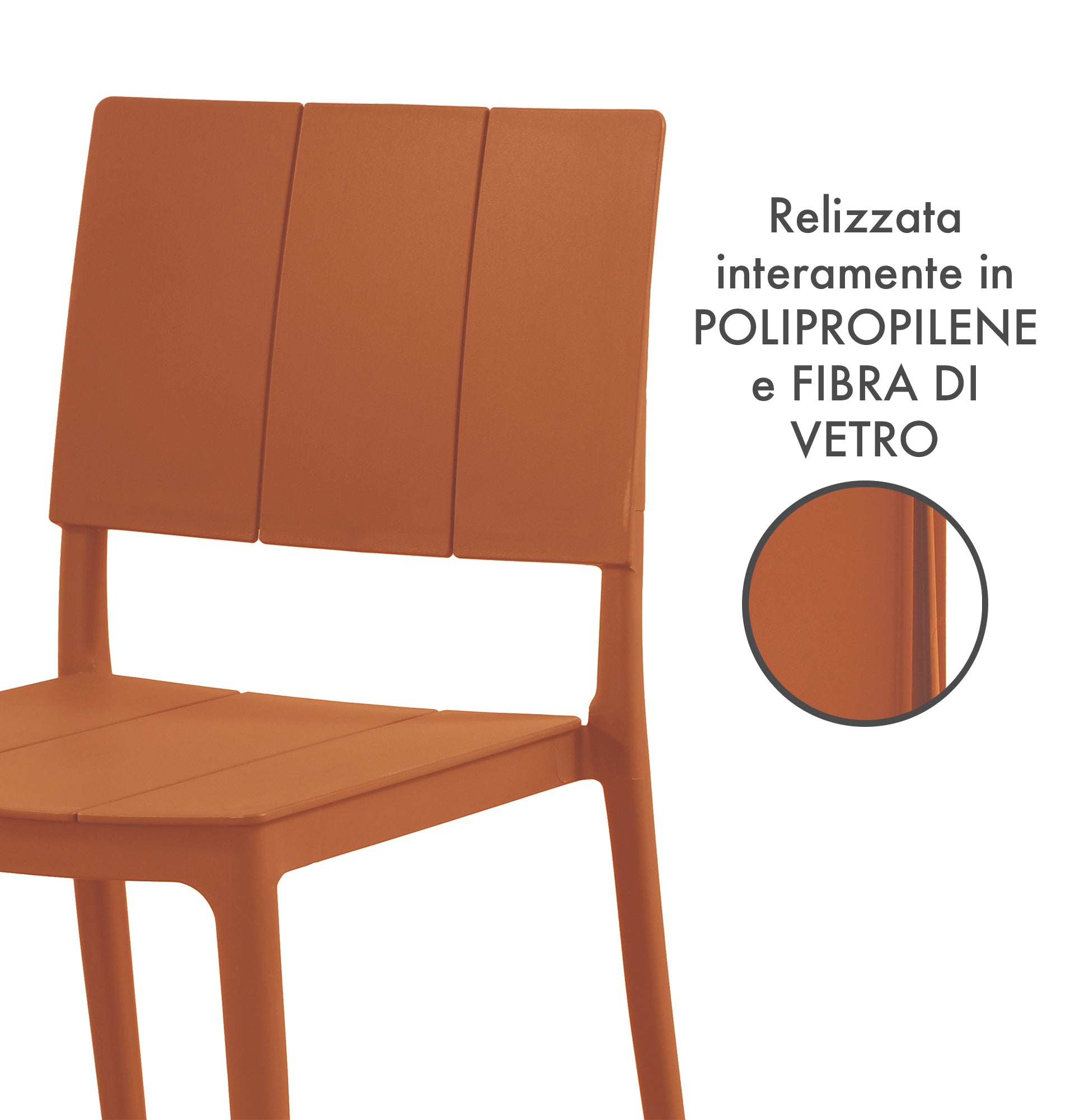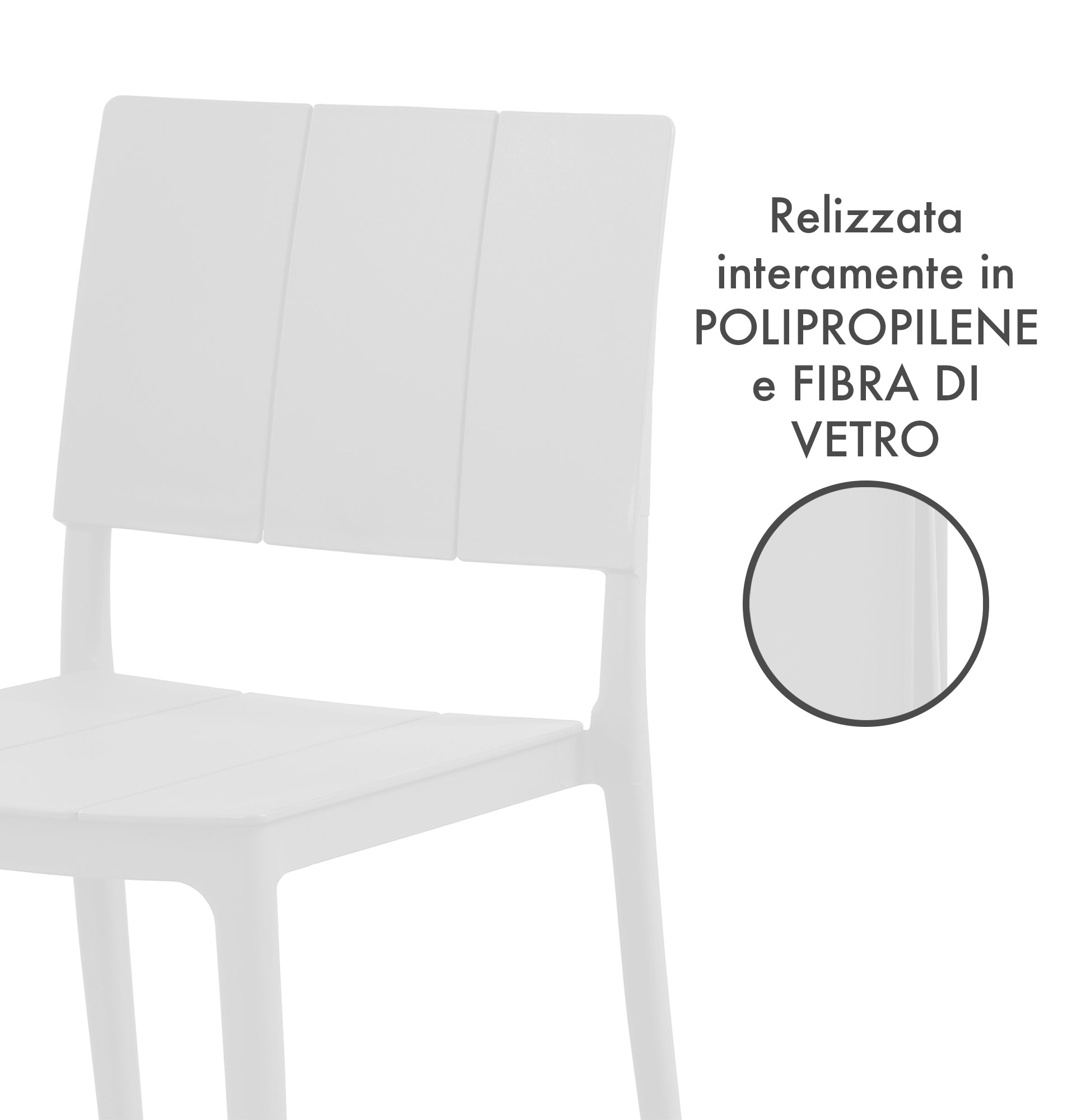 ✔️PRODOTTO CON MATERIALE DI QUALITA': Il set comprende 4 sedie realizzate in polipropilene e fibra di vetro, un materiale composito che combina leggerezza e grande resistenza. La fibra di vetro nelle sedie aumenta robustezza, durabilità e stabilità, offrendo una struttura resiliente contro sollecitazioni meccaniche come trazione e flessione portata massima consigliata 120 kg