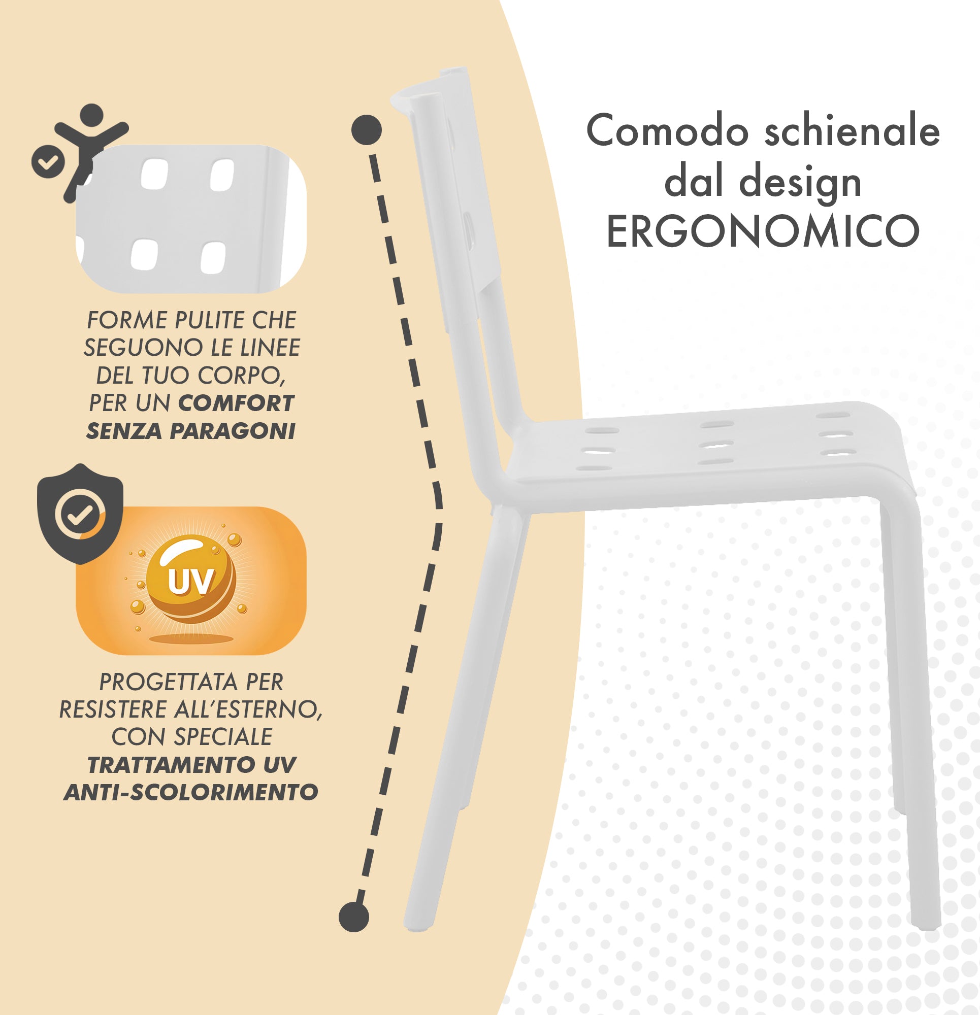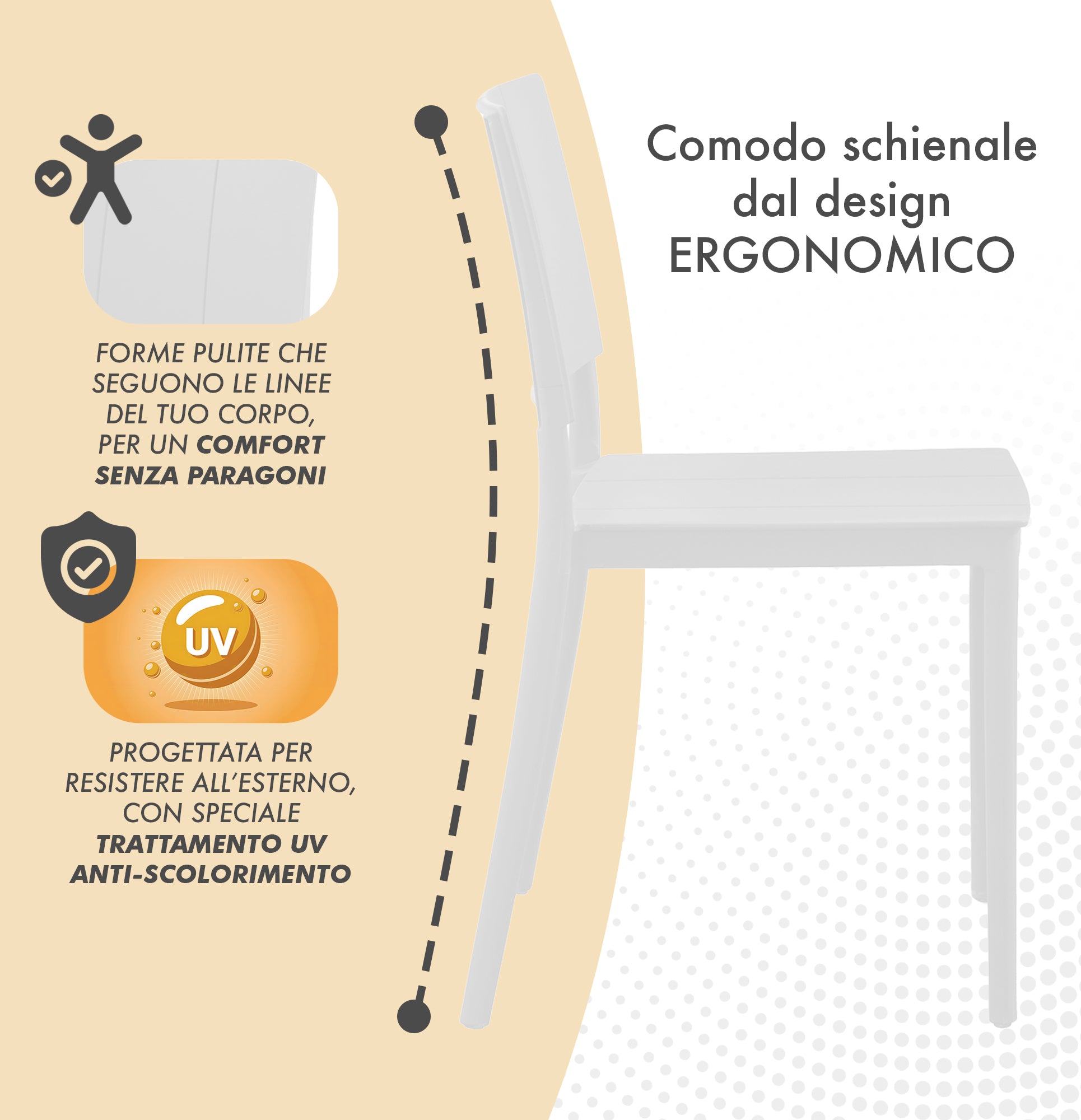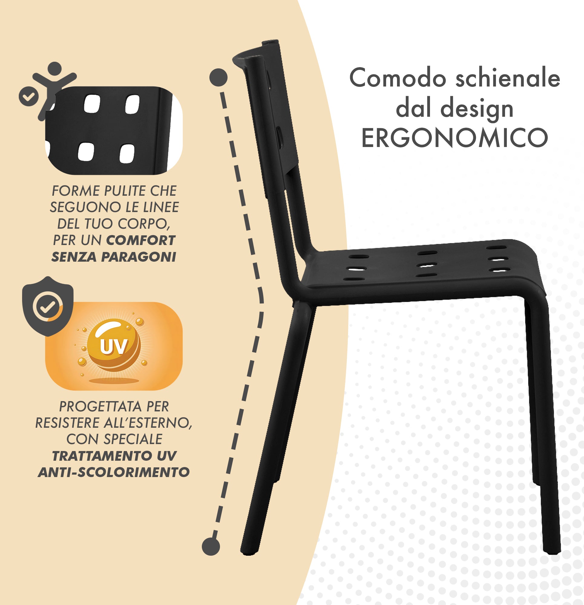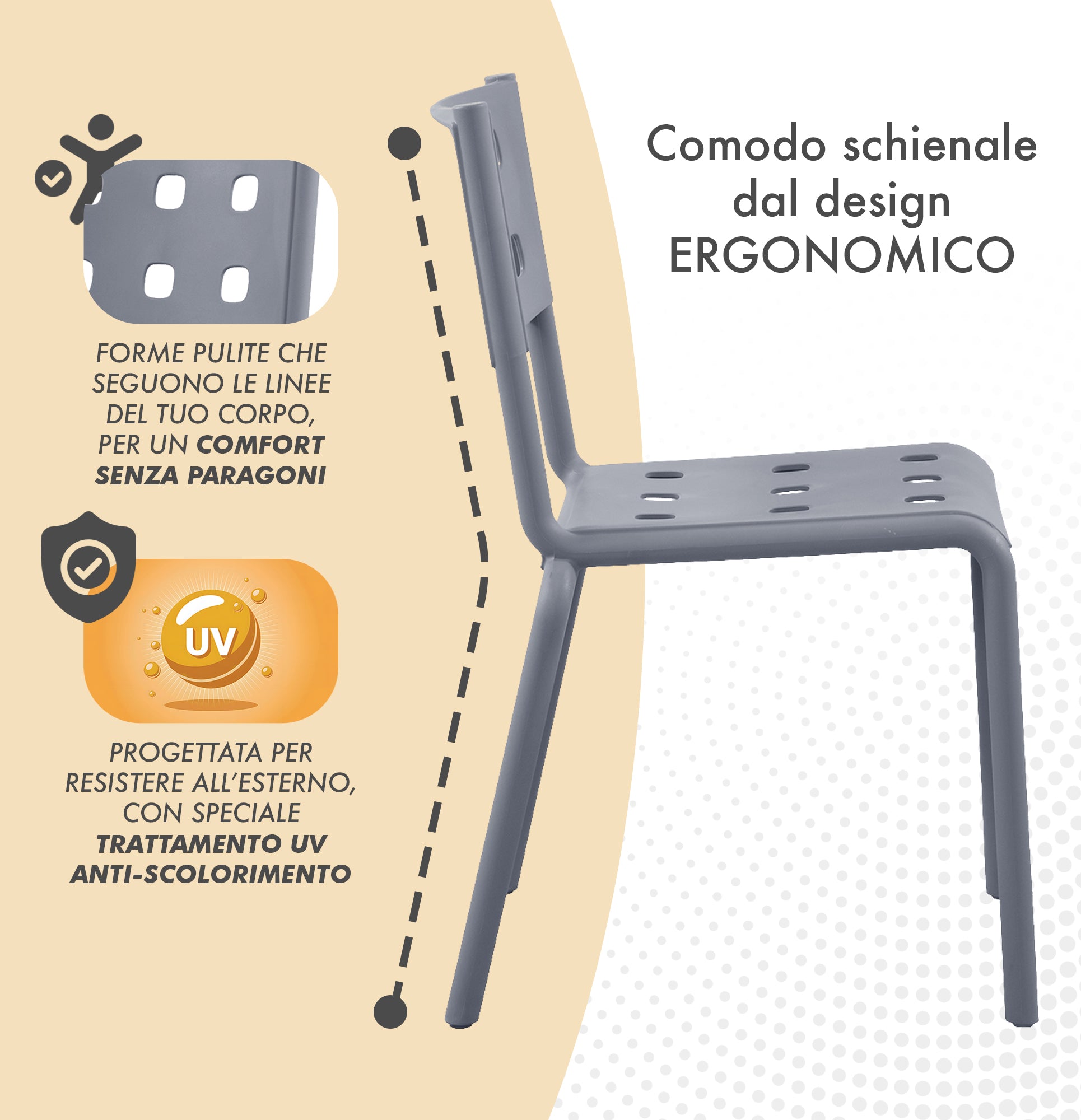 ✔️DESIGNE MODERNO: Arreda la tua casa o il tuo giardino con stile Il design è moderno e ricercato, con una palette di colori contemporanei perfetta per ogni ambiente. Ogni sedia pesa 4,5 kg, è impilabile e salvaspazio, ideale per spazi ridotti e per facilitare lo stoccaggio.