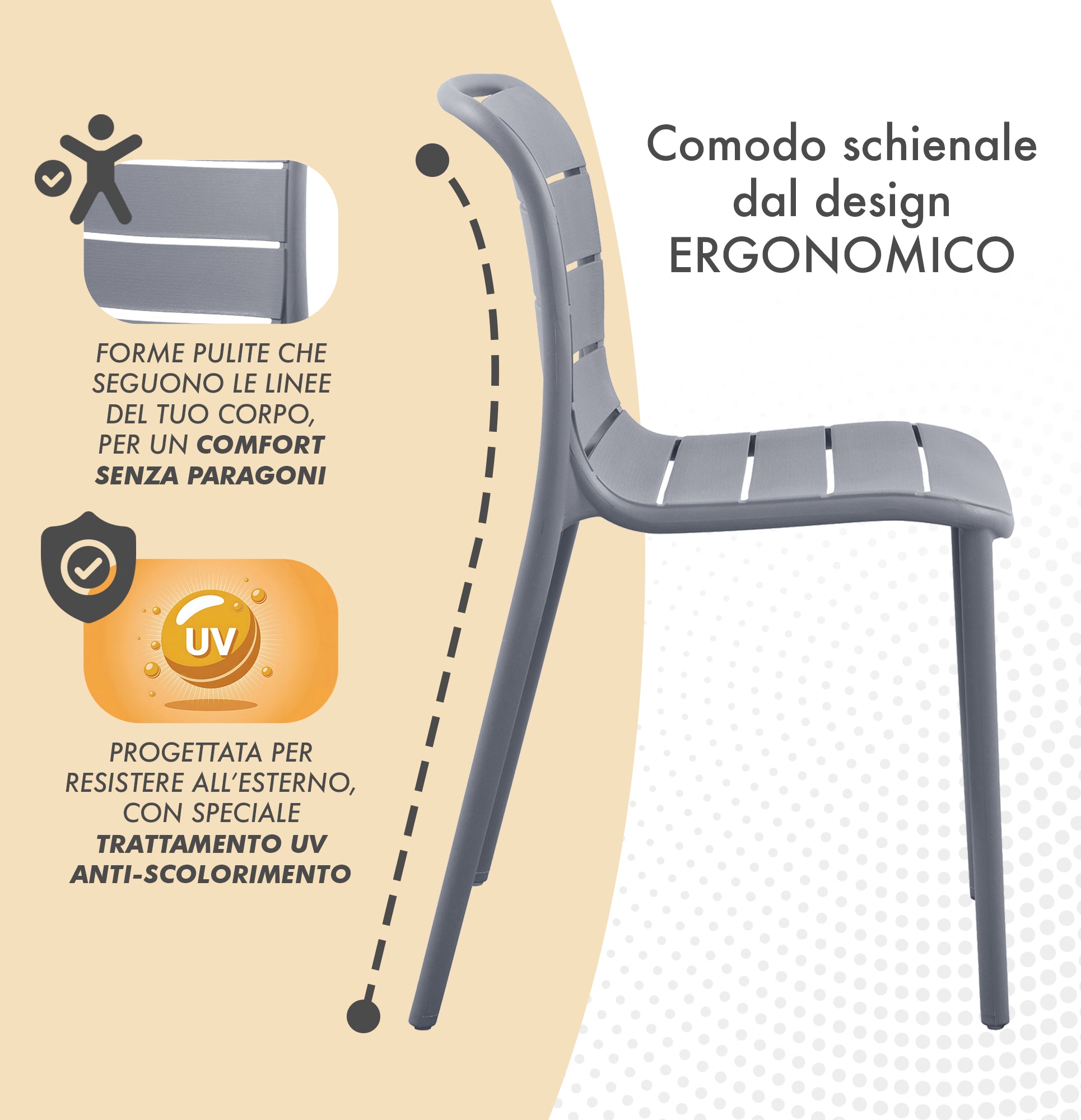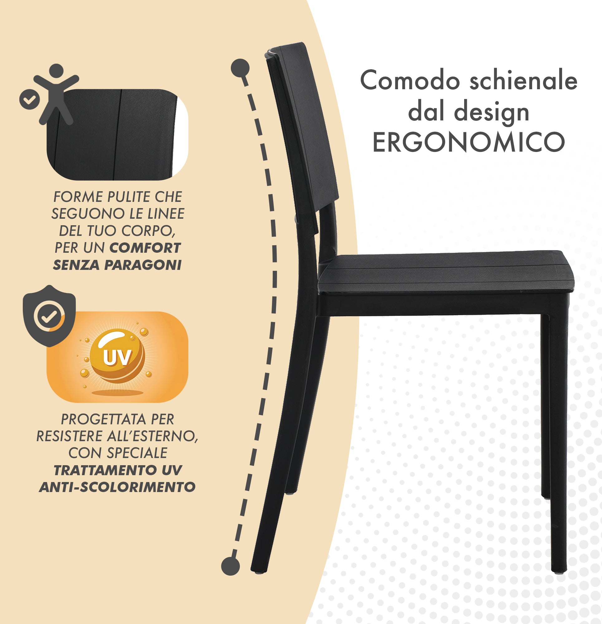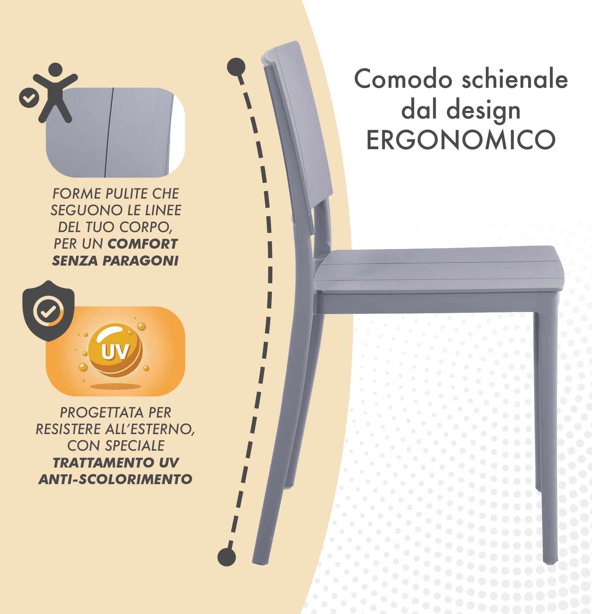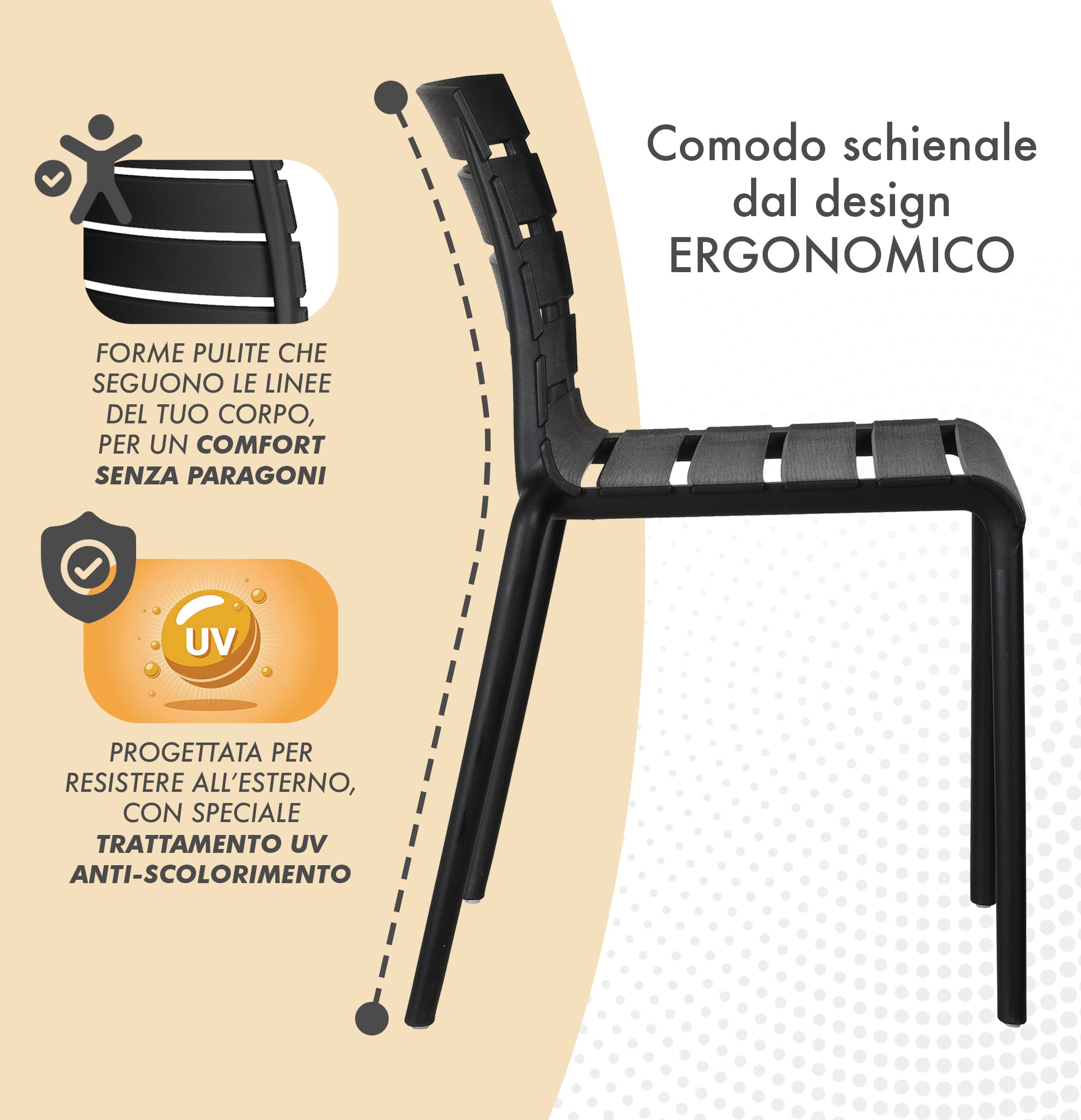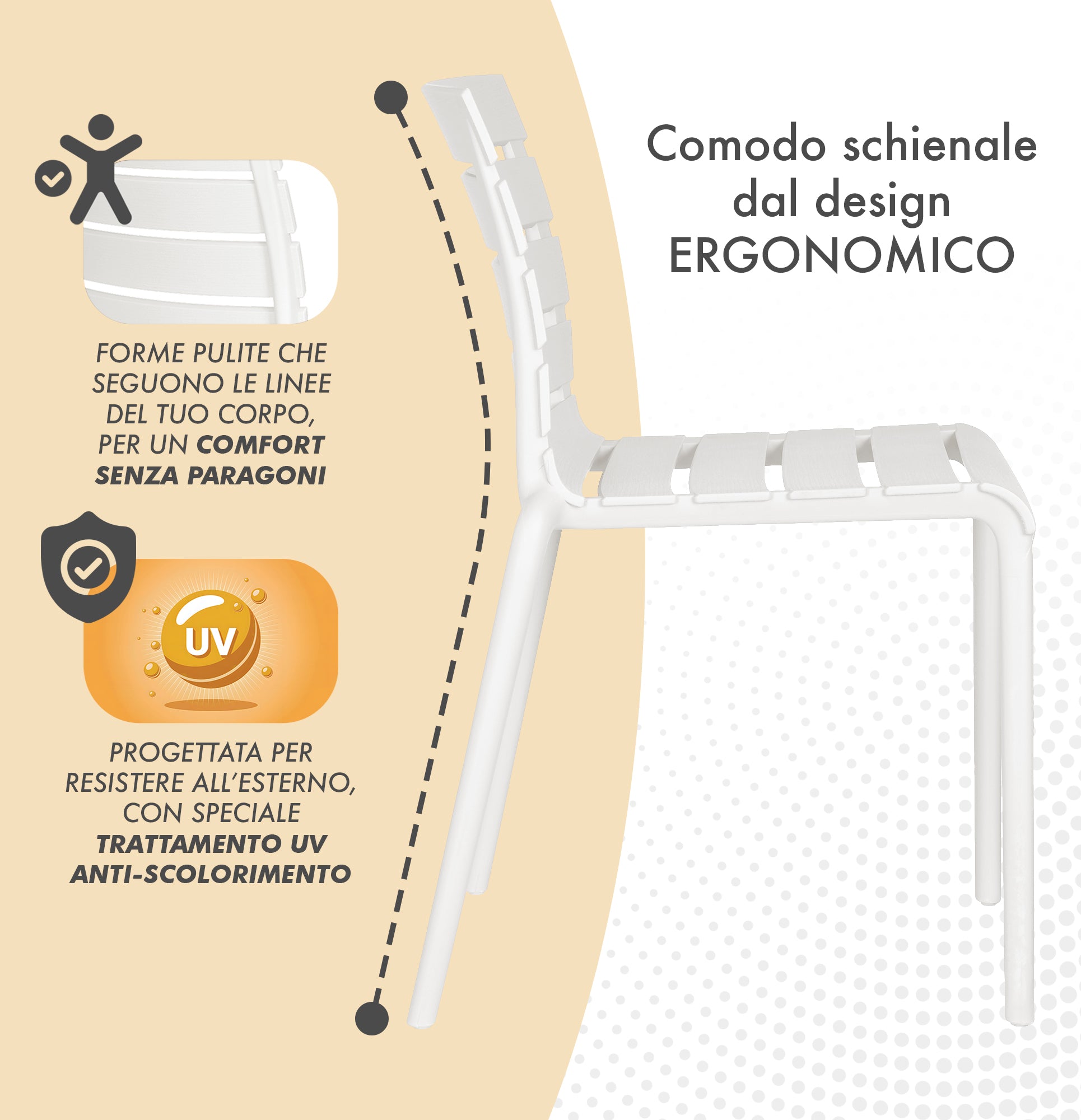 ✔️DESIGNE MODERNO: Arreda la tua casa o il tuo giardino con stile Il design è moderno e ricercato, con una palette di colori contemporanei perfetta per ogni ambiente. Ogni sedia pesa 4,5 kg, è impilabile e salvaspazio, ideale per spazi ridotti e per facilitare lo stoccaggio.
