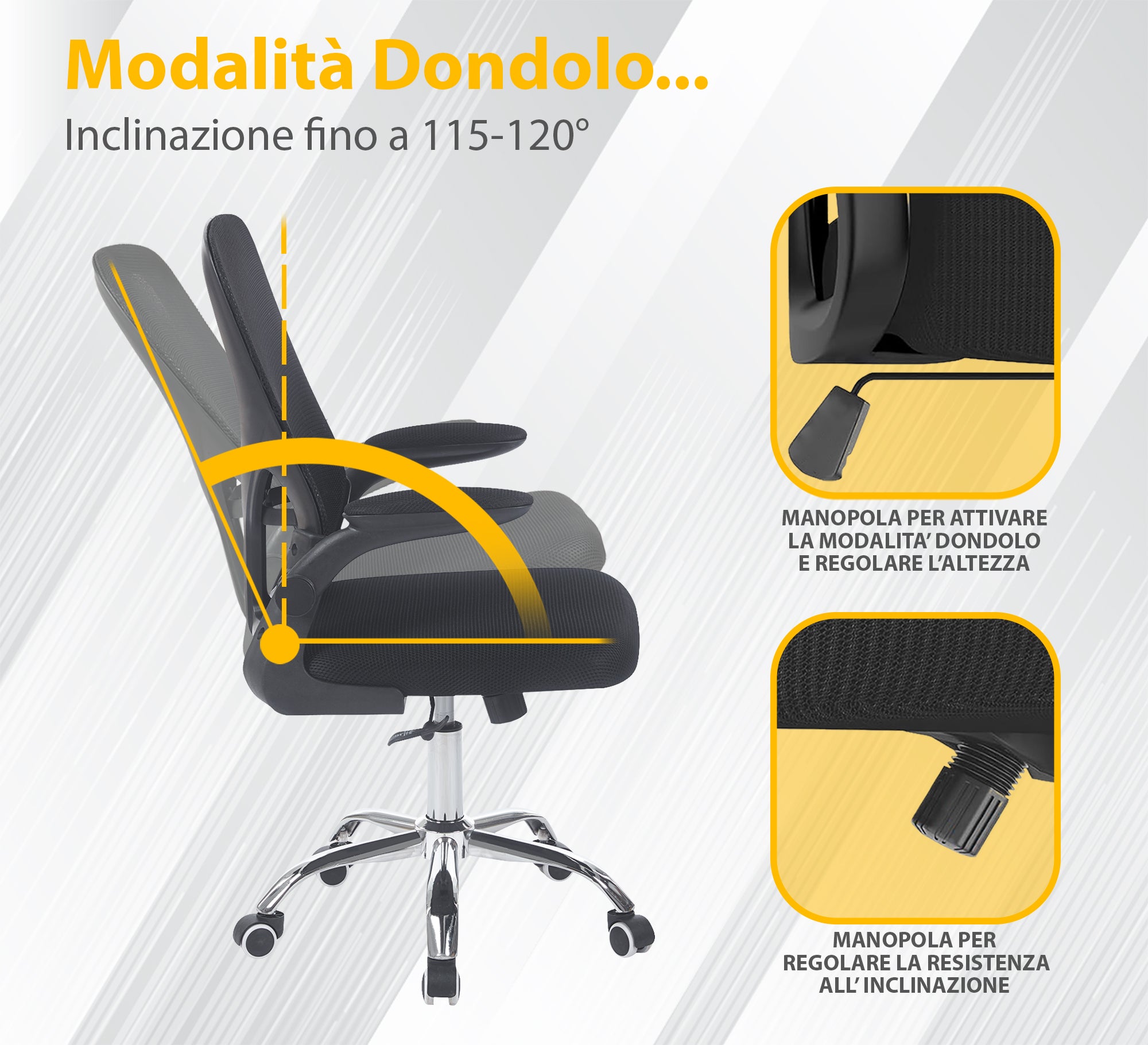 Sedia Da Ufficio Con Supporto Lombare, Poltrona Scrivania Ergonomica Braccioli Regolabili Altezza Regolabile Schienale in Rete Traspirante,Oscillante con Ruote Girevoli
