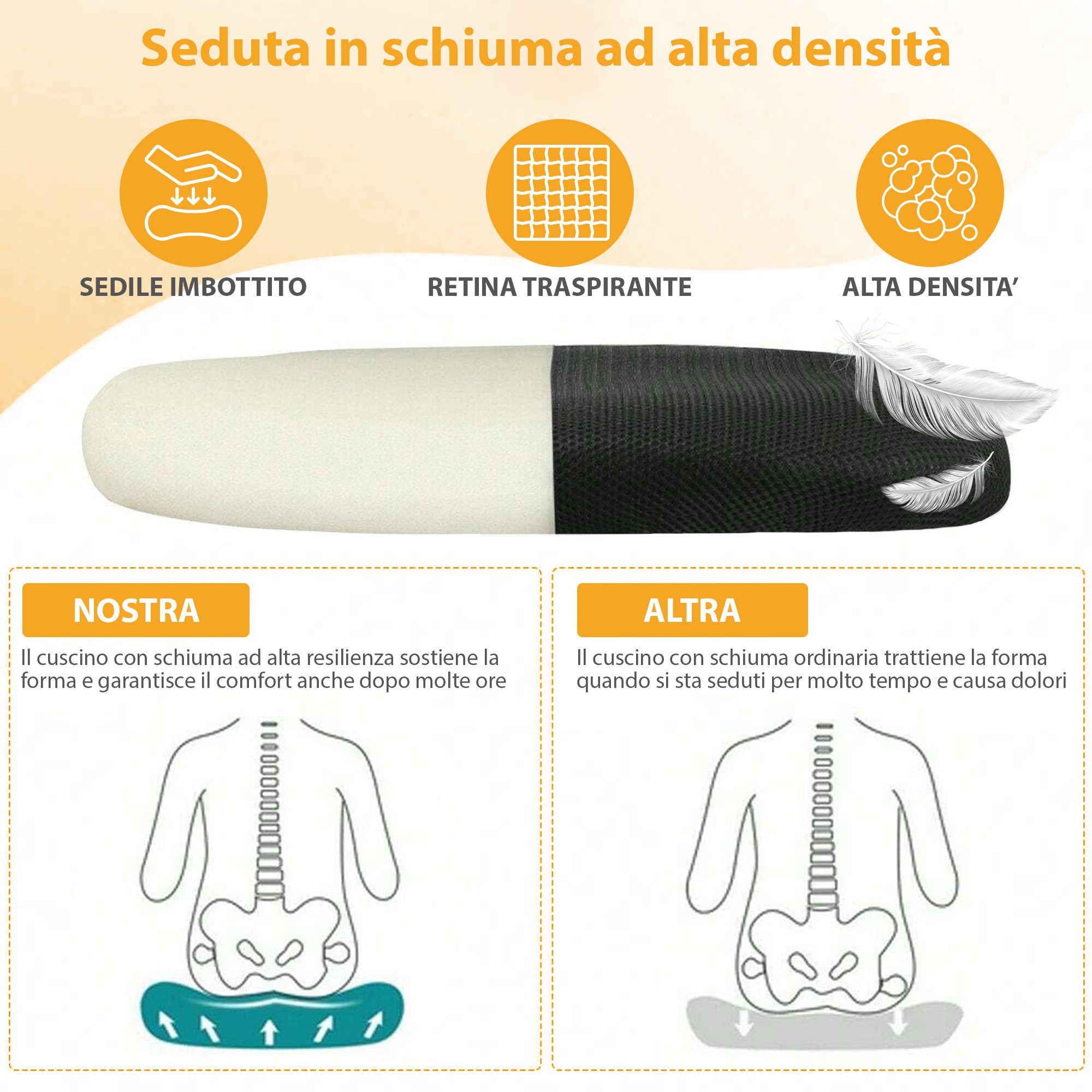 ✔️QUALITA' Interamente realizzata con materiali di alta qualità studiata per garantire il massimo della comodità anche per chi utilizza la sedia molte ore al giorno, girevole,lo schienale in rete traspirante oltre che garantire una corretta aerazione della schiena si adatta alla curvatura della colonna vertebrale umana, il che significa che la colonna vertebrale e la colonna lombare possono essere ben supportate durante il lavoro
