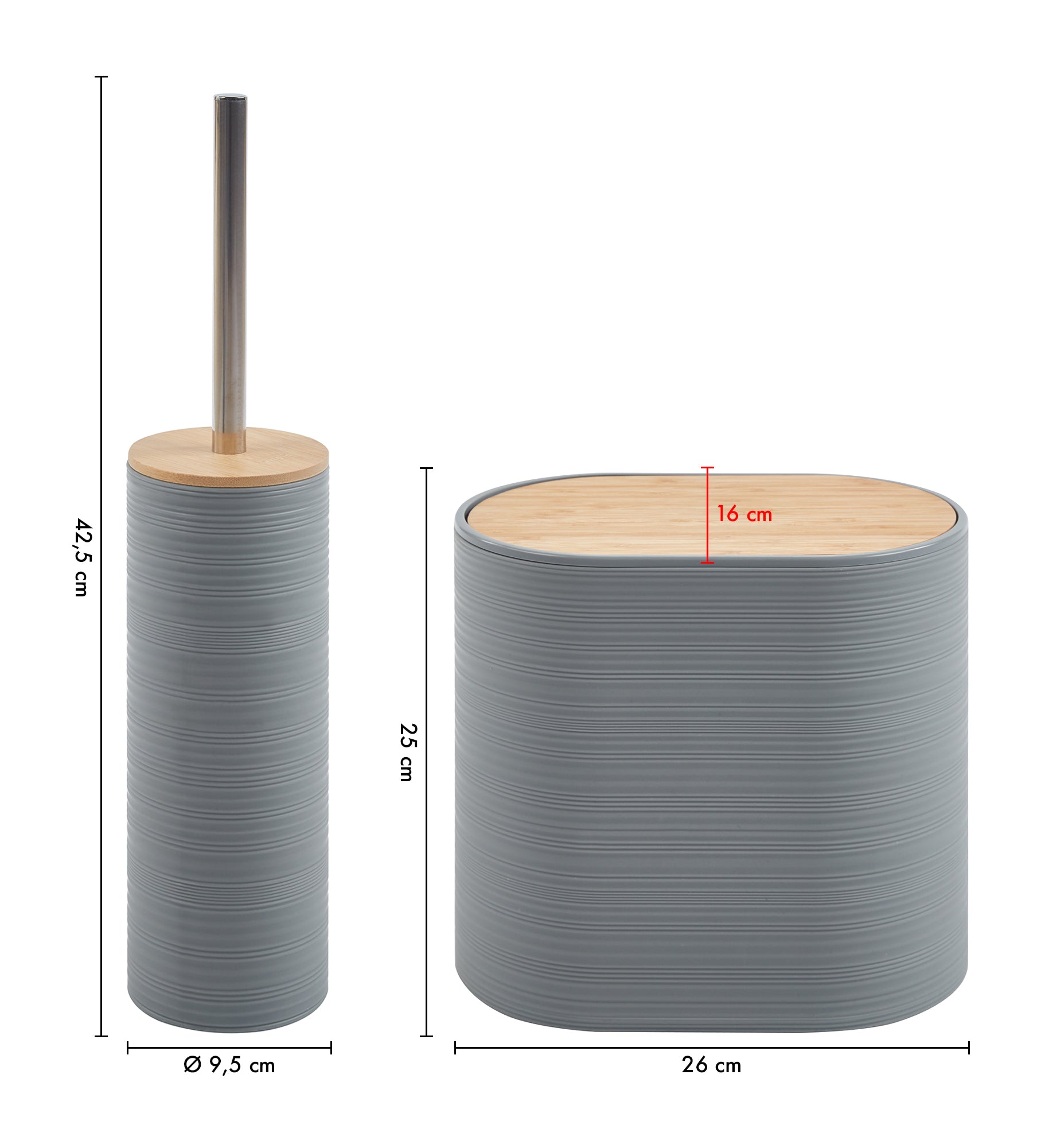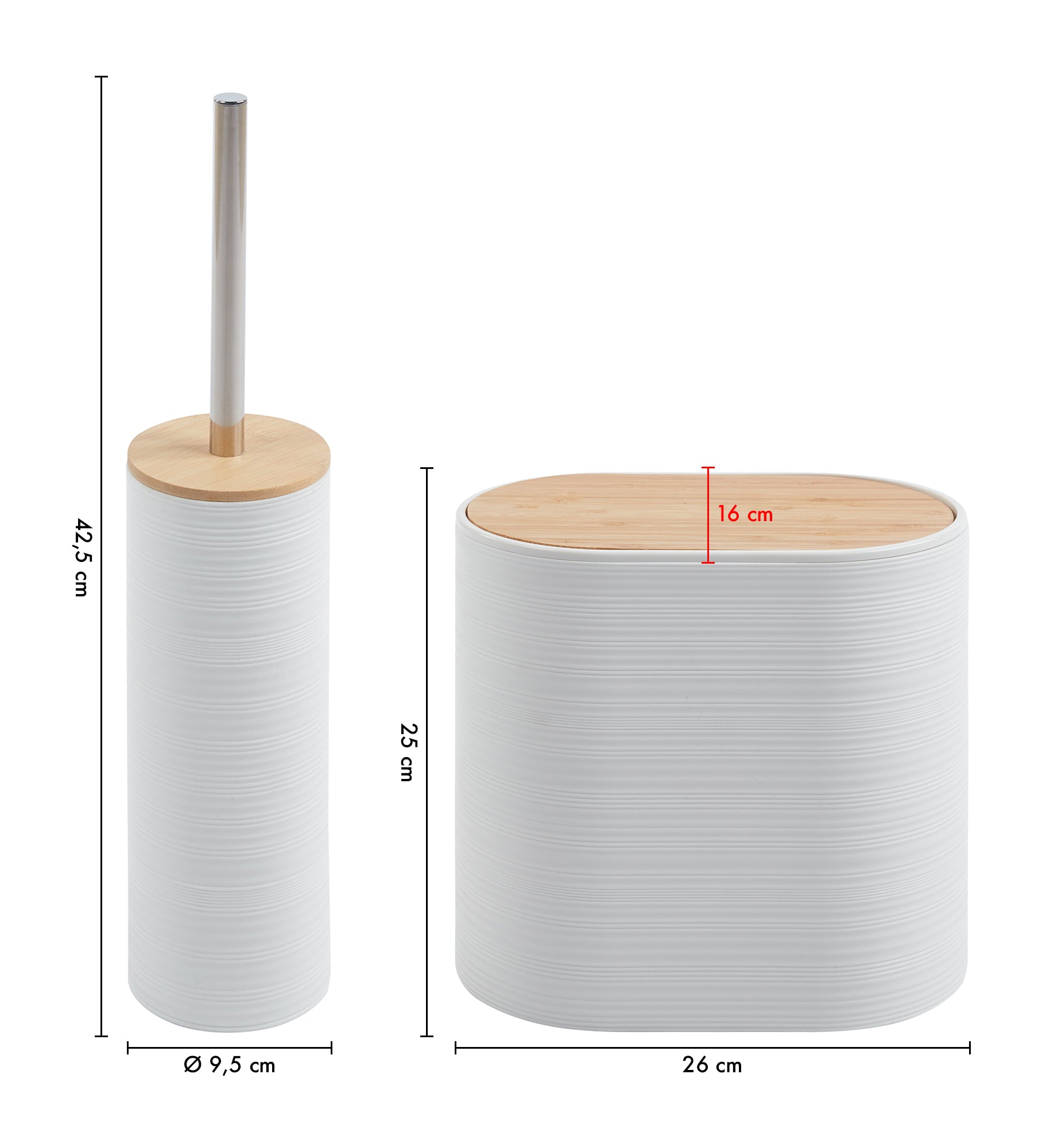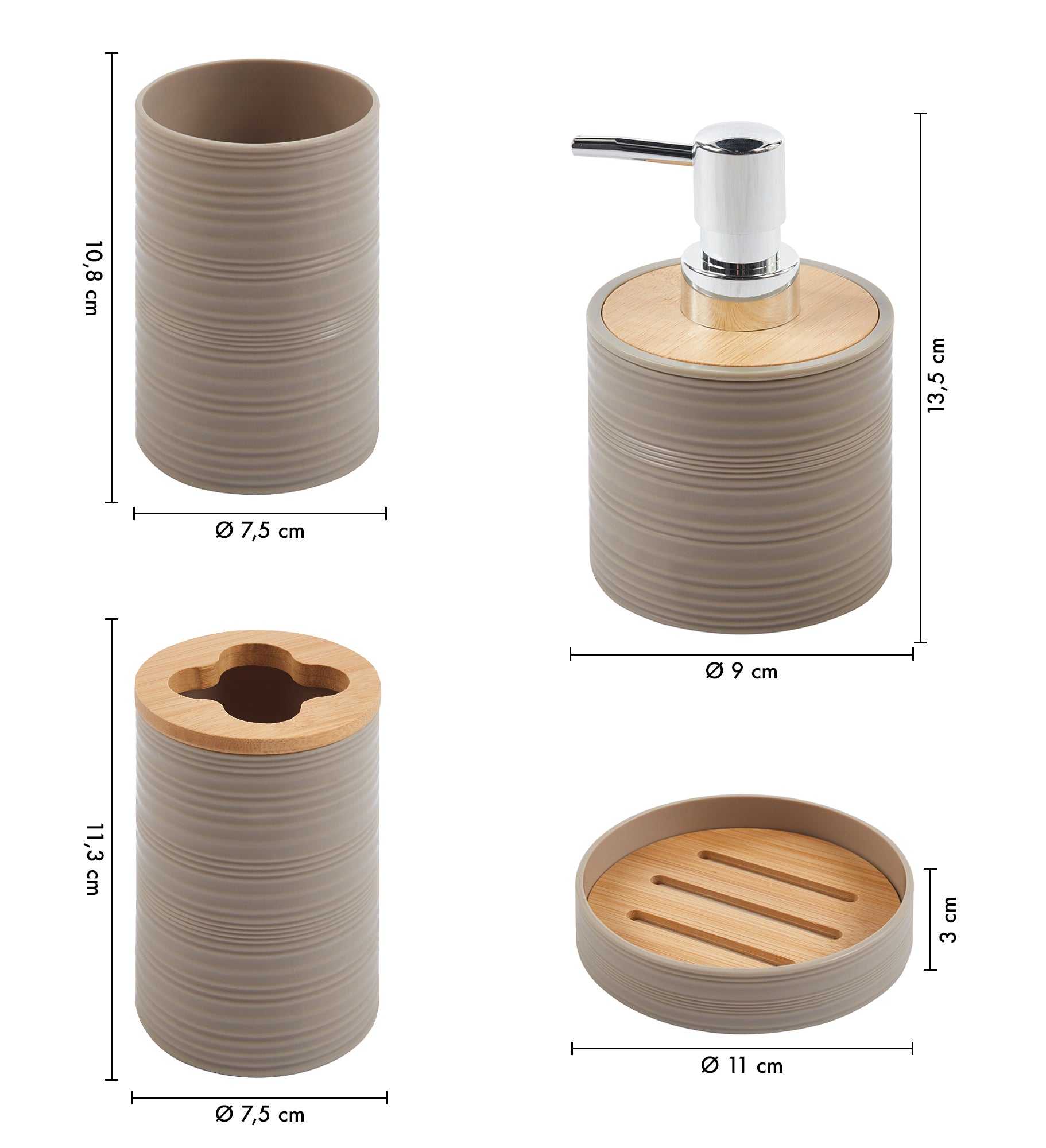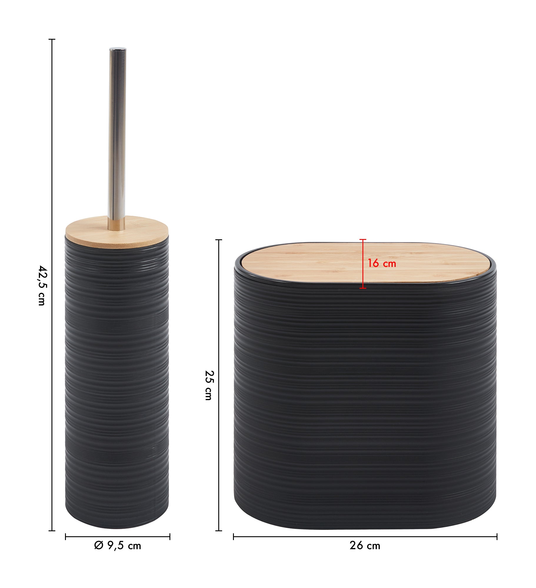 ✔️IL TEST E' COMPOSTA DA 6 PEZZI: Set 6 Pezzi accessori da bagno completo ad appoggio composto da 1 Ampio cestino,1 Dispenser Sapone, Portasaponetta, porta spazzolino e dentifricio, portascopino con scopino incluso e Bicchiere, Interamente realizzato in plastica esternamente ad onde e liscia internamente per consentirne un lavaggio ottimale, plastica dura, resistente agli urti e al continuo utilizzo o coperchi sono realizzati in legno naturale di Bambù