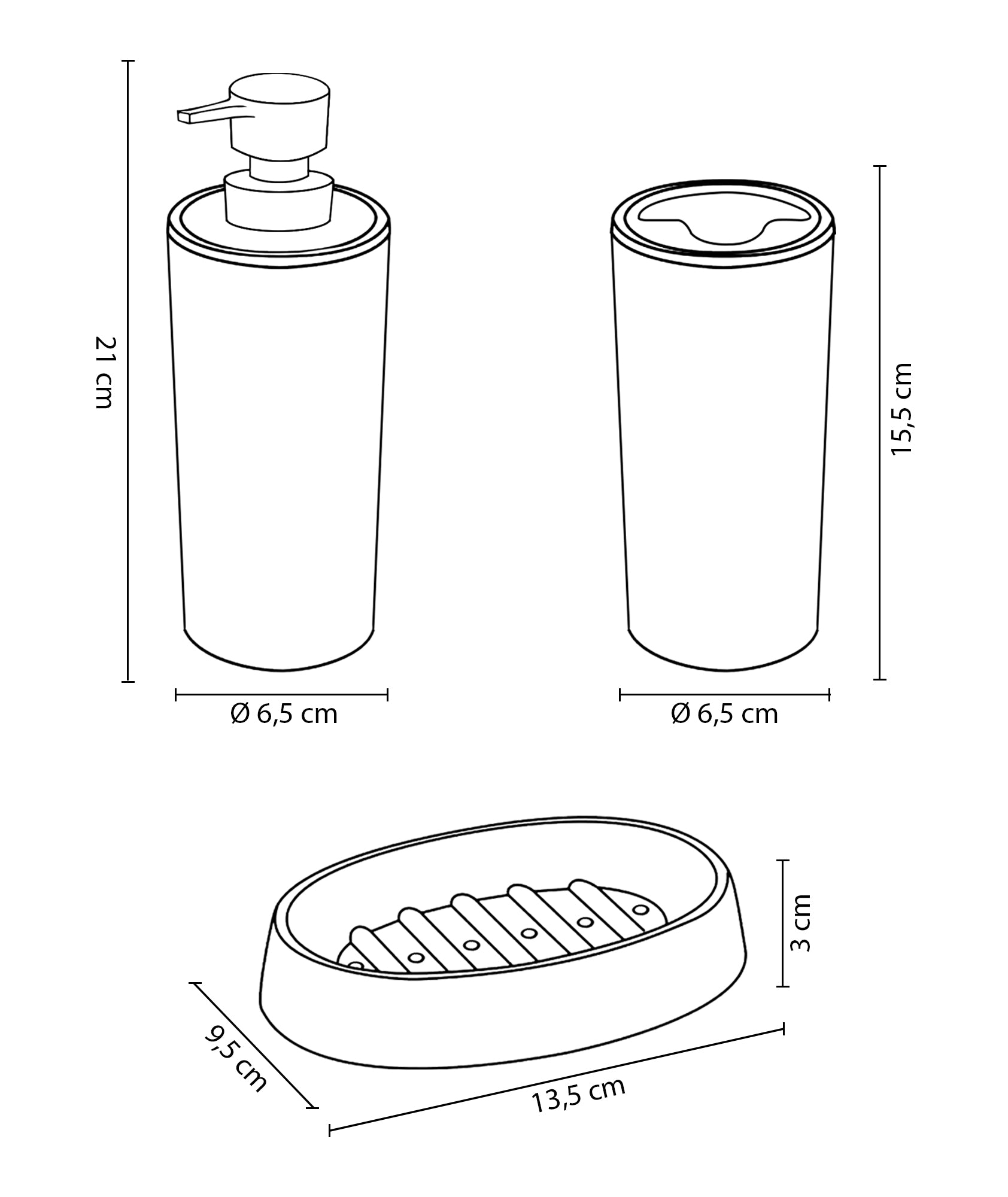 Qualità: Ogni dettaglio è curato nei minimi dettagli, set destinato ad un utilizzo costante e duraturo nel tempo le parti soggette a maggior sollecitazione come il coperchio del cestino e il dispenser del sapone sono solide e rinforzate, il porta saponetta invece è universale per tutti i tipi di sapone solido in commercio , il porta scopino con spazzola inclusa dalle setole nere in plastica per evitare di rovinare i sanitari e il porta spazzolino e dentifricio per un'organizzazione ottimale.