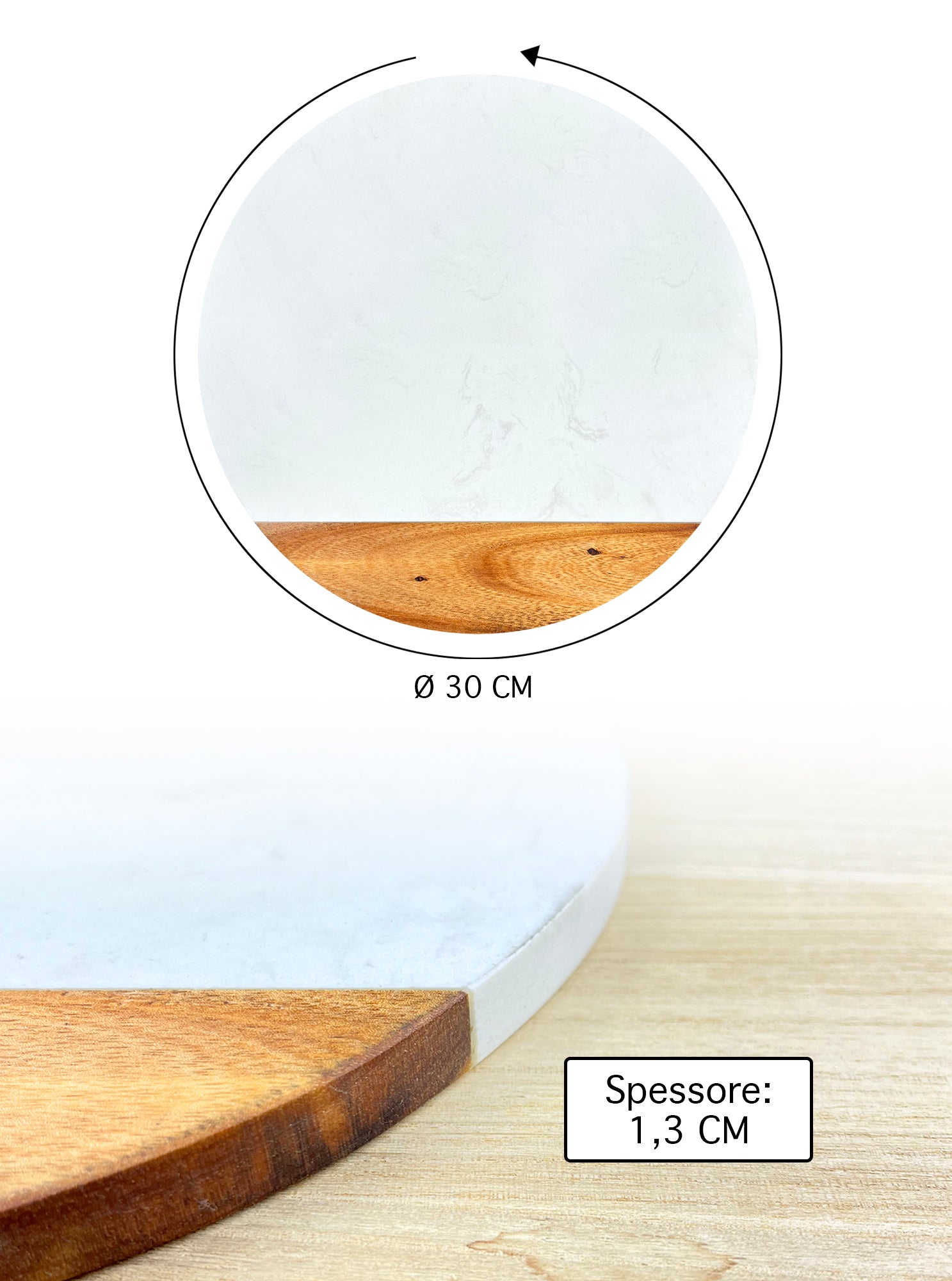 Tagliere Rotondo Ø30Cm Pietra Effetto Marmo E Legno Certificato Contatto Alimentare Vassoio Portata Salumi Formaggi Piatto Asse Cucina