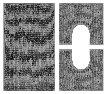 Set Tappeti Bagno Parure 3 Pezzi Con Fondo Antiscivolo Lavabili In Lavatrice Assorbenti 45 x 75 Cm