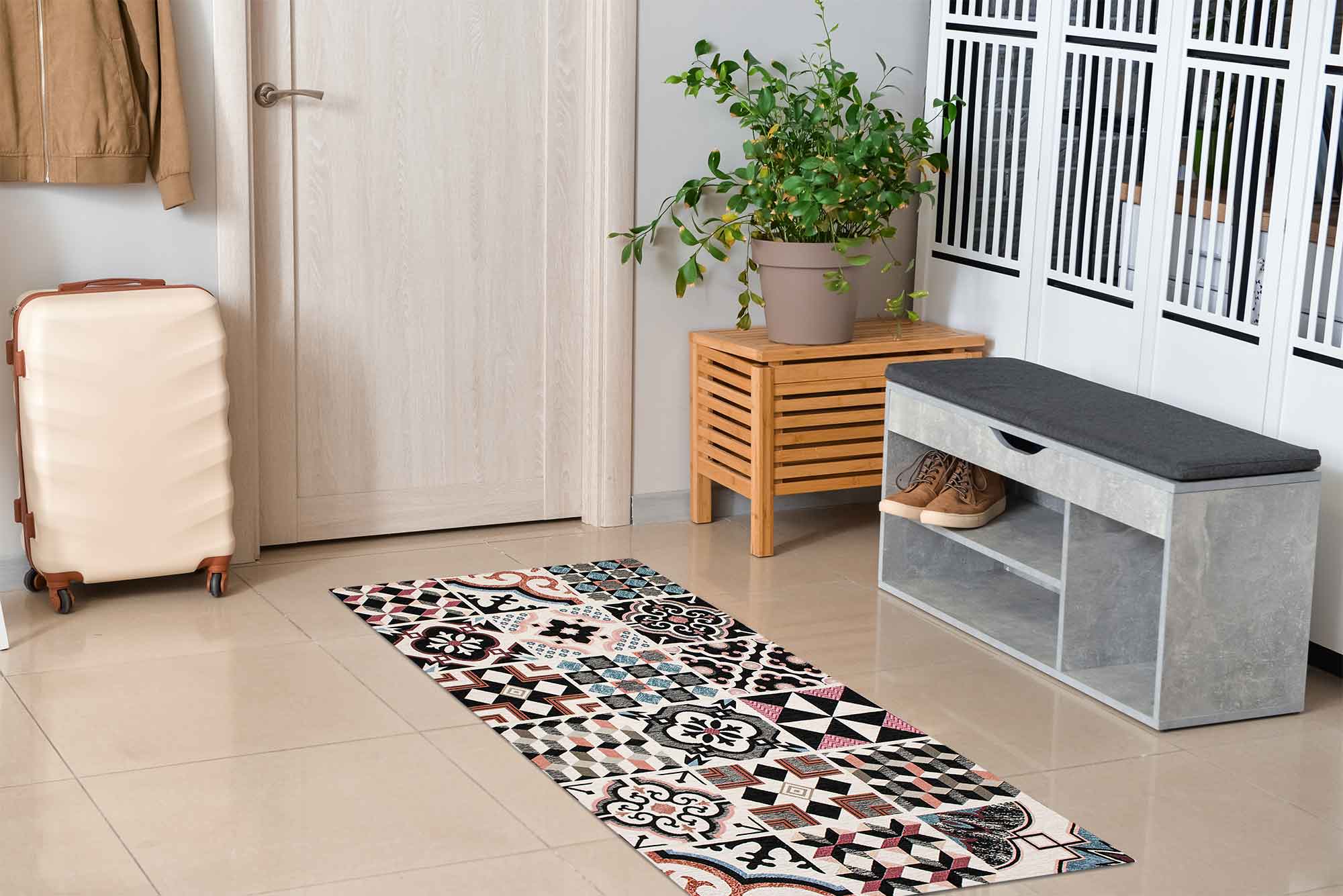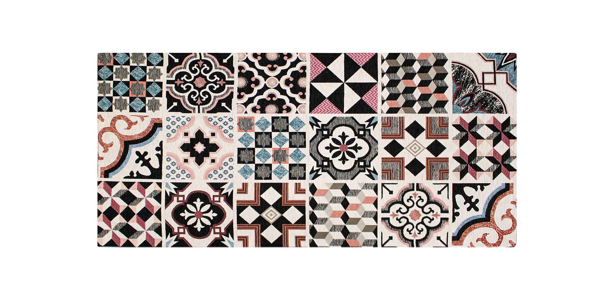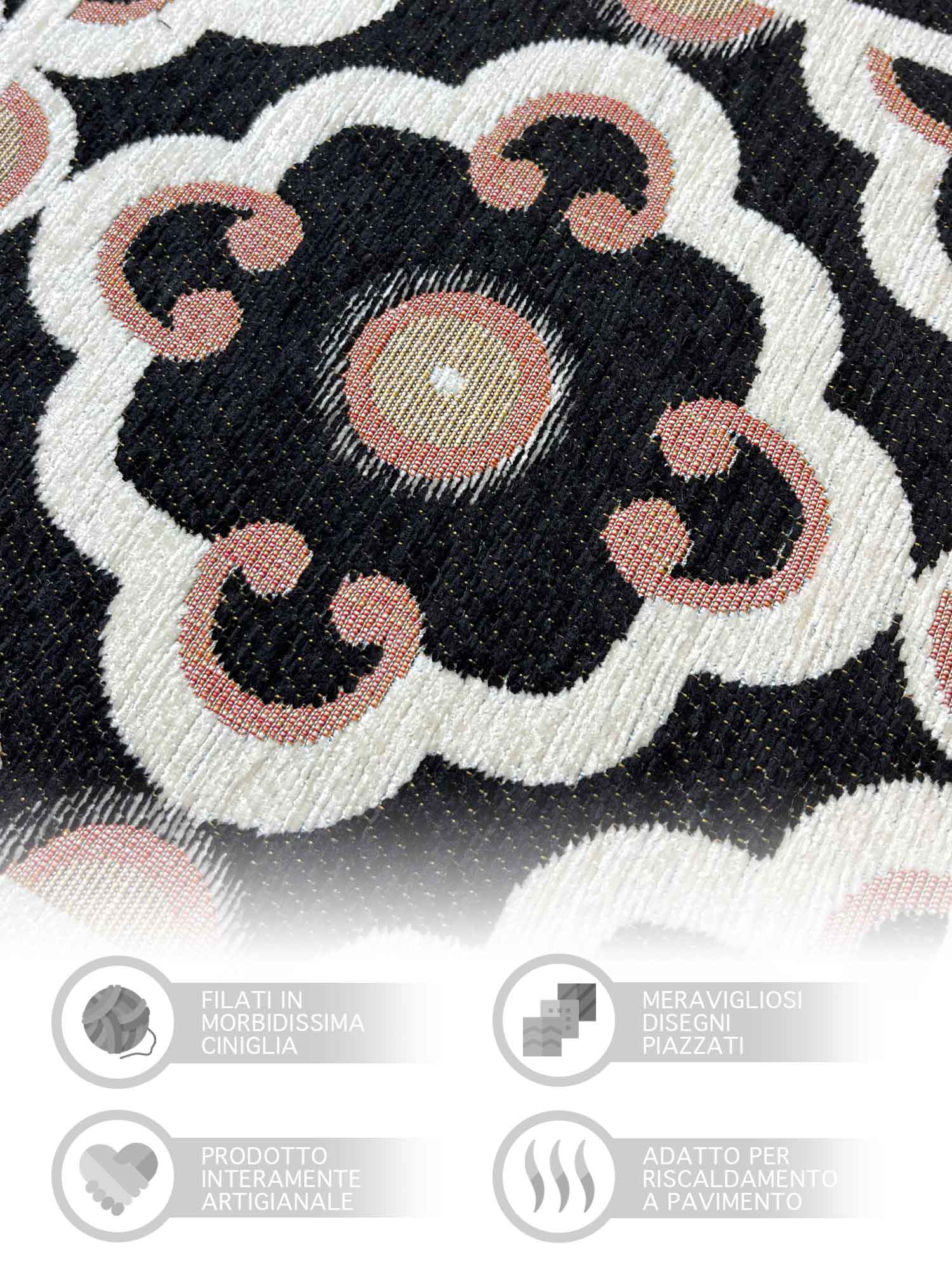 Tappeto Arredo Moderno Sala Cucina Camera in Ciniglia Made in italy il Gruppone Maioliche Nero