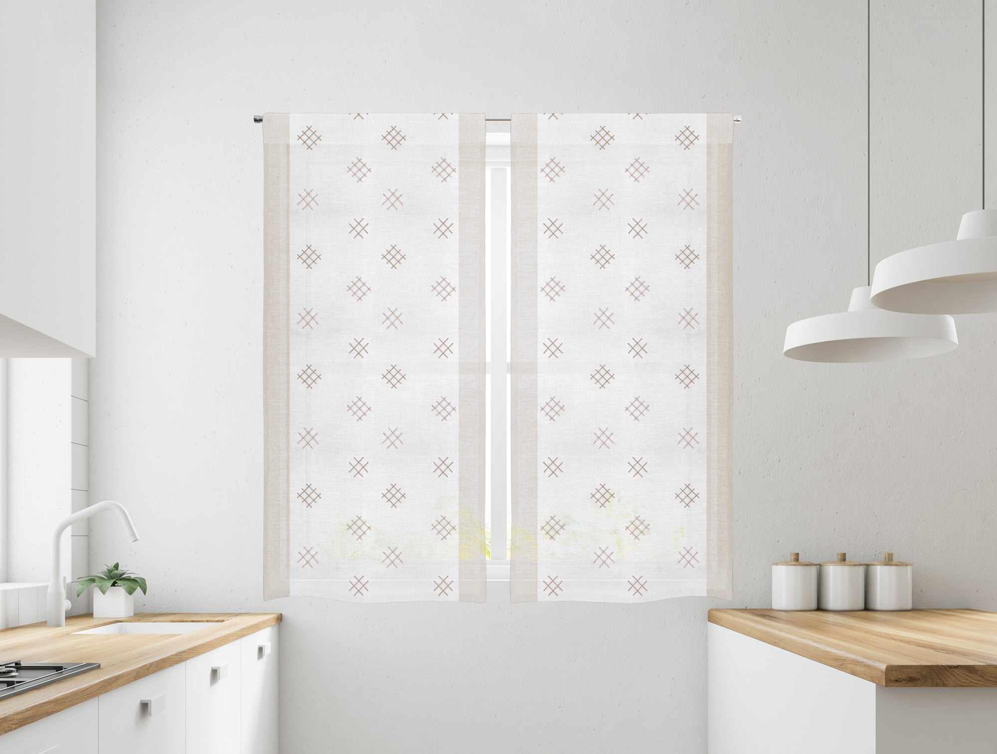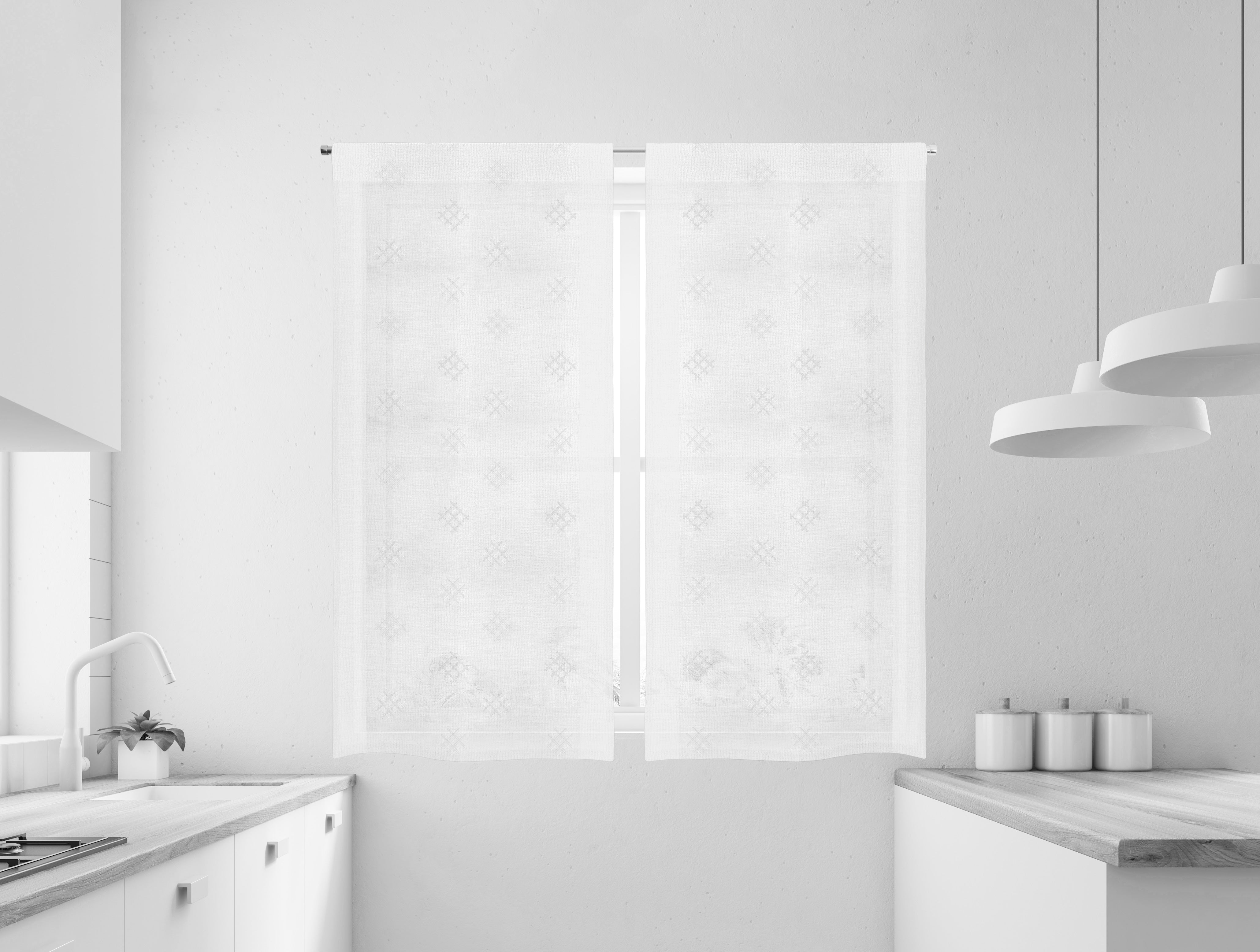 Coppia Tendine Tende A Vetro Ricamate Semitrasparenti Finestre Porta Finestra Cucina Bagno 60 x 150 Cm o 60 x 240 Cm Mod Cleme