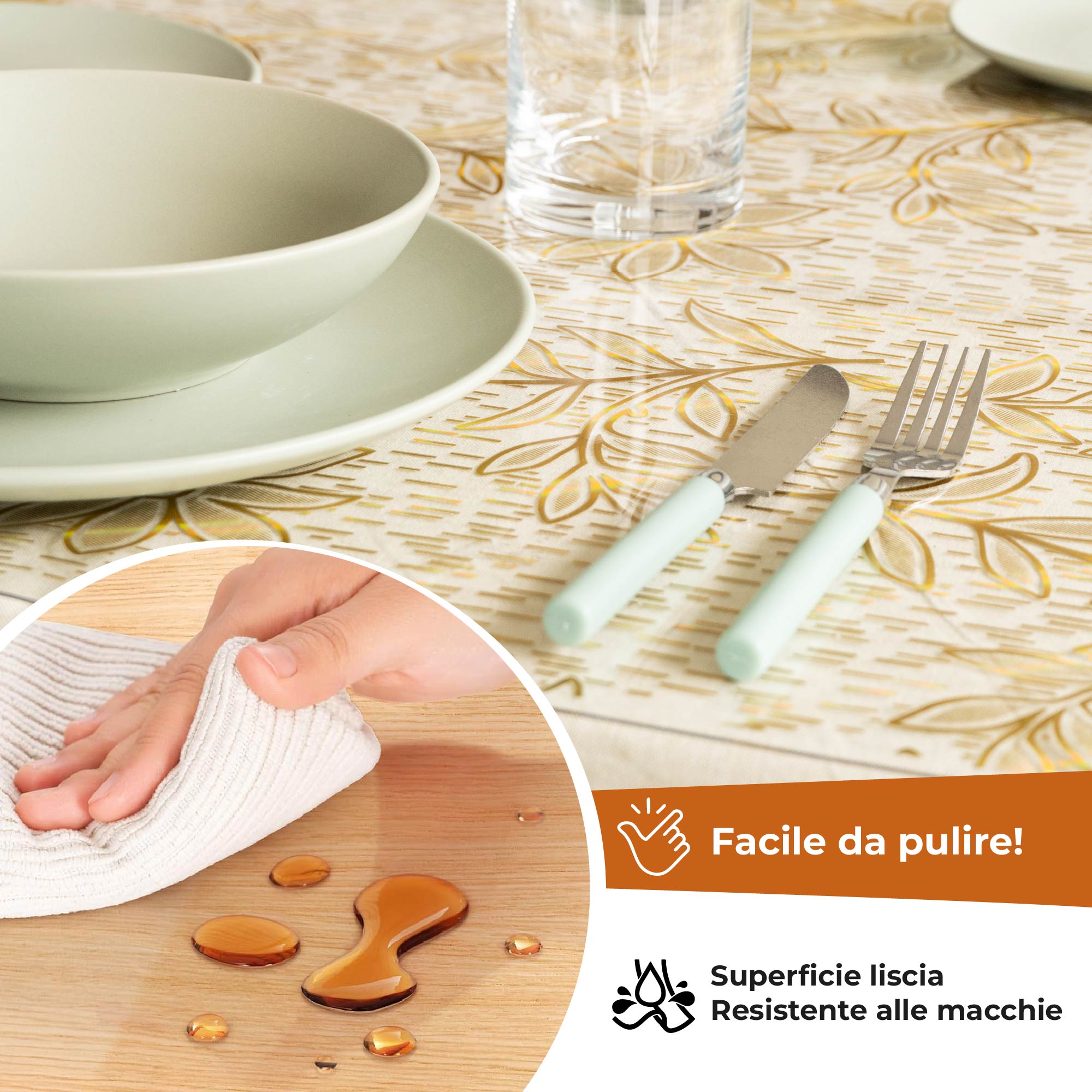 ✔️ Lo spessore è di 1,2 mm, con peso di 1,95 kg/m². La larghezza è di 100 cm e la lunghezza è disponibile a scelta, utilizzando delle forbici avetela possibilità di tagliarlo per adattarsi anche in larghezza al tavolo, qualora non vogliate tagliarlo in larghezza potete sempicemente una volta posizionato sul tavolo modellare i bordi e farli scendere come fosse una comune tovaglia, La pulizia è facilitata: basta un panno umido dopo l’uso e, saltuariamente, un detergente classico.