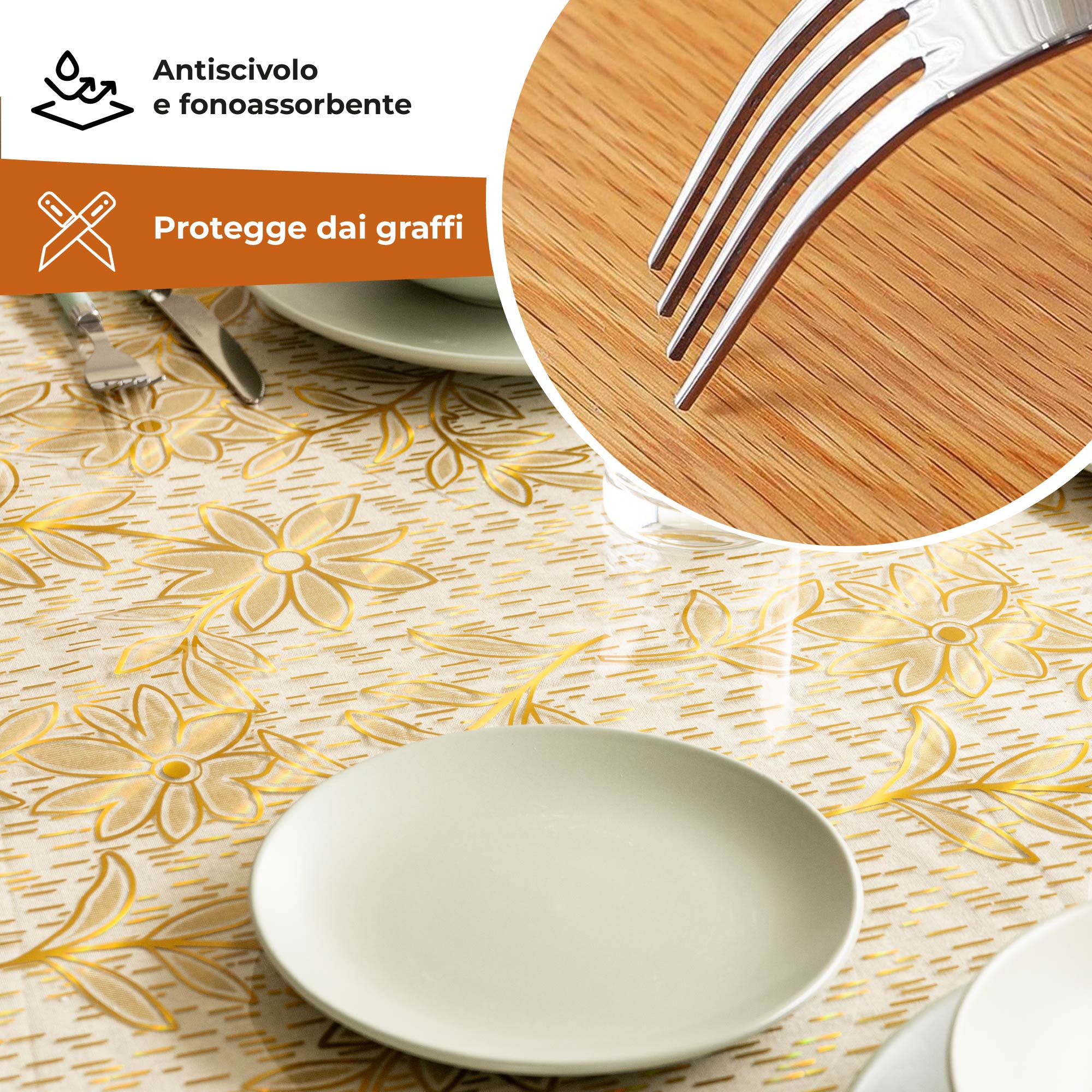 ✔️Il mollettone in PVC ecologico è Semi-trasparente Con stampato un bellissimo motivo a fiori, impermeabile, antiscivolo,inodore e antigraffio, progettato per essere posizionato sul tavolo come una tovaglia protettiva. Offre una pellicola resistente a urti e graffi, protegge il piano mantenendo visibile la texture e il colore del tavolo grazie alla sua trasparenza.