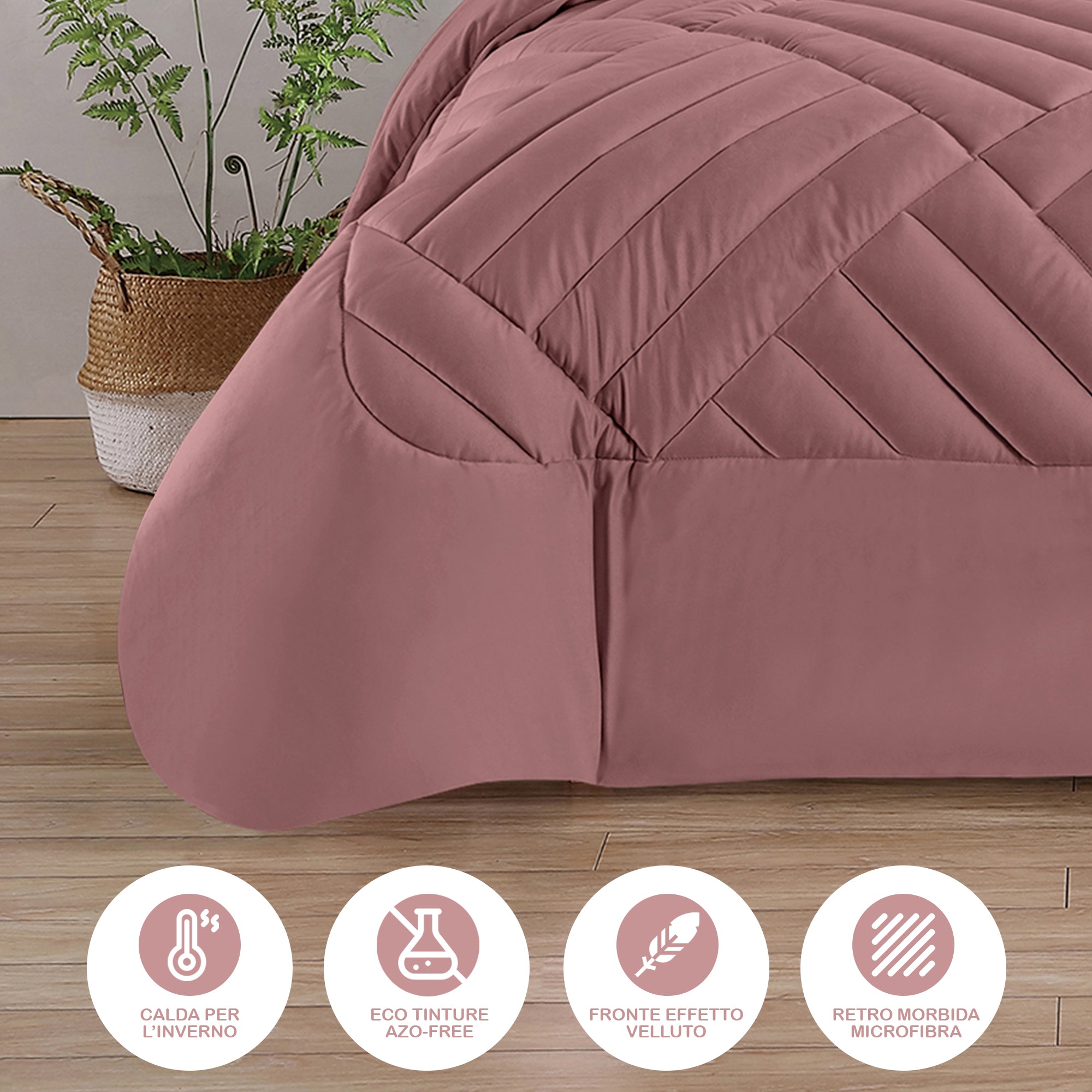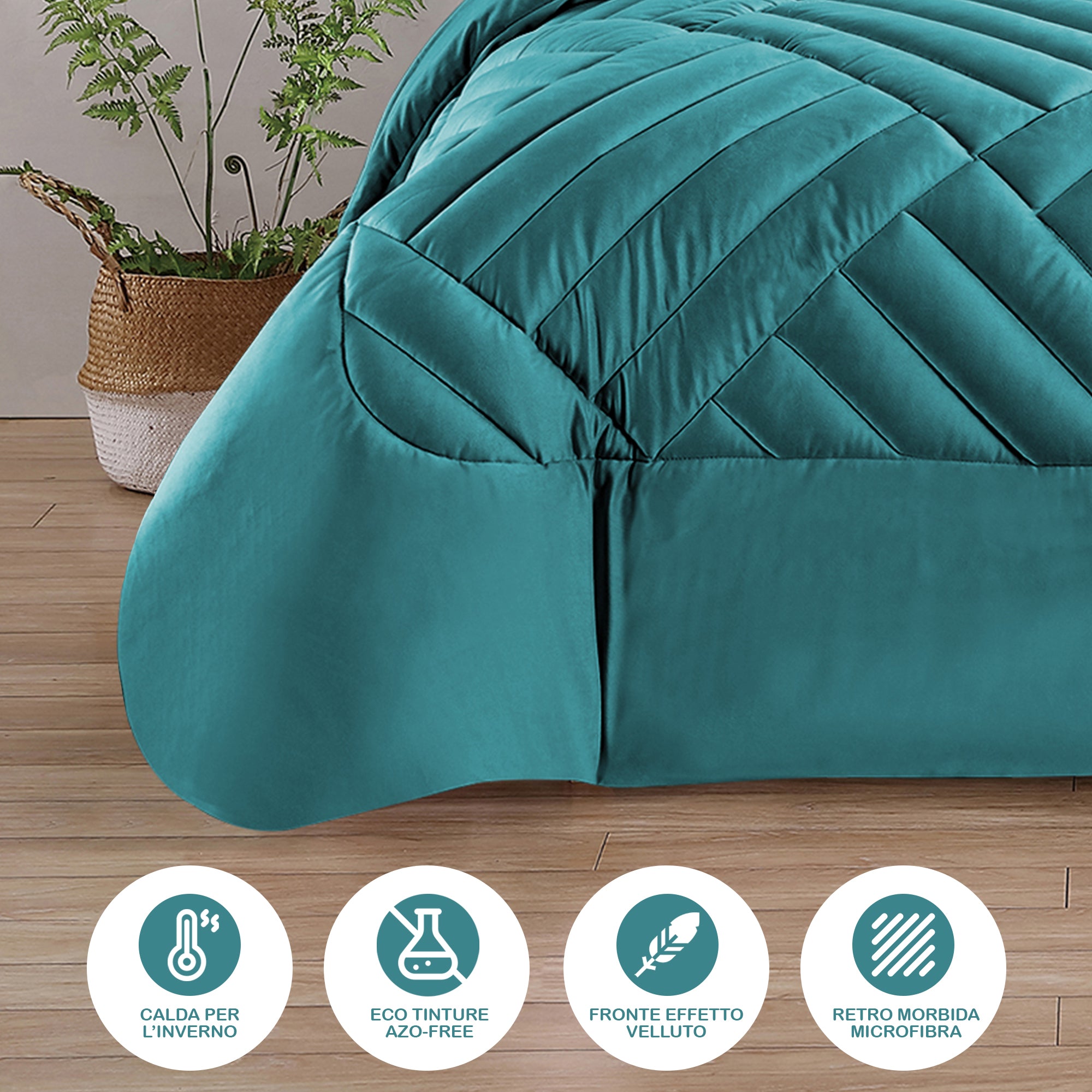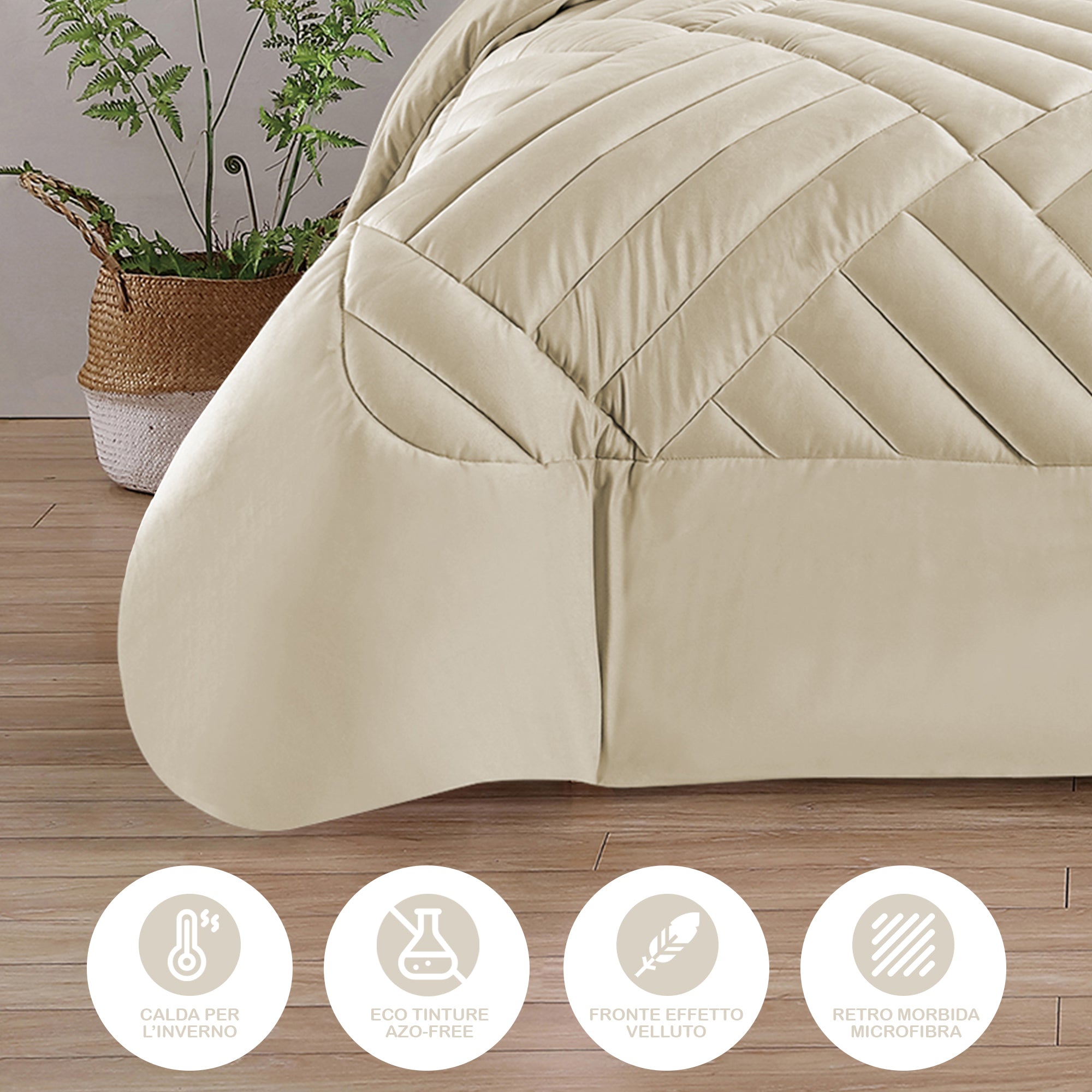 Trapunta Elegante Matrimoniale In Velluto Piumone Invernale Effetto Piuma 580 Gr/Mq Piumino Caldo Due Piazze Duck Friendly