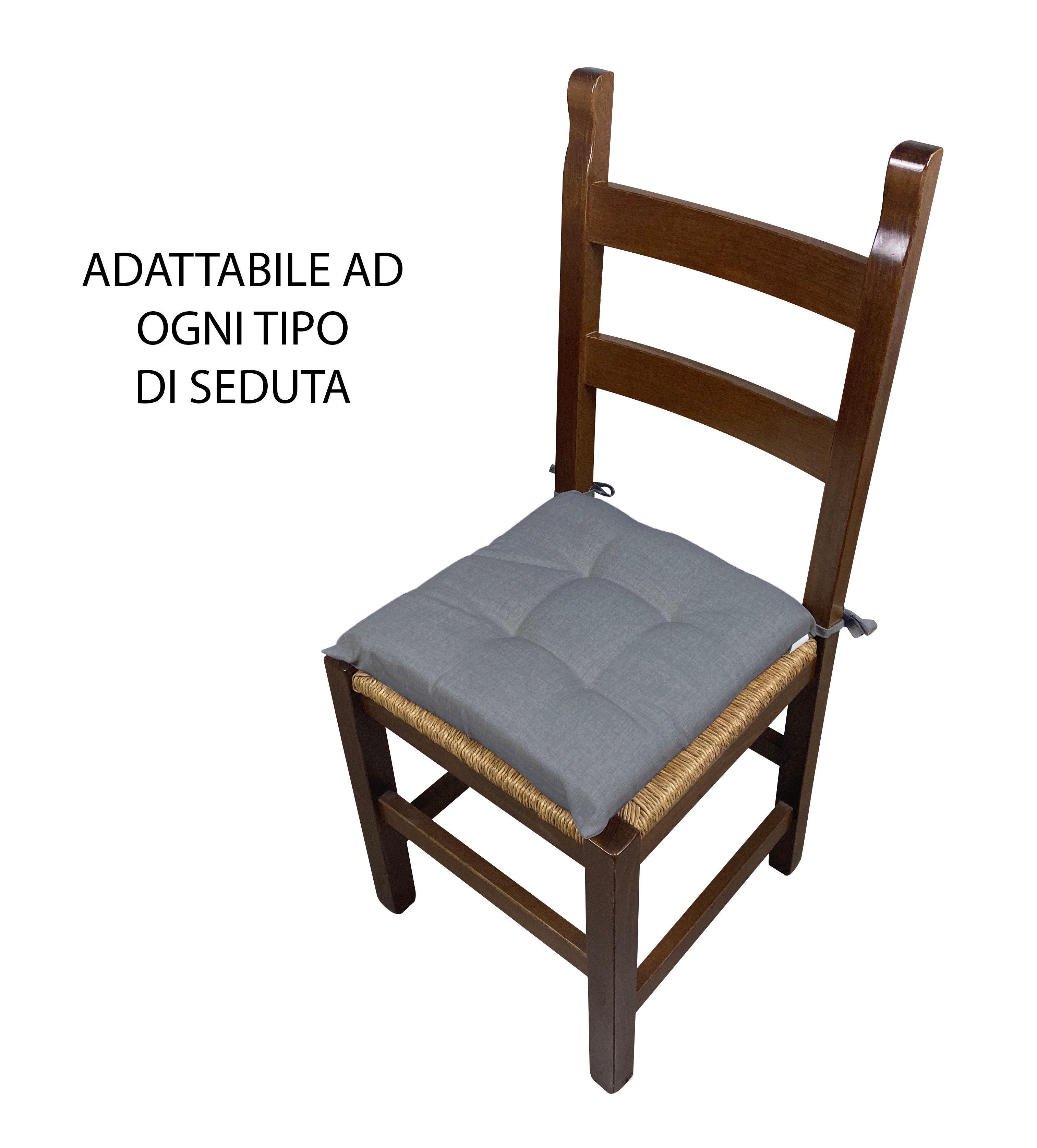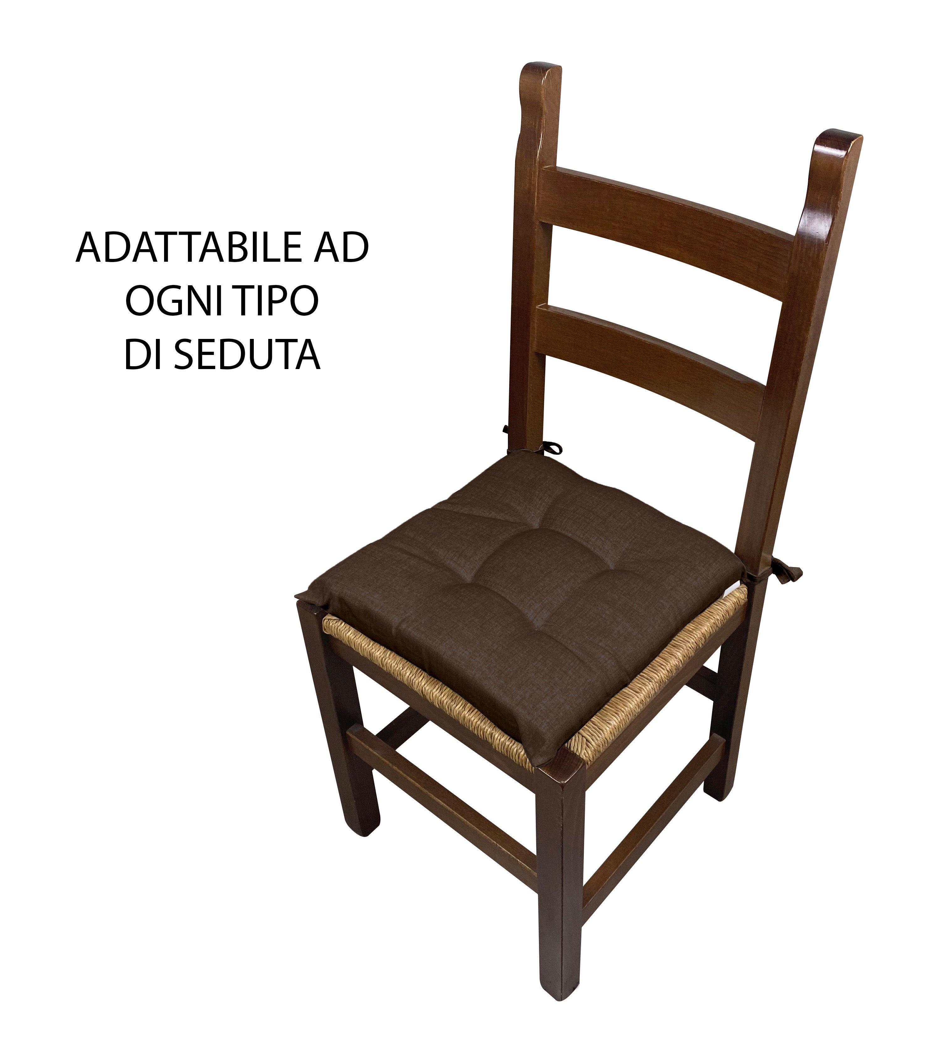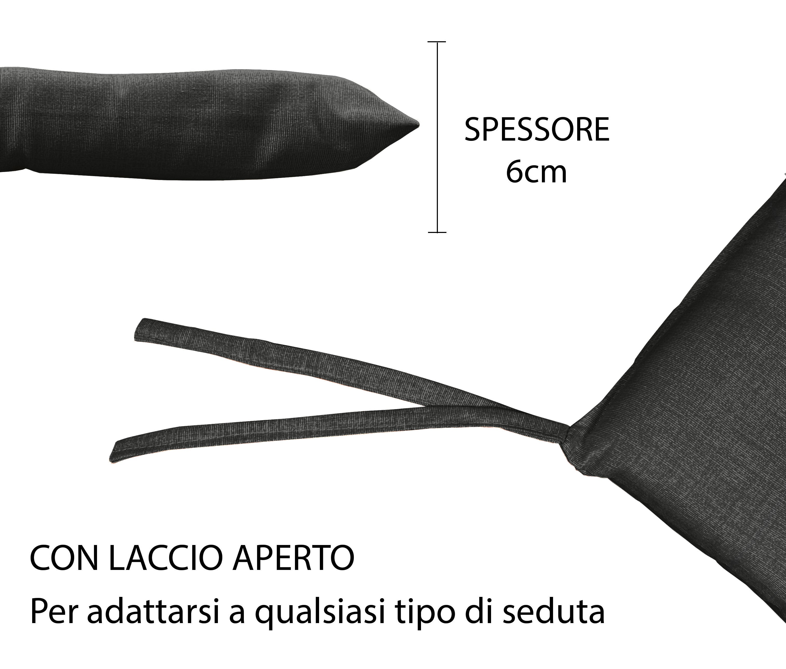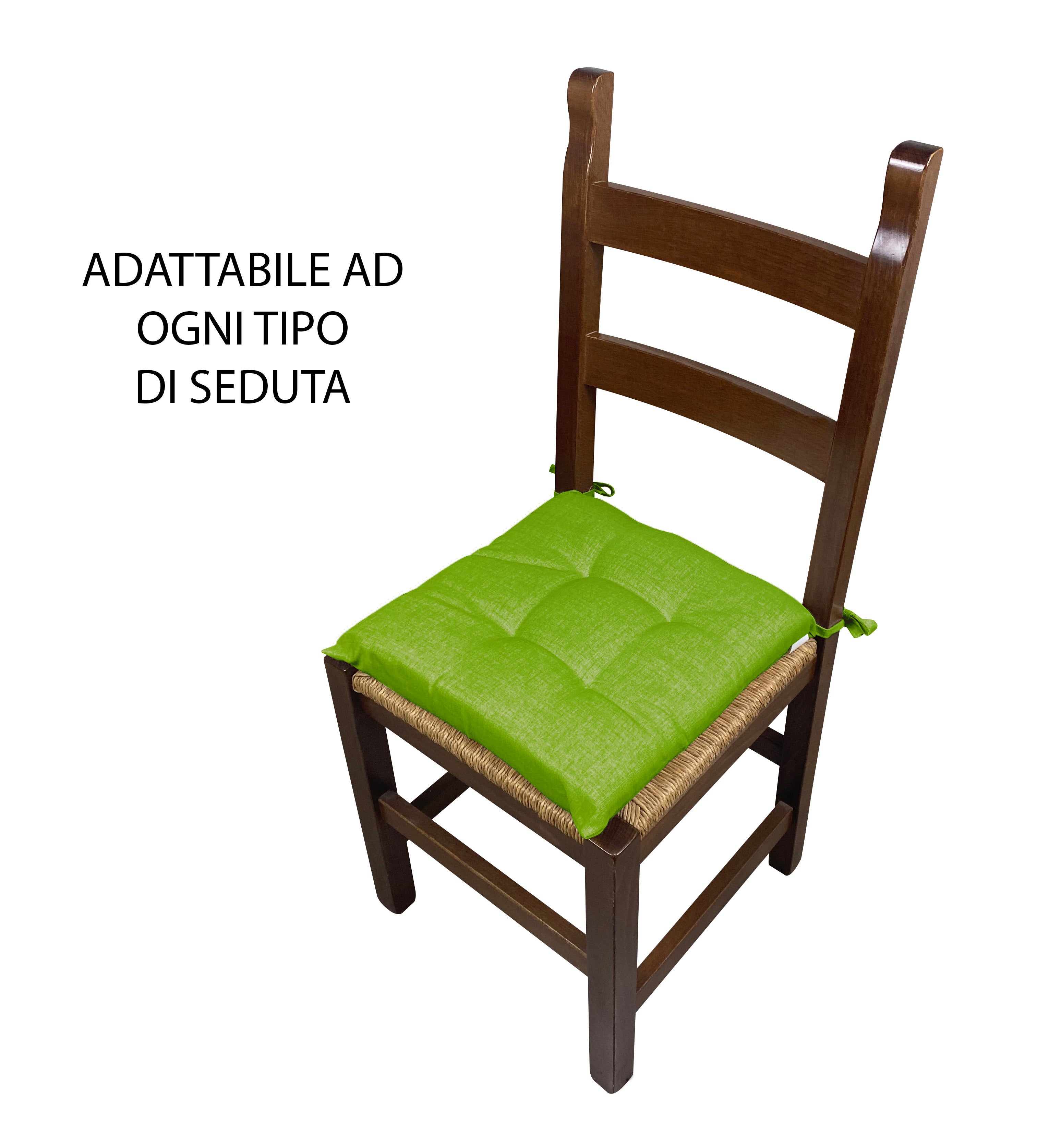 Cuscino arredo sedia Set 6 Cuscini Con Lacci, 4 Punti,Prodotto Italiano 40 x 40 in Spessore 6 Cm Lavorati a Mano mattonella 100% cotone