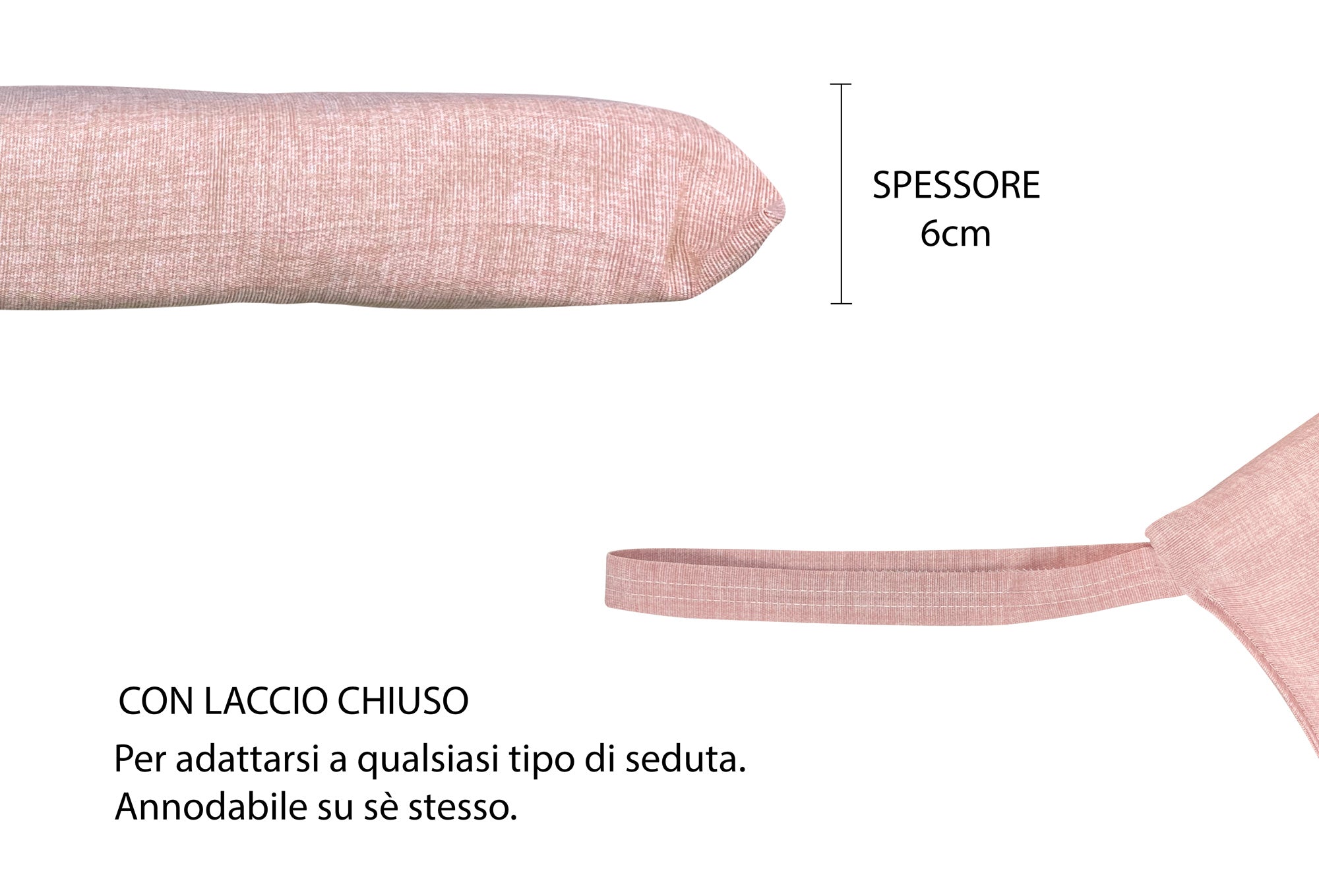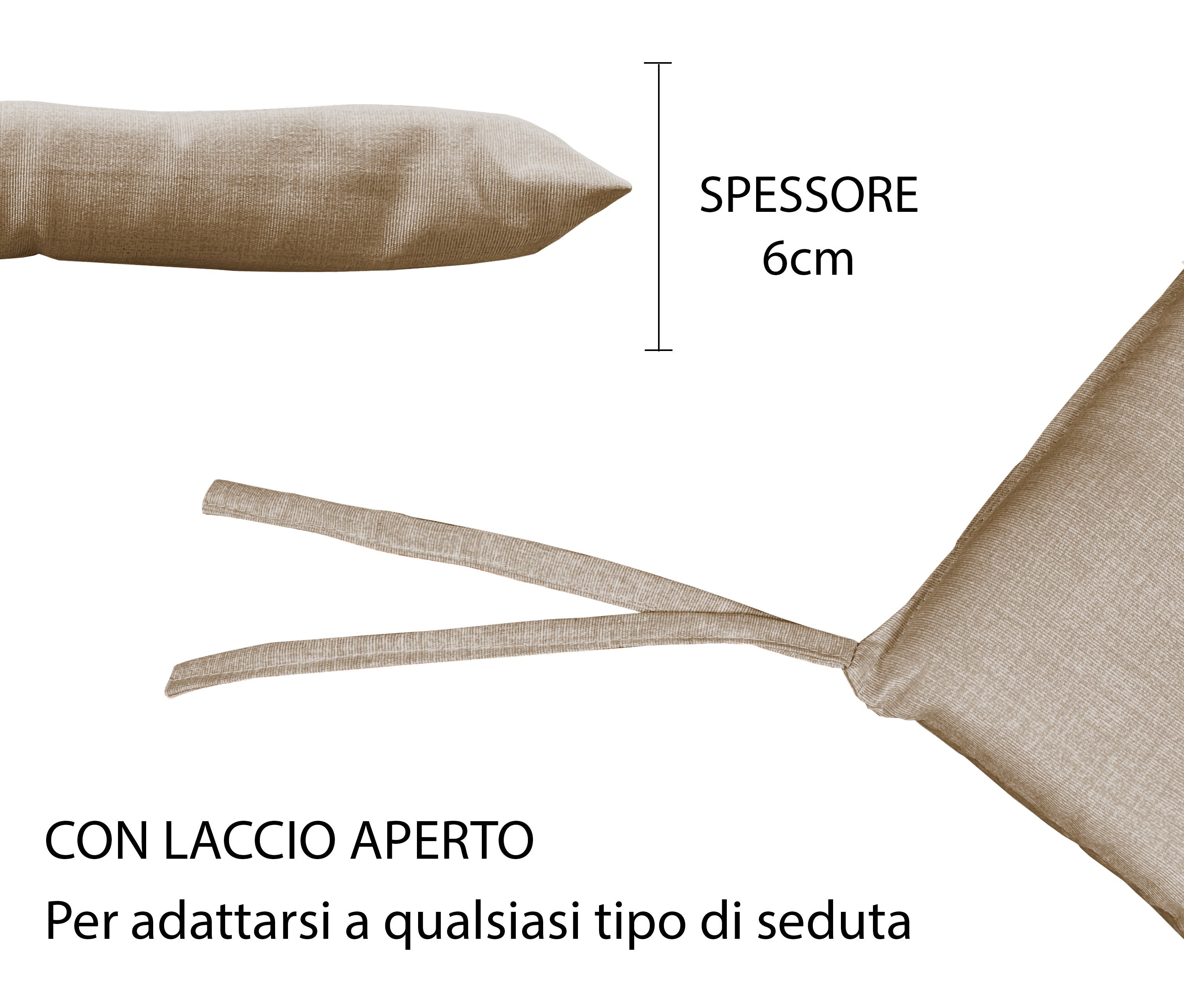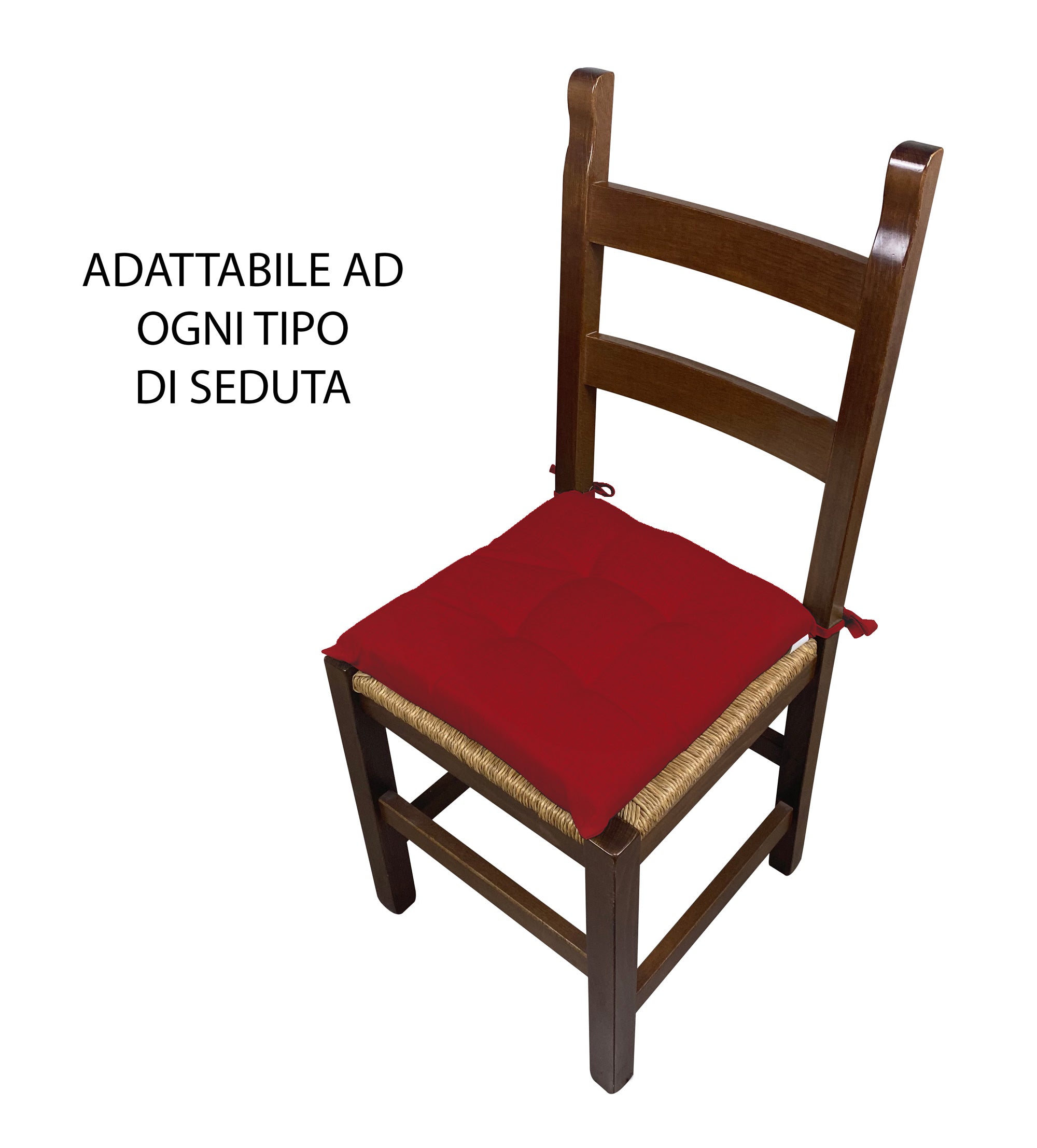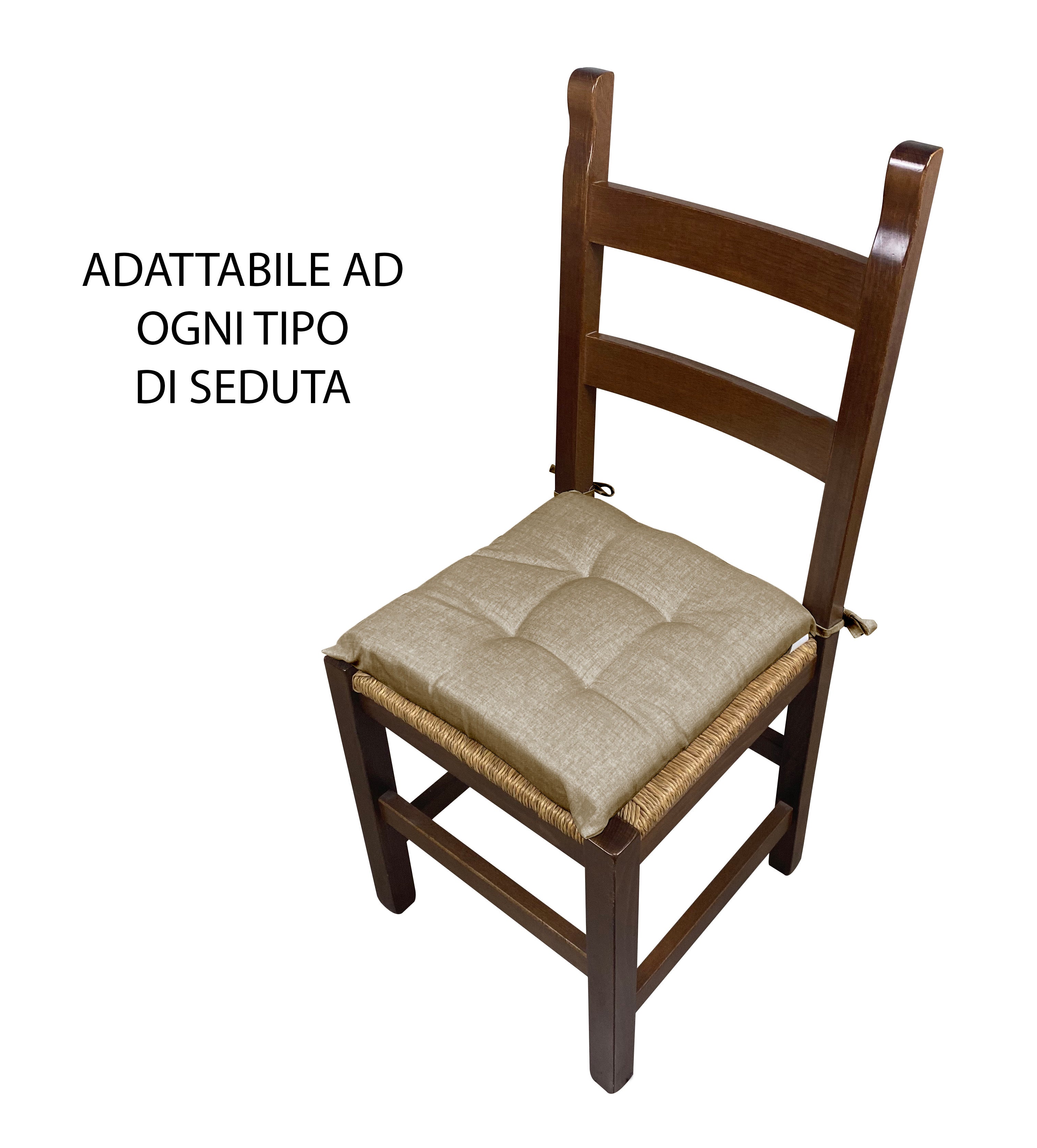 Cuscino arredo sedia Set 6 Cuscini Con Lacci, 4 Punti,Prodotto Italiano 40 x 40 in Spessore 6 Cm Lavorati a Mano mattonella 100% cotone
