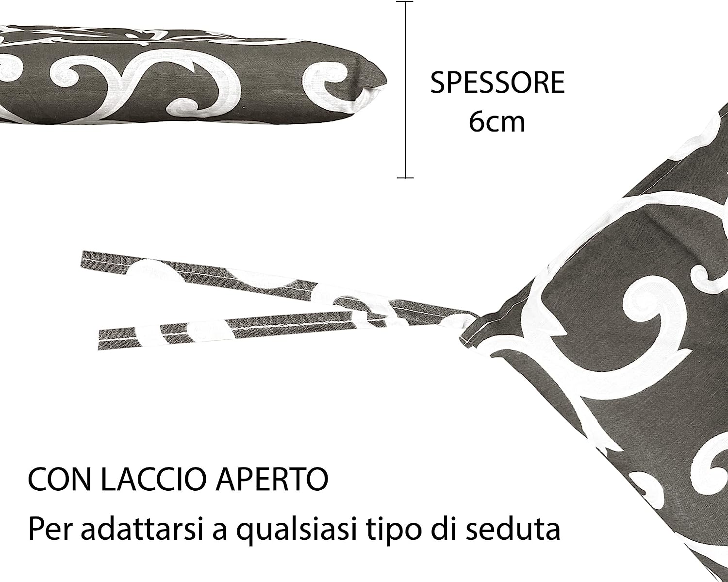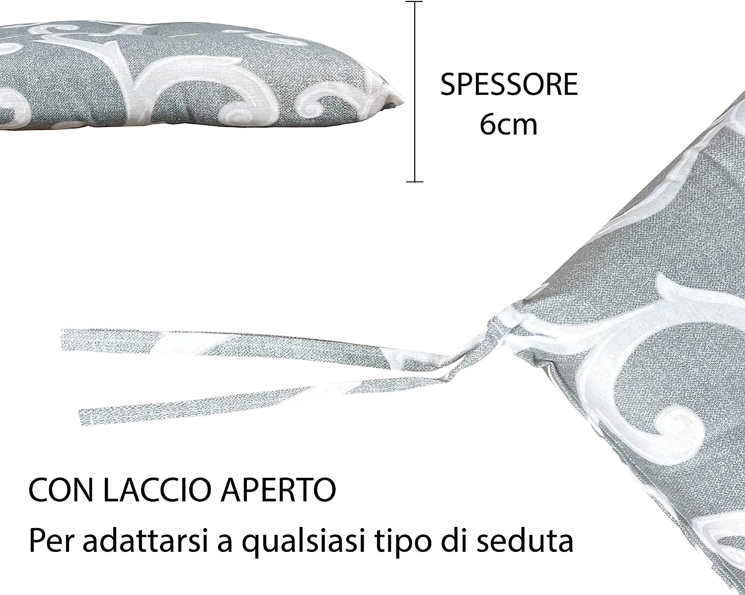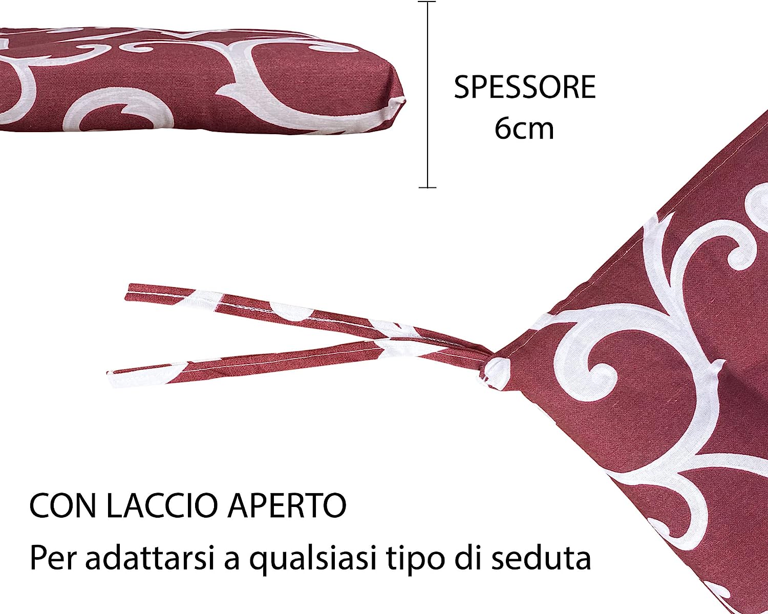 Set 4/6 Cuscini Barocco Sedia con Lacci 4 Punti Comodi Prodotto Italiano 40 x 40 in Cotone Imbottiti Spessore 6 Cm Lavorati a Mano Remage