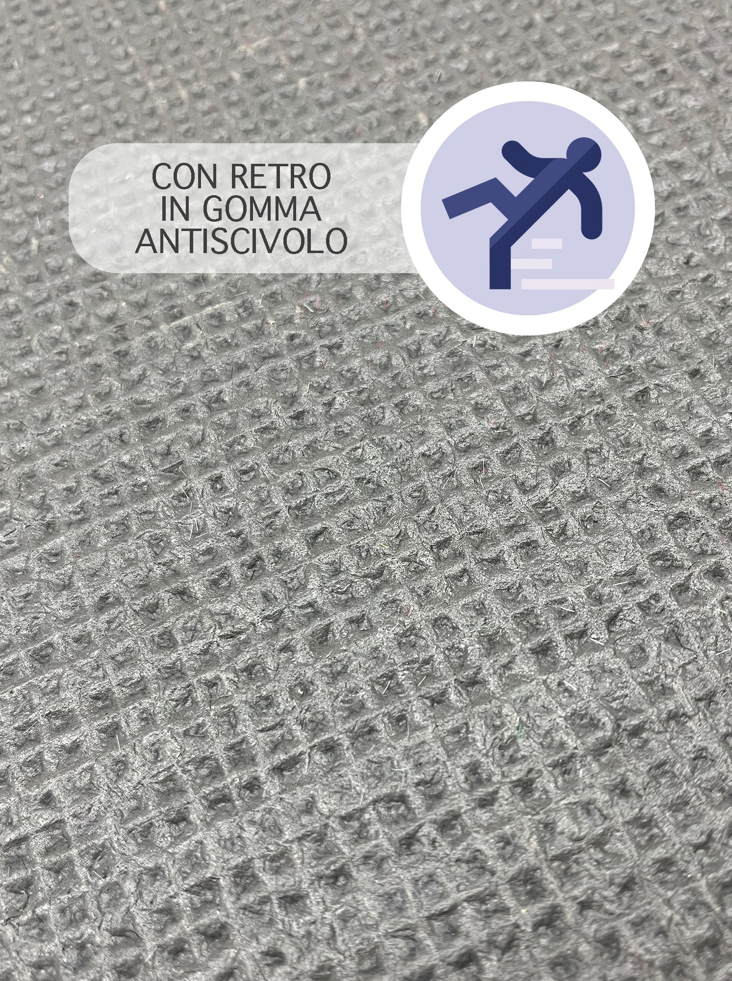 Sicurezza: La Parte posteriore realizzata in Pvc Antiscivolo rende il tappeto stabile e aderente saldamente a terra su tutte le superfici per evitare il pericoloso effetto slittamento, questo consente anche una massima pulizia in sicurezza delle scarpe