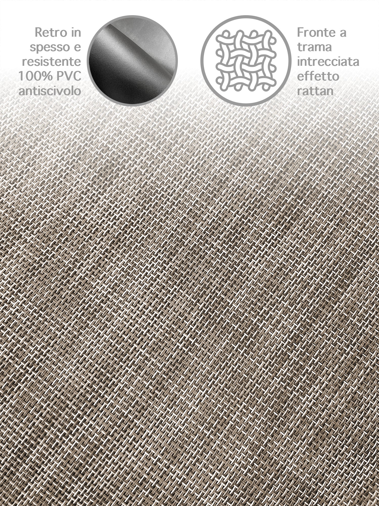 ✔️ STAIN-RESISTANT AND NON-SLIP: The top is made of a woven fabric for a beautiful and stain-resistant effect. The bottom is made with a non-slip base to improve stability on the ground. Composition: Front: 70% PVC - 30% Polyester. Back: 100% PVC.