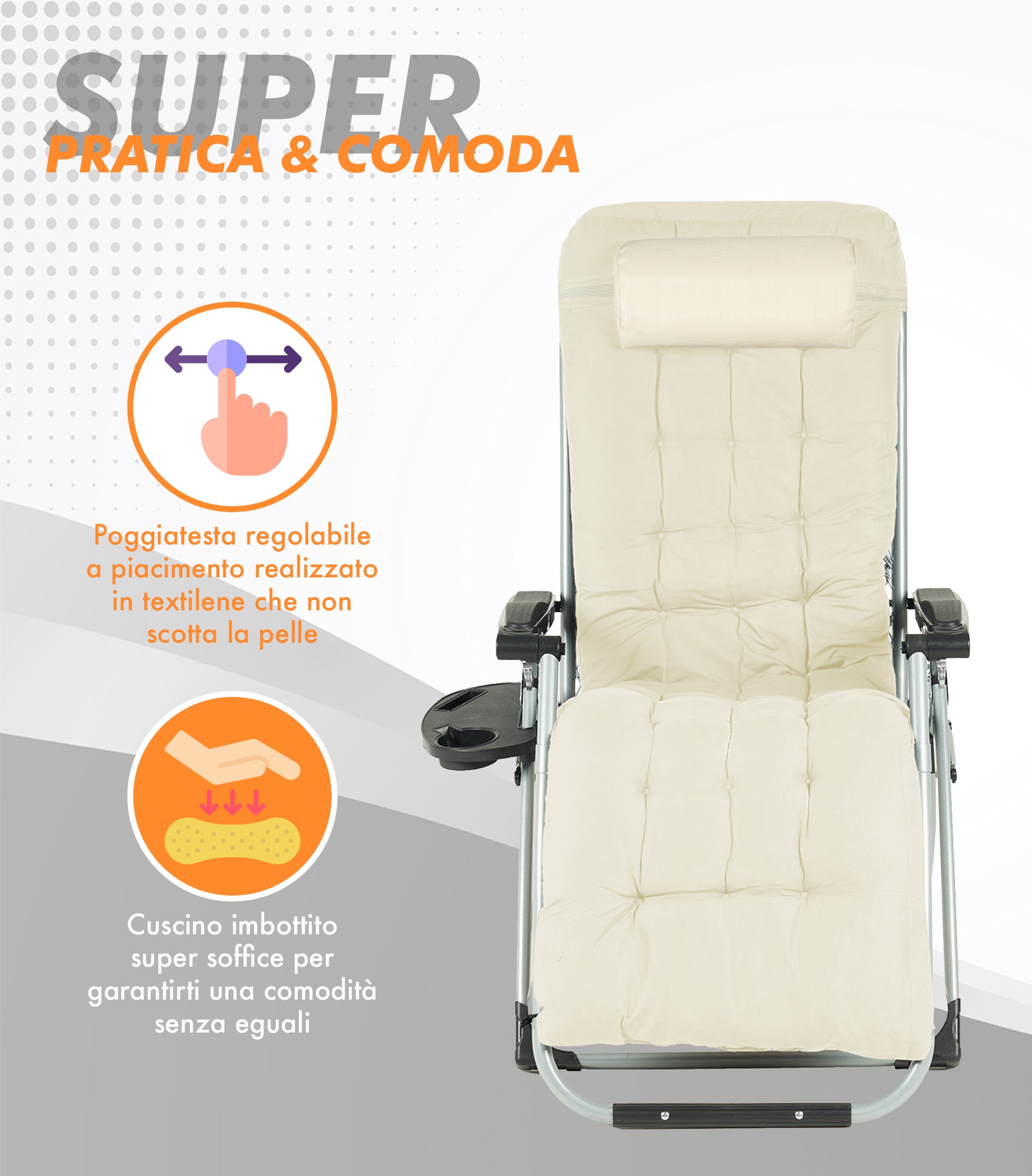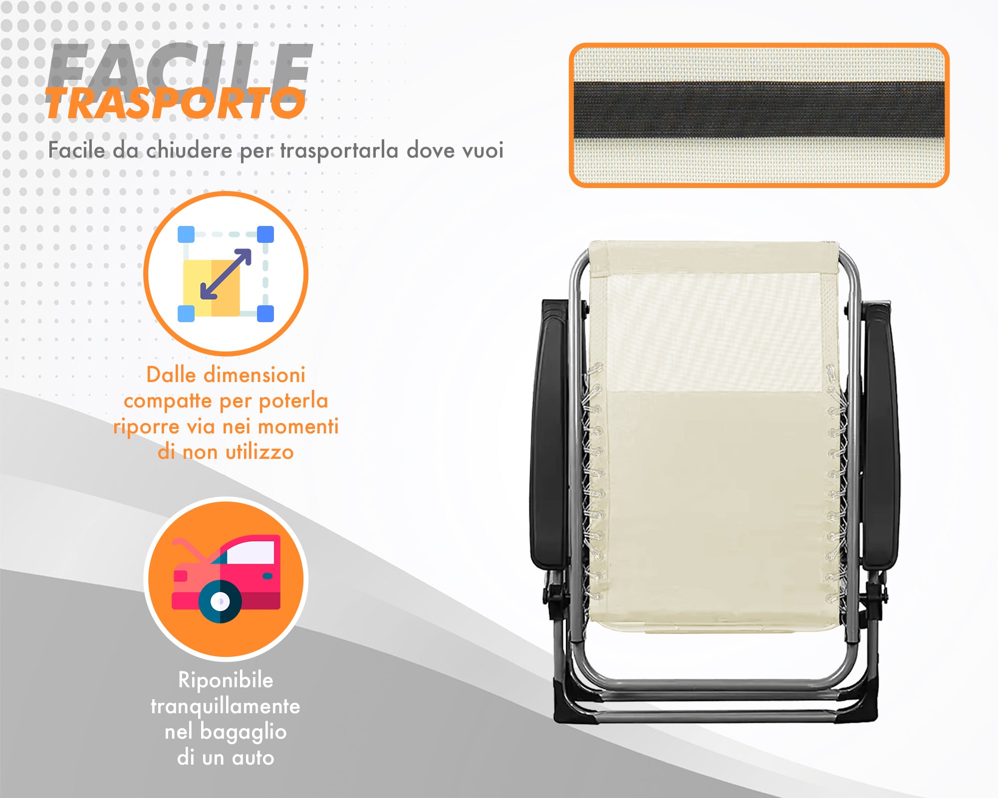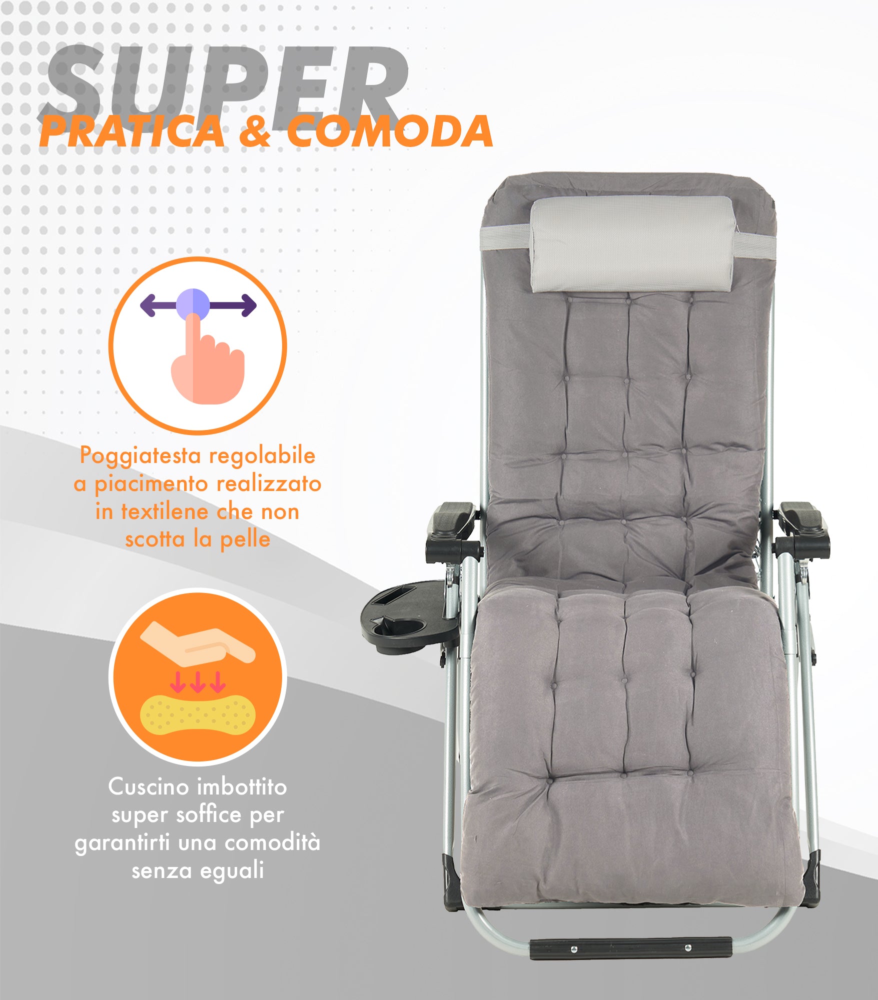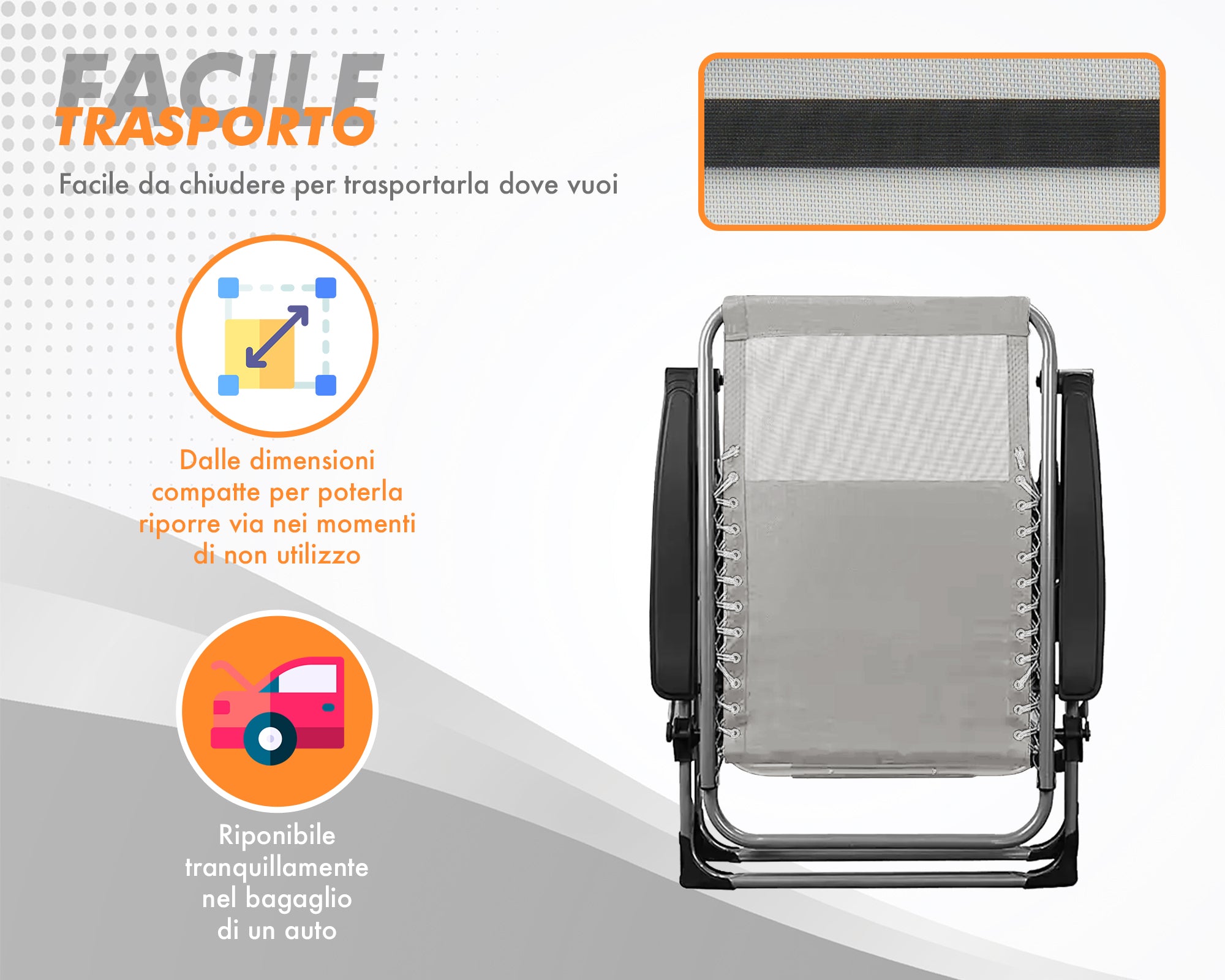[Reclining and Practical] The chair's structure allows you to recline up to 170 degrees via a lever, allowing you to find the perfect position for relaxation. Furthermore, the chair is foldable and space-saving, making it easy to store when not in use. When folded, it measures just 66 x 94 x 15.50 cm, making it easy to transport and move wherever you want.