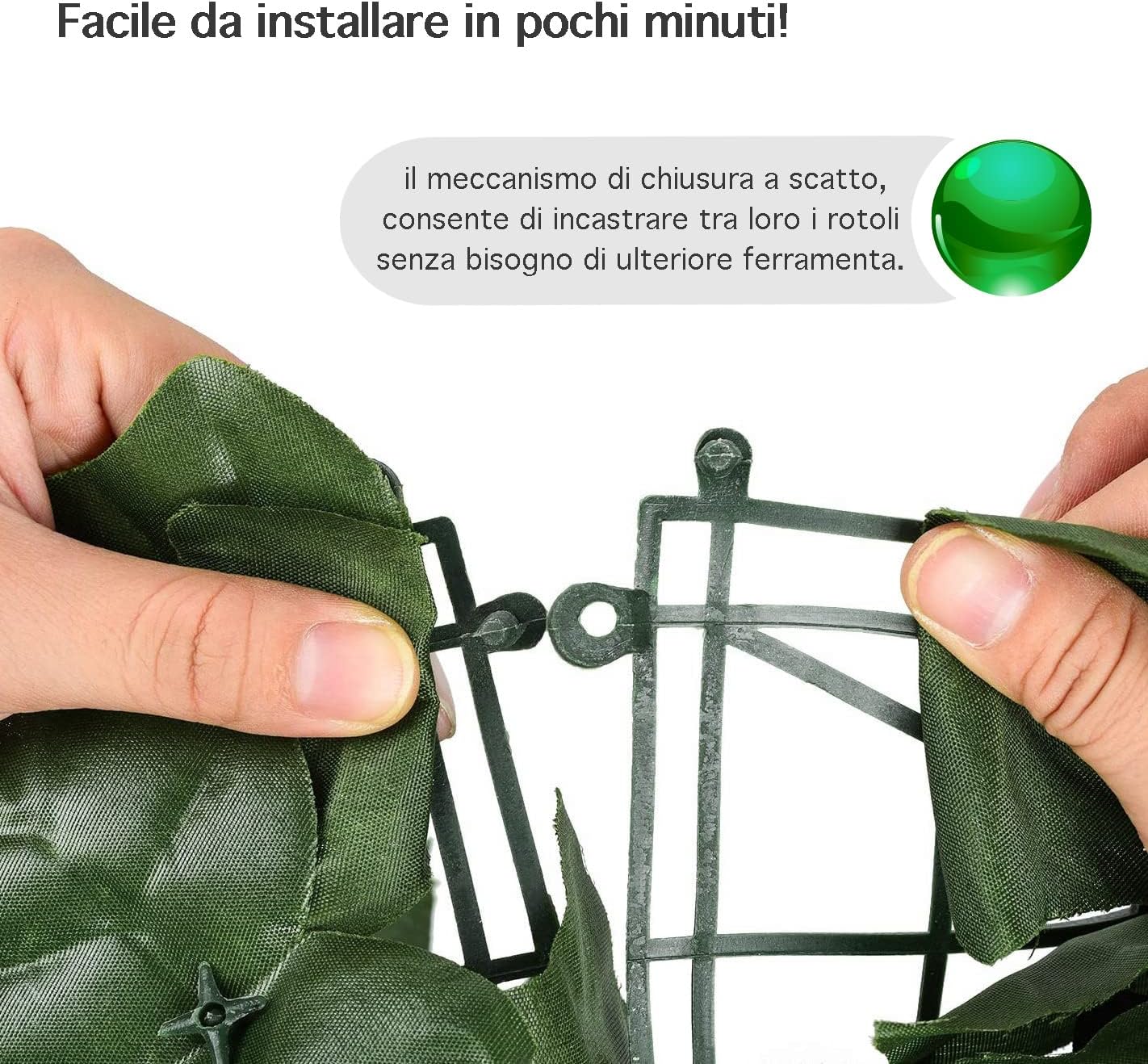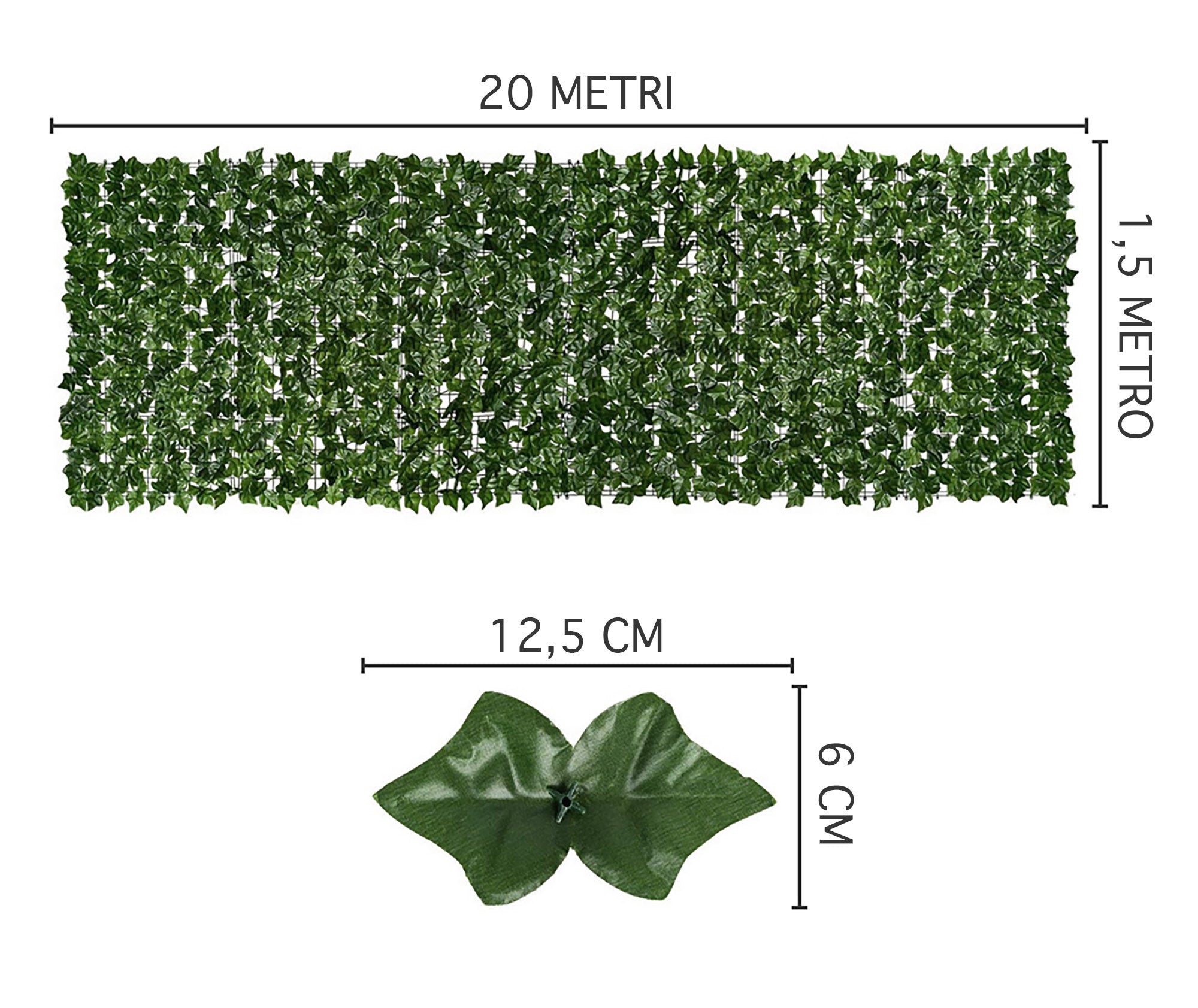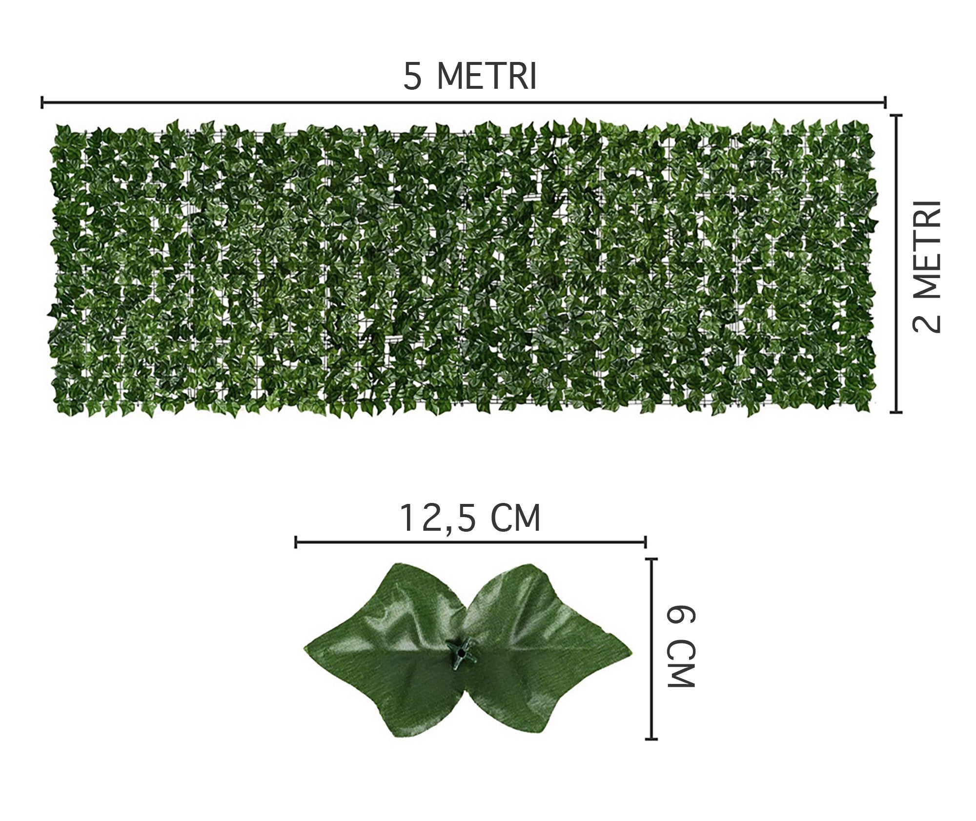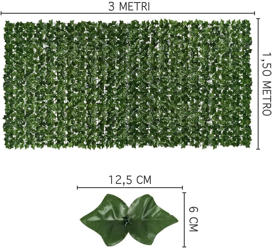 Anti-fall: The ivy leaves are fixed with an anti-fall system and are very thick to ensure maximum privacy, and prevent the sun from penetrating but at the same time air circulation is guaranteed.