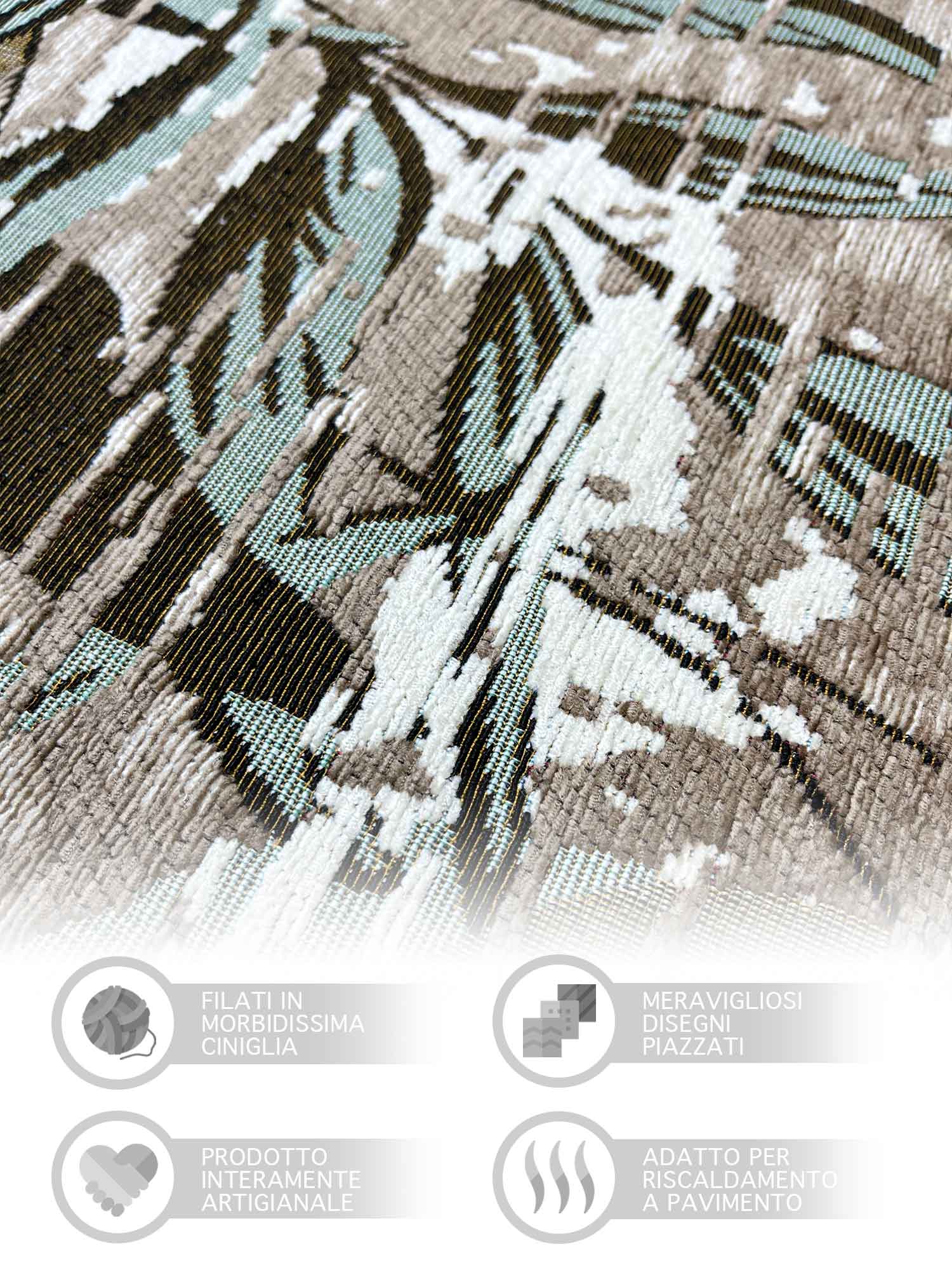 Modern Chenille Rug, Non-Slip, Made in Italy, Foliage, Mud, Il Gruppone