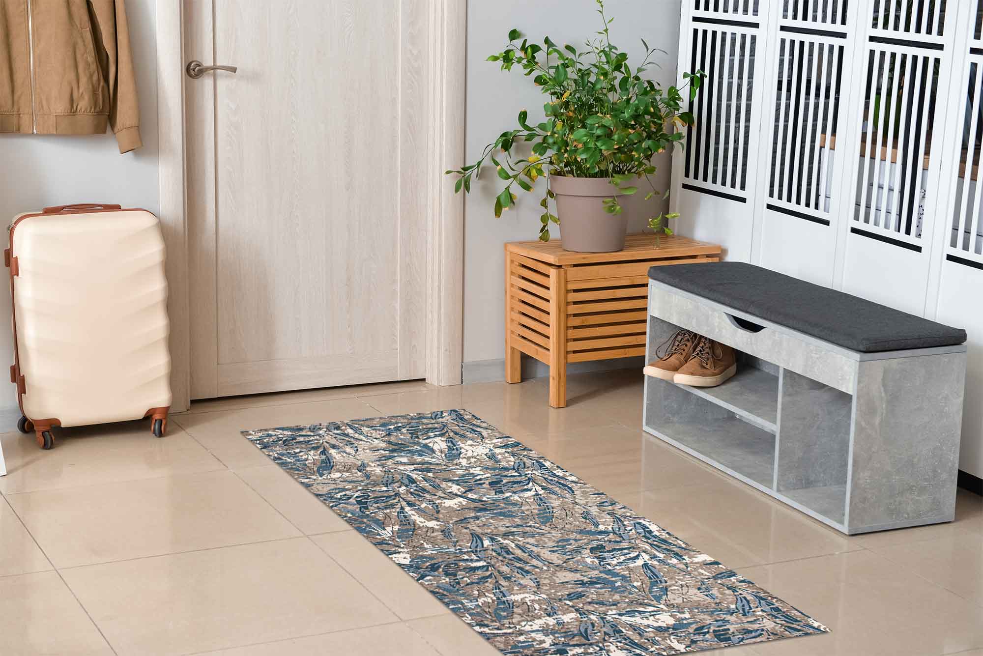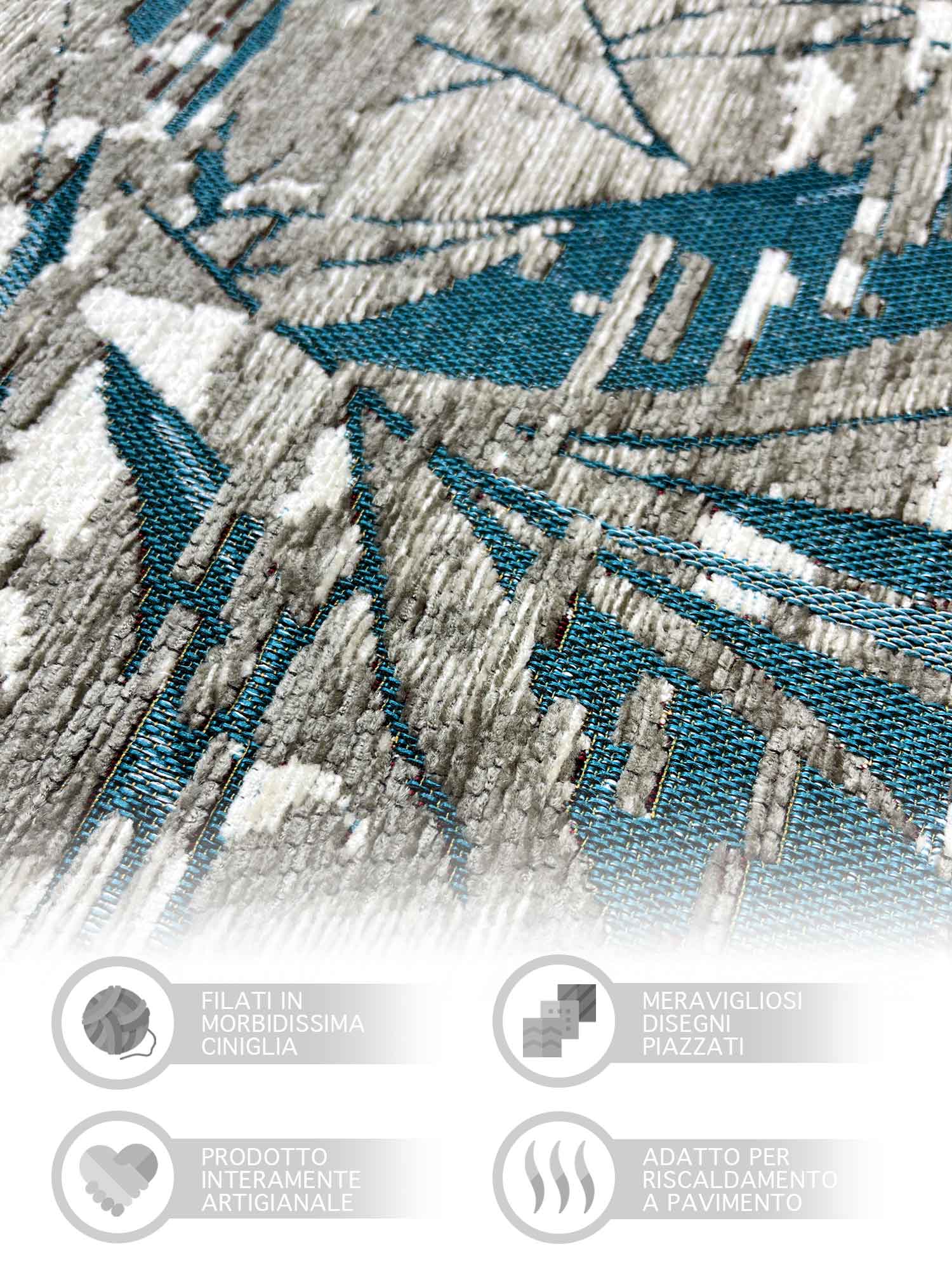 Modern Chenille Rug, Non-Slip, Made in Italy, Foliage, Teal, Il Gruppone