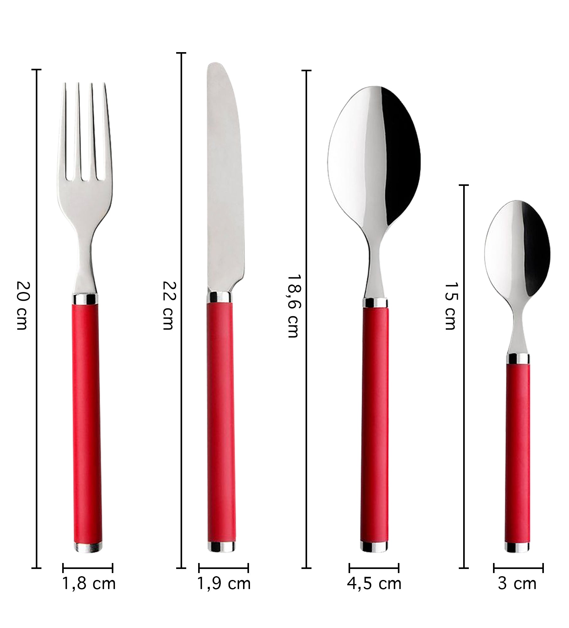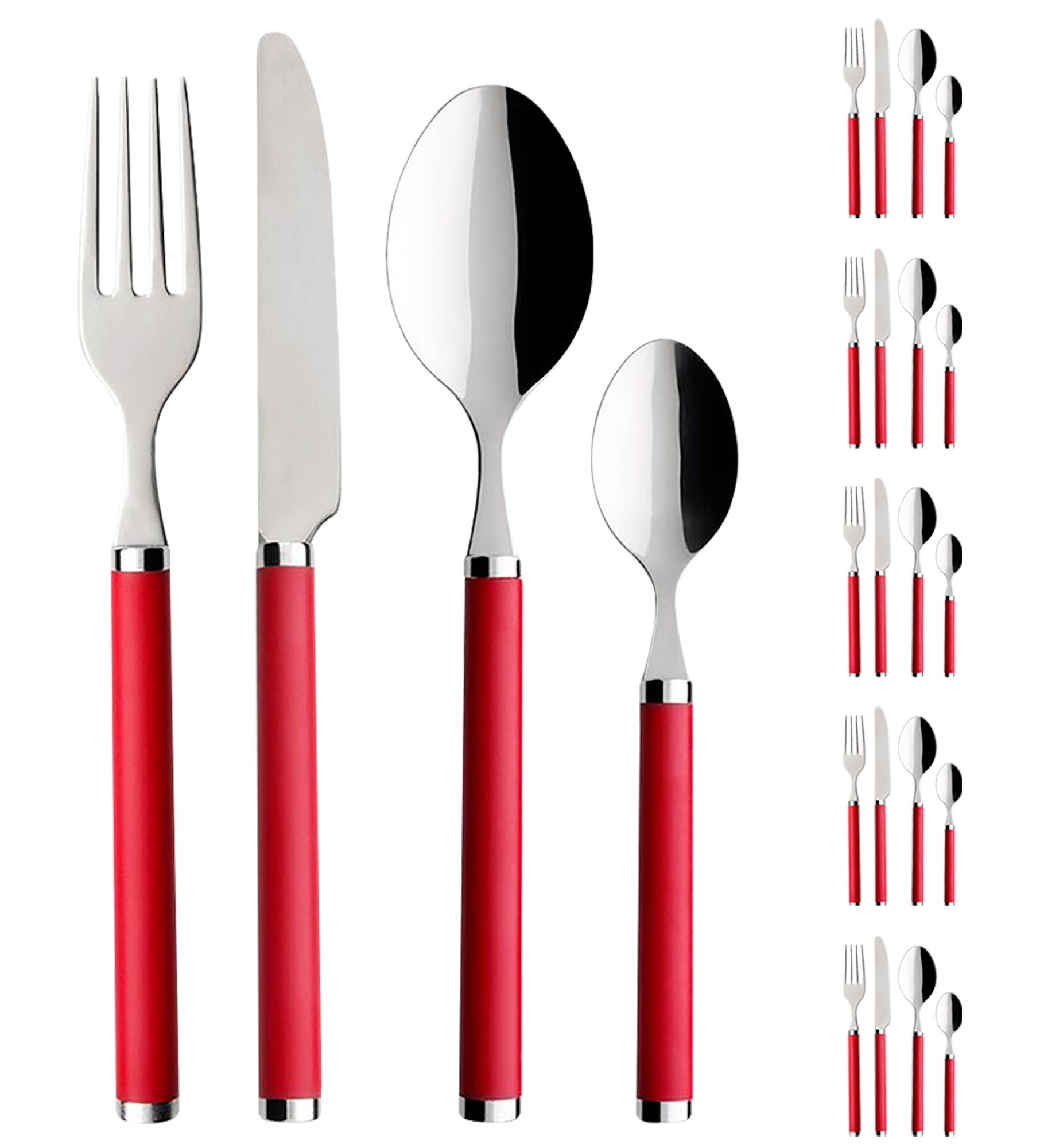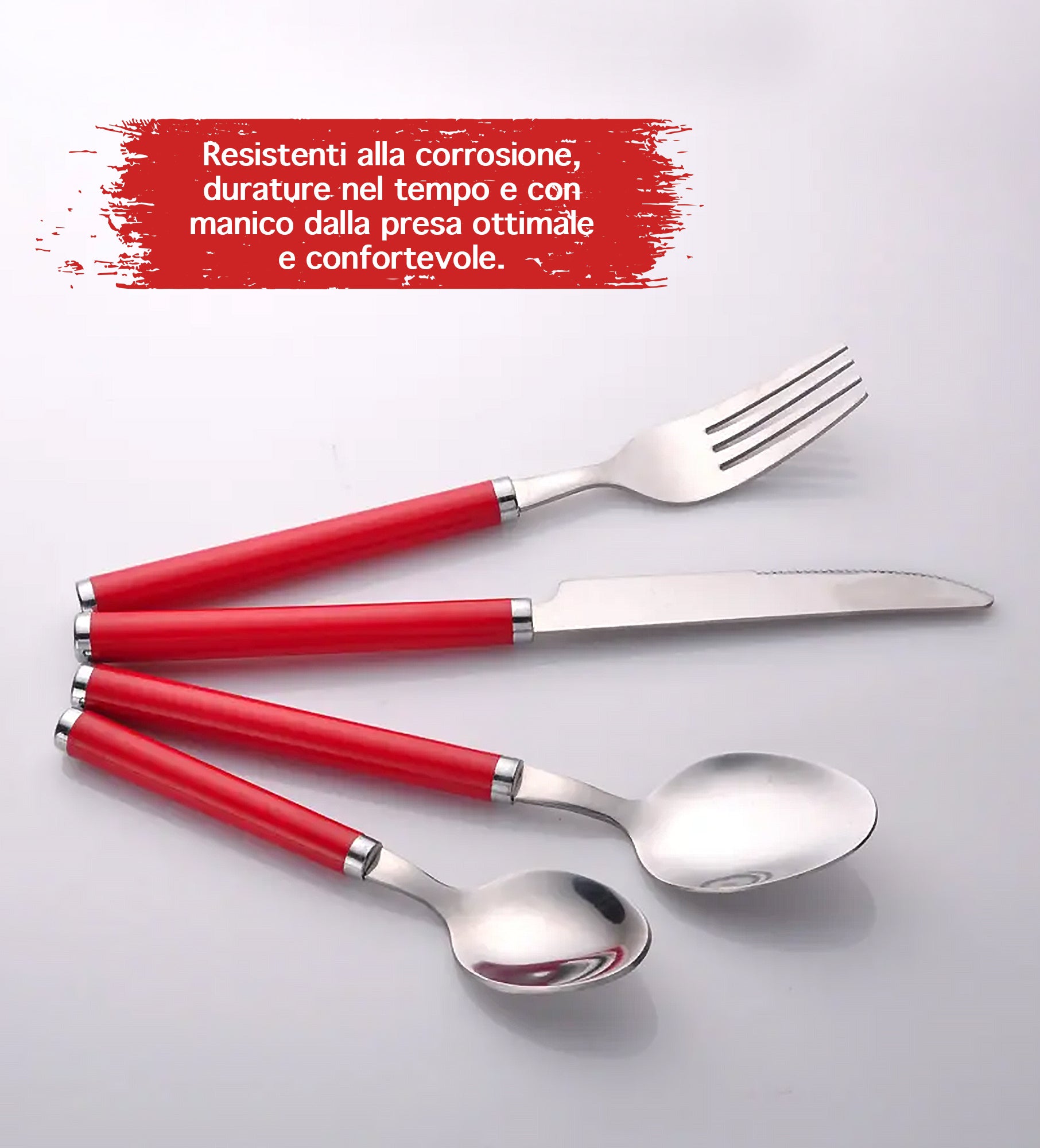 24 Piece Set of Red Steel Cutlery, Dishwasher Safe, Gift Box, Christmas Idea, Certified for Food Contact