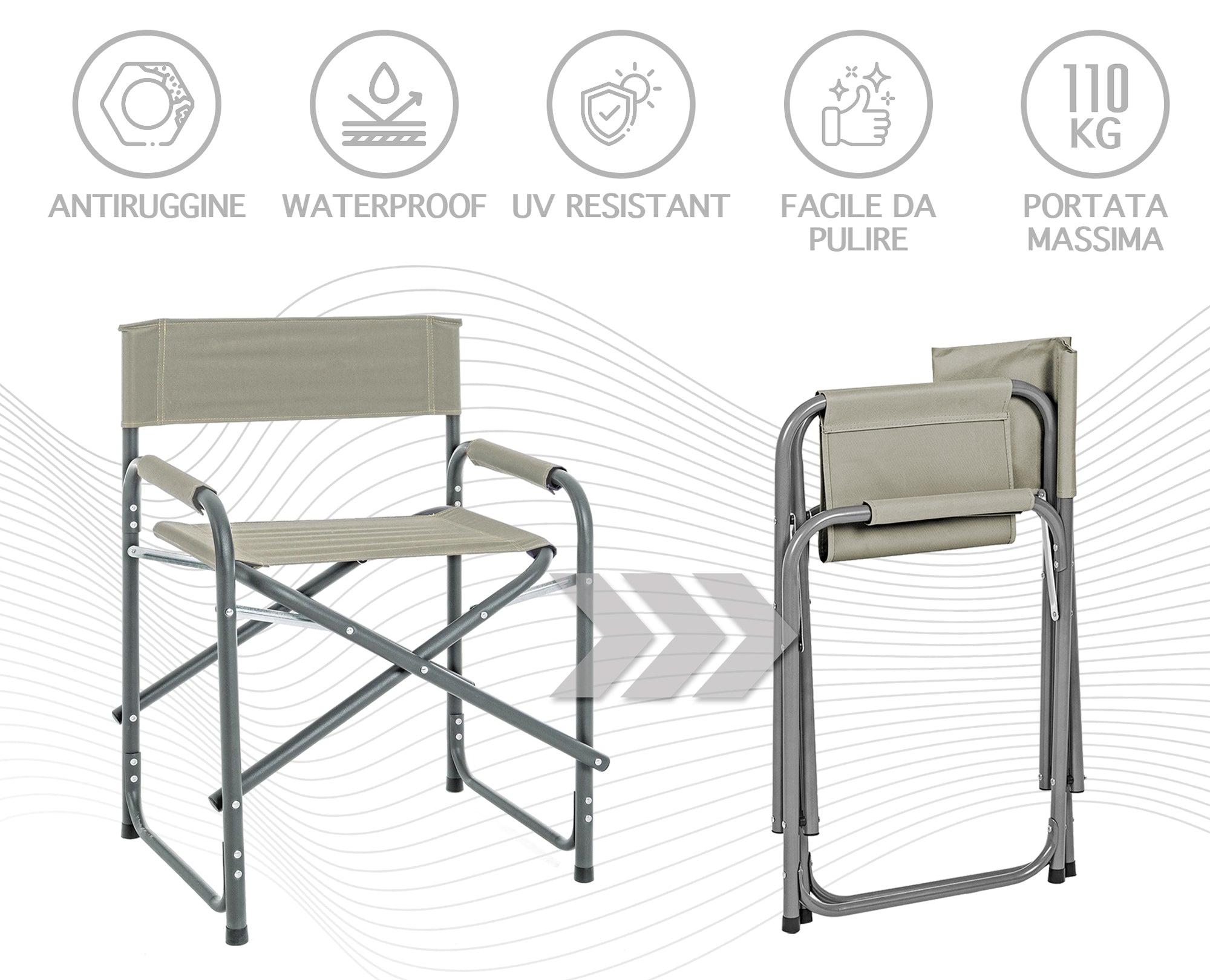 Silla de director, taburete, sillón plegable de aluminio, portátil, lavable, ligero, resistente a los rayos UV, inoxidable