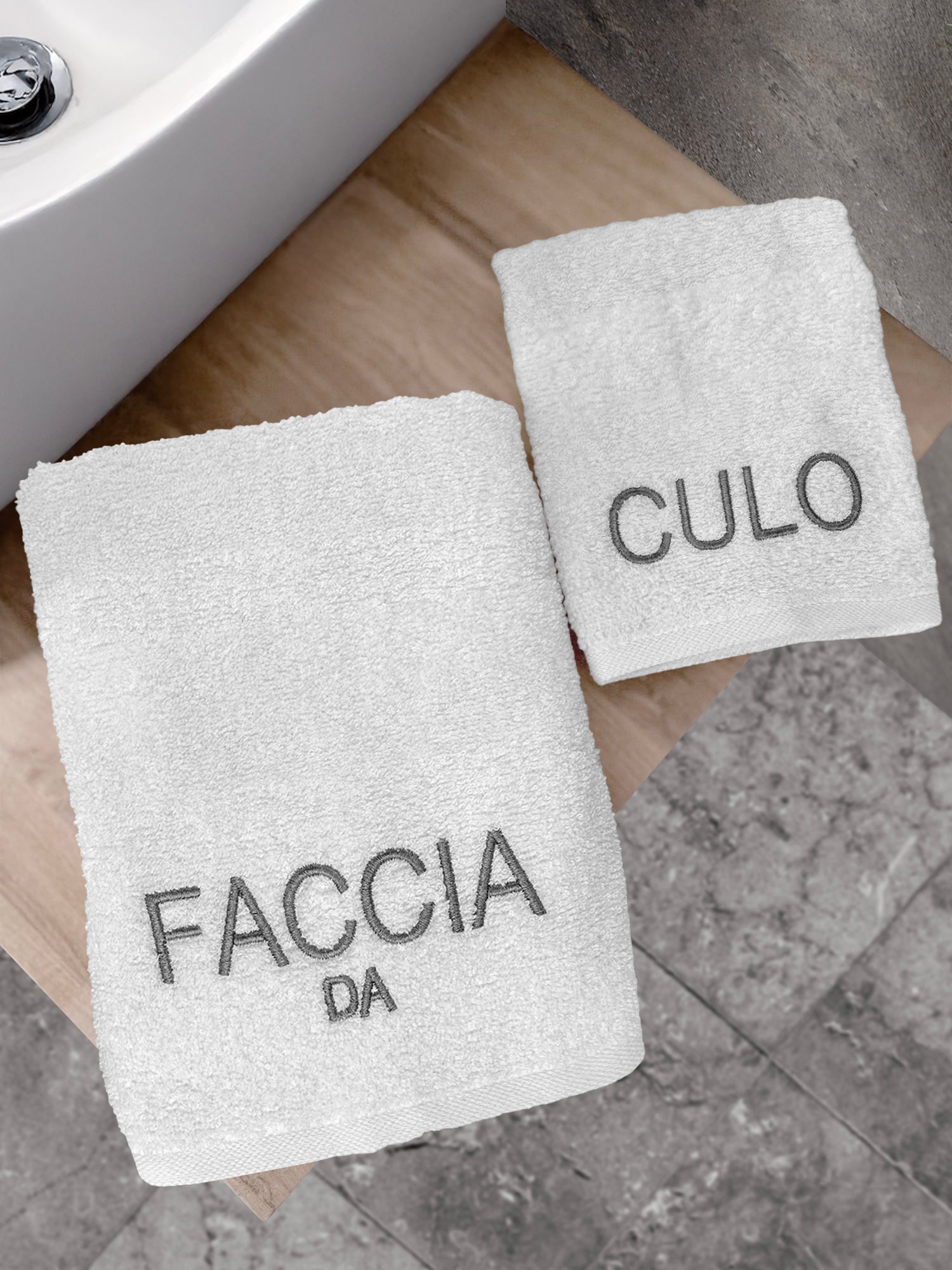 Juego de toallas de baño 100% algodón con divertidos bordados, ideal como regalo para invitados + toalla de 400 g/m², toallas de rizo bordadas, varios colores, suaves y absorbentes.