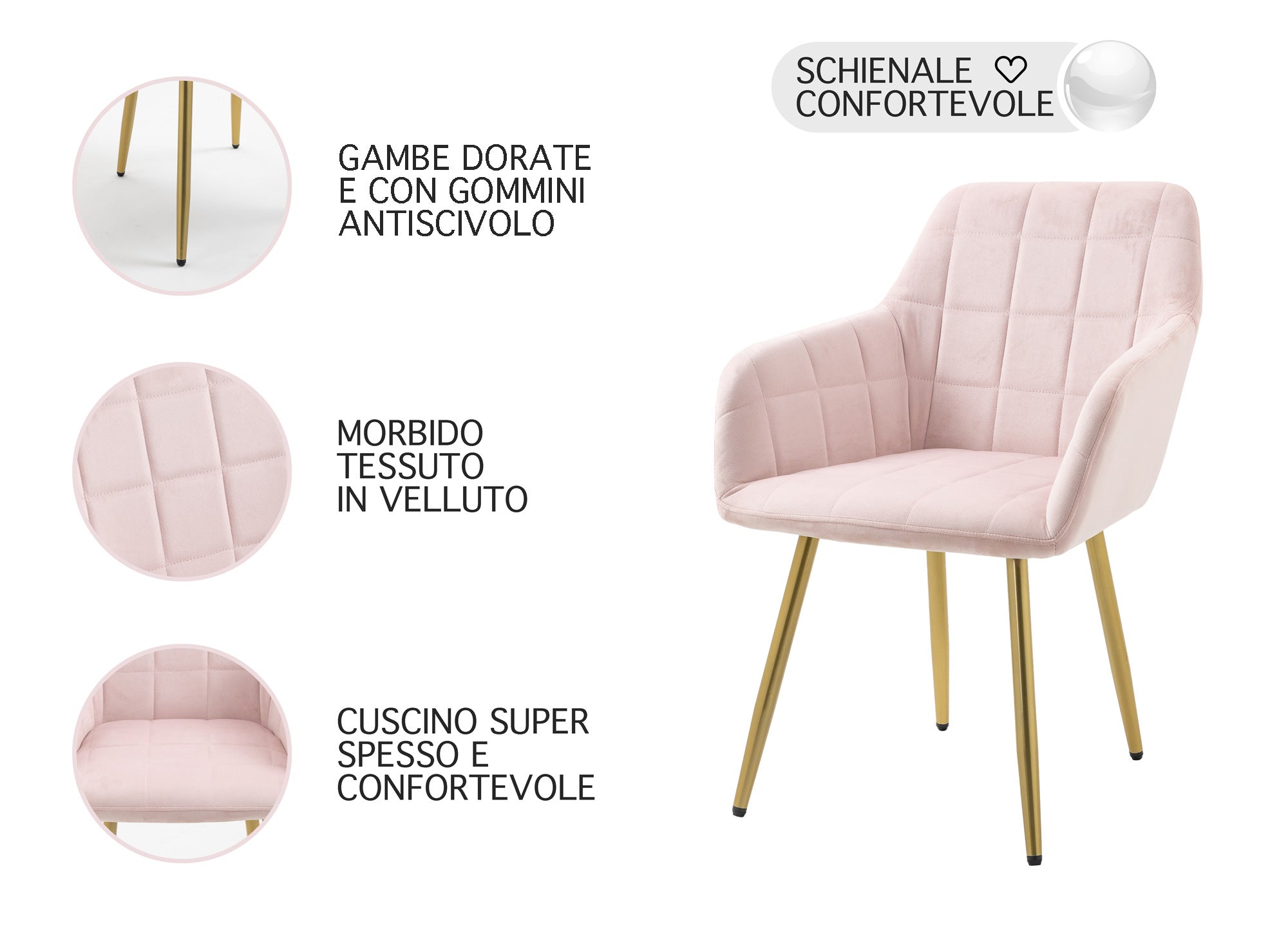 Sillón clásico con reposabrazos para dormitorio en terciopelo, diseño moderno, con patas metálicas, modelo Odette