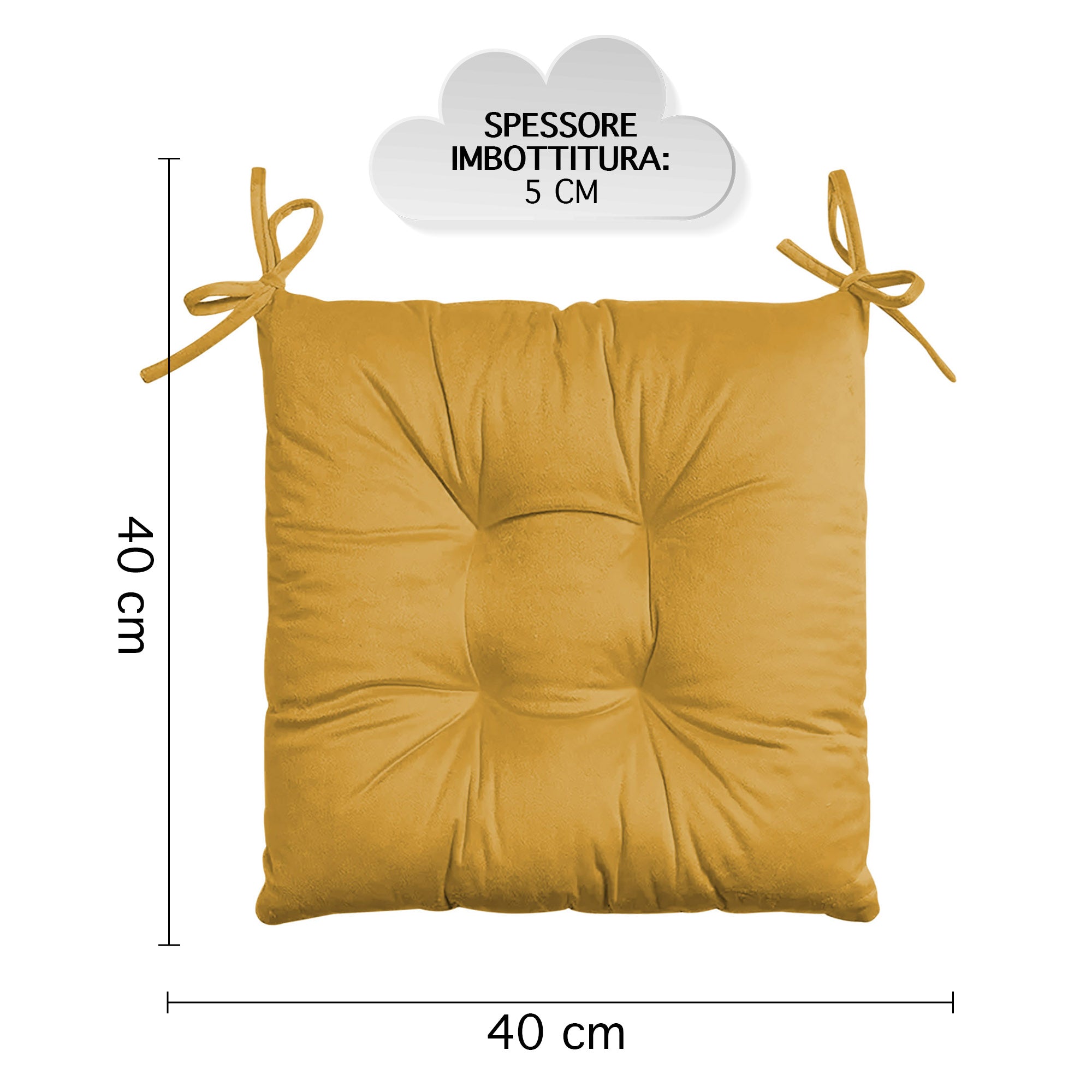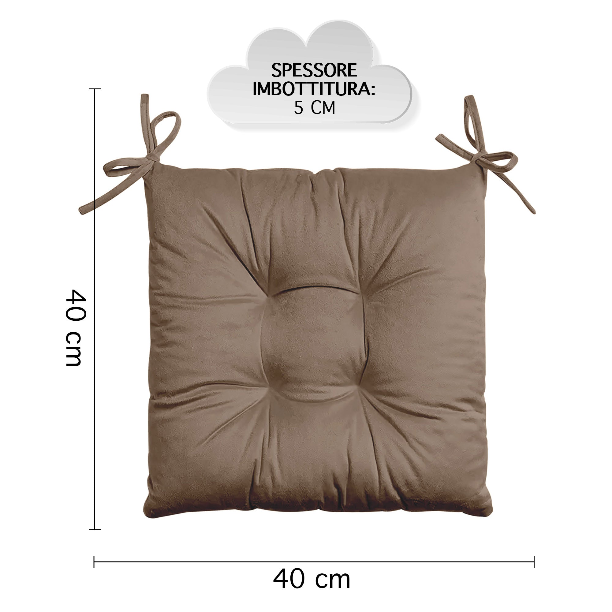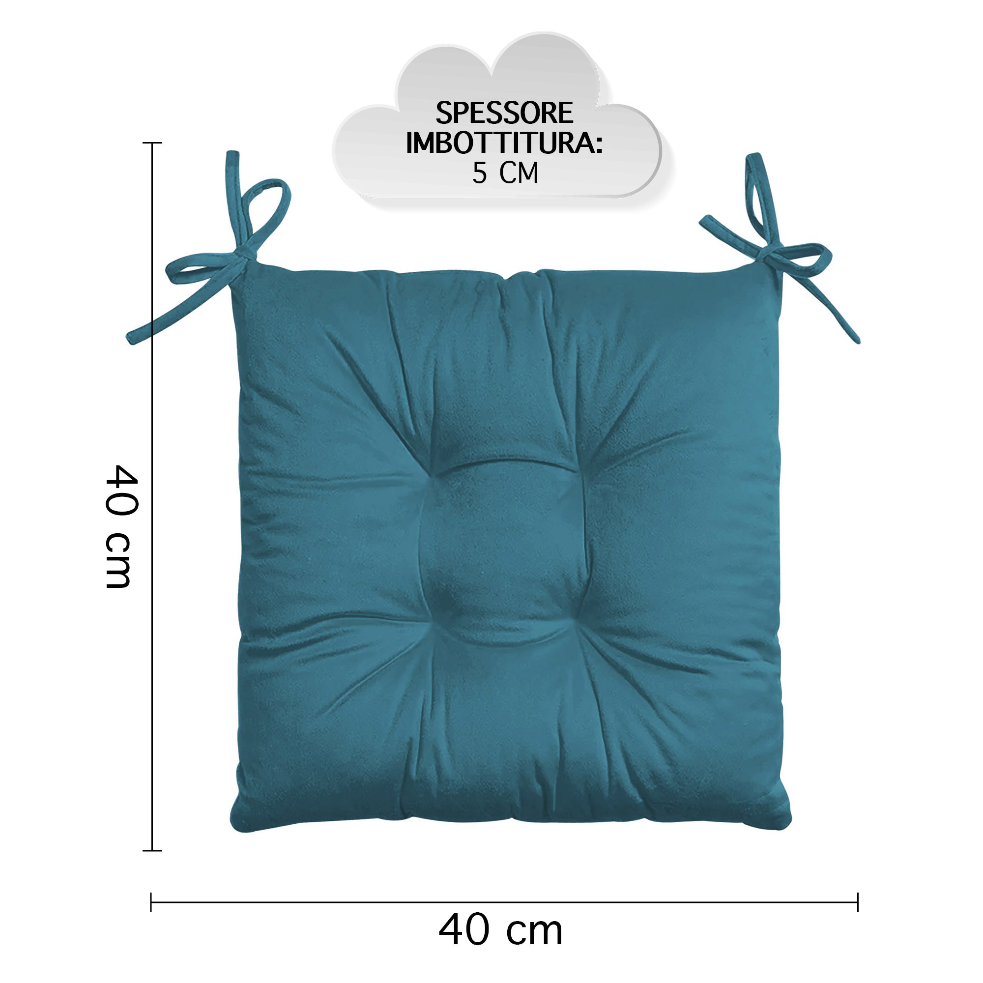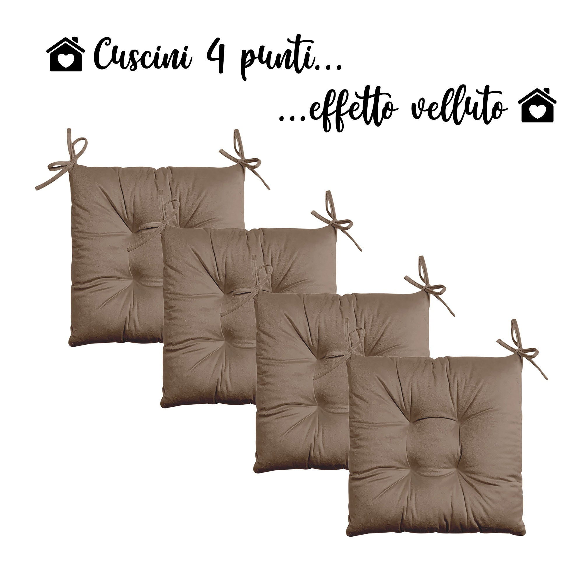 Juego de 4 cojines para sillas, fundas de 4 puntos con efecto terciopelo y cordones, producto italiano, color liso, relleno de 5 cm.