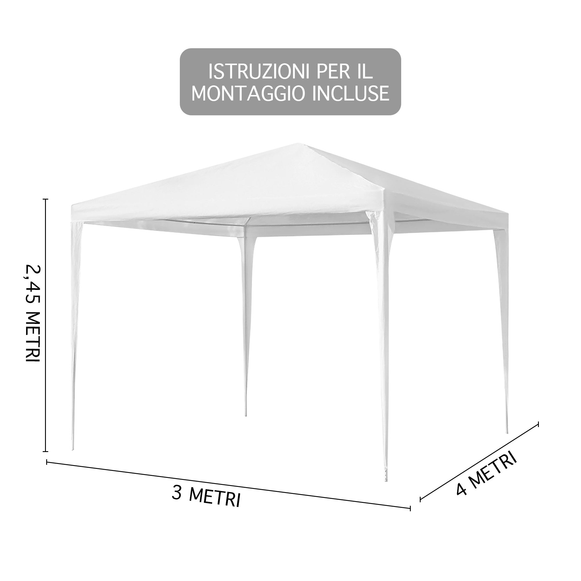 Gazebo de 3 x 4 m, impermeable, resistente a los rayos UV, inoxidable, estructura de acero, color blanco, ideal para fiestas en el jardín, carpas, pabellones y ferias.