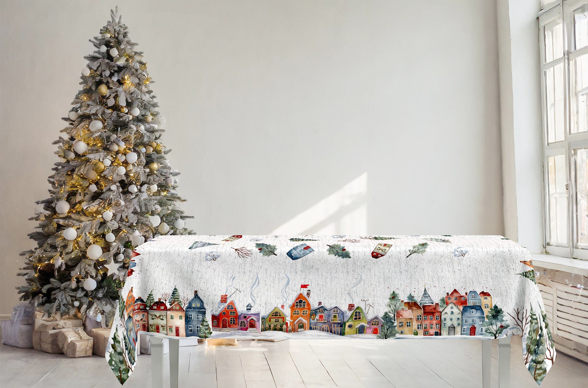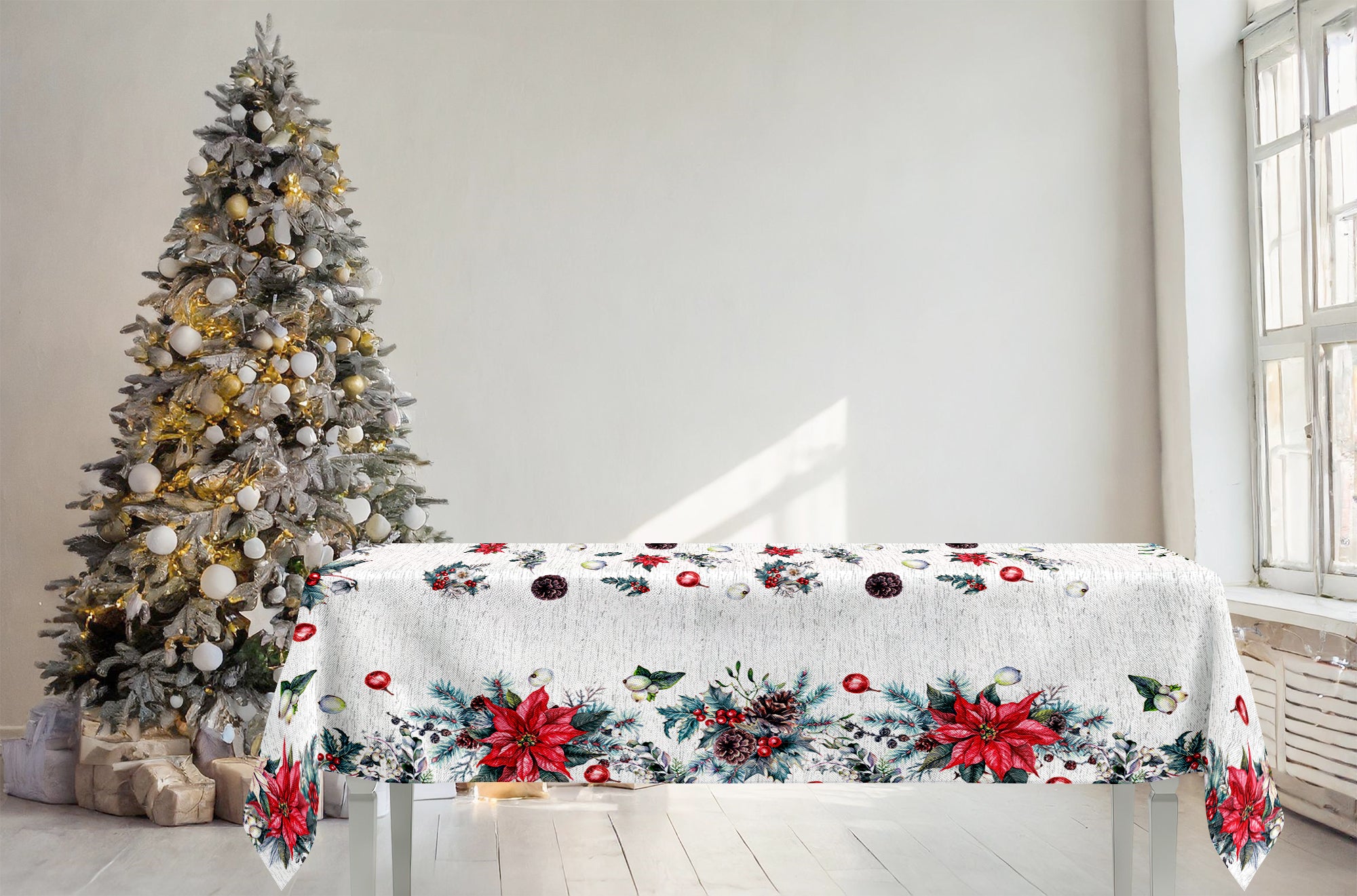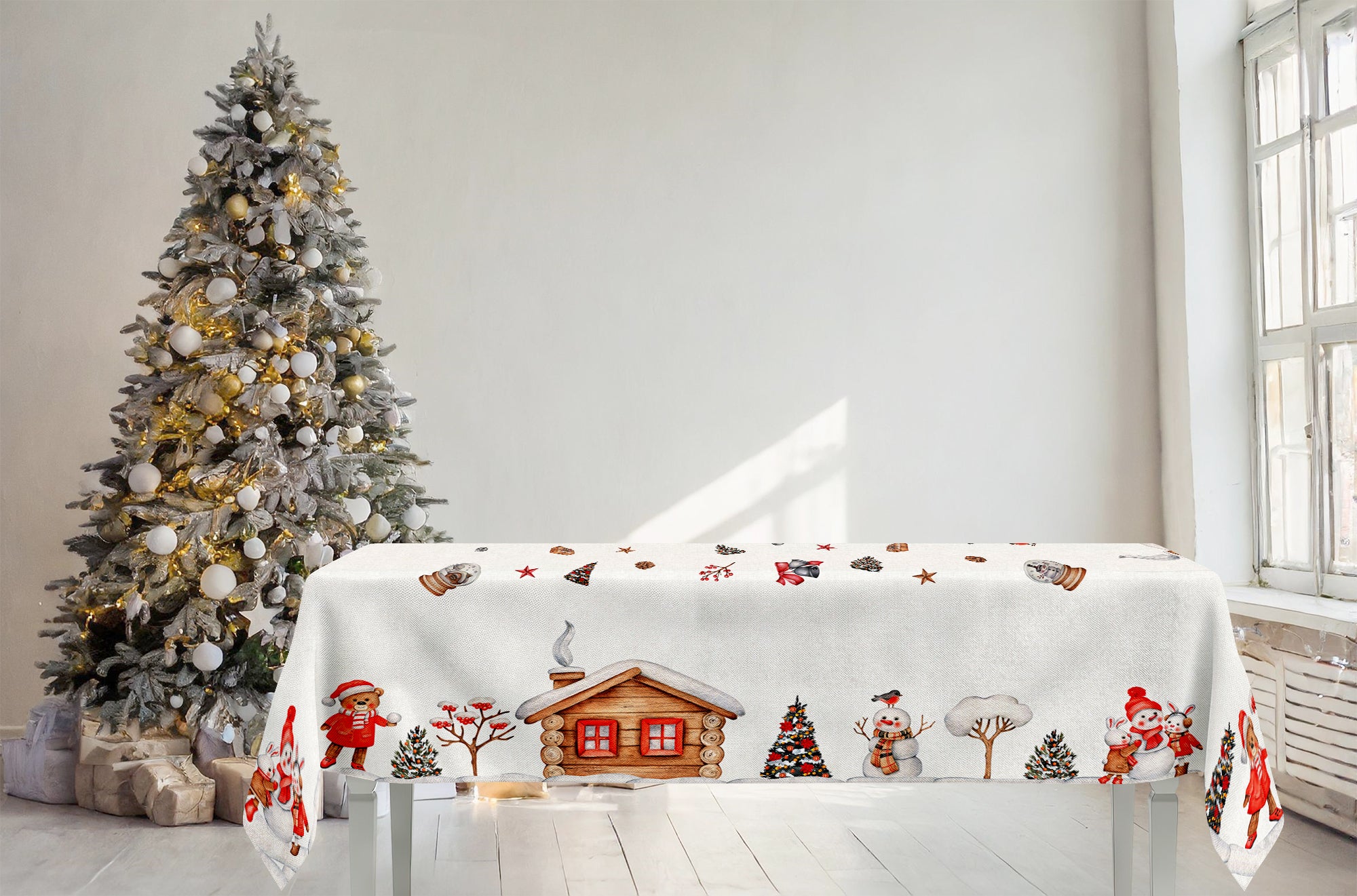 Mantel de algodón con estampado digital de alta definición. Varios diseños navideños. Ideas para decorar la mesa en Navidad.