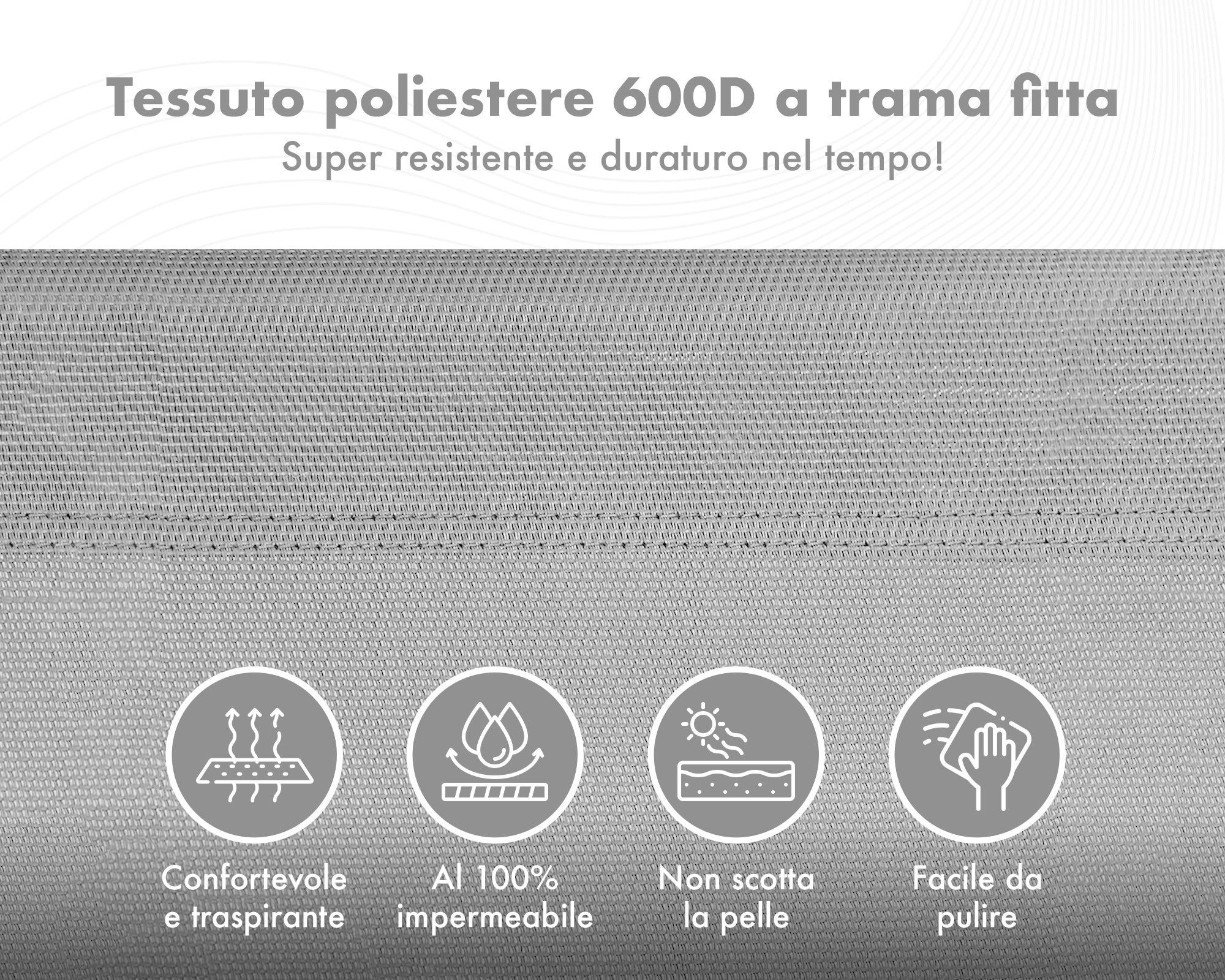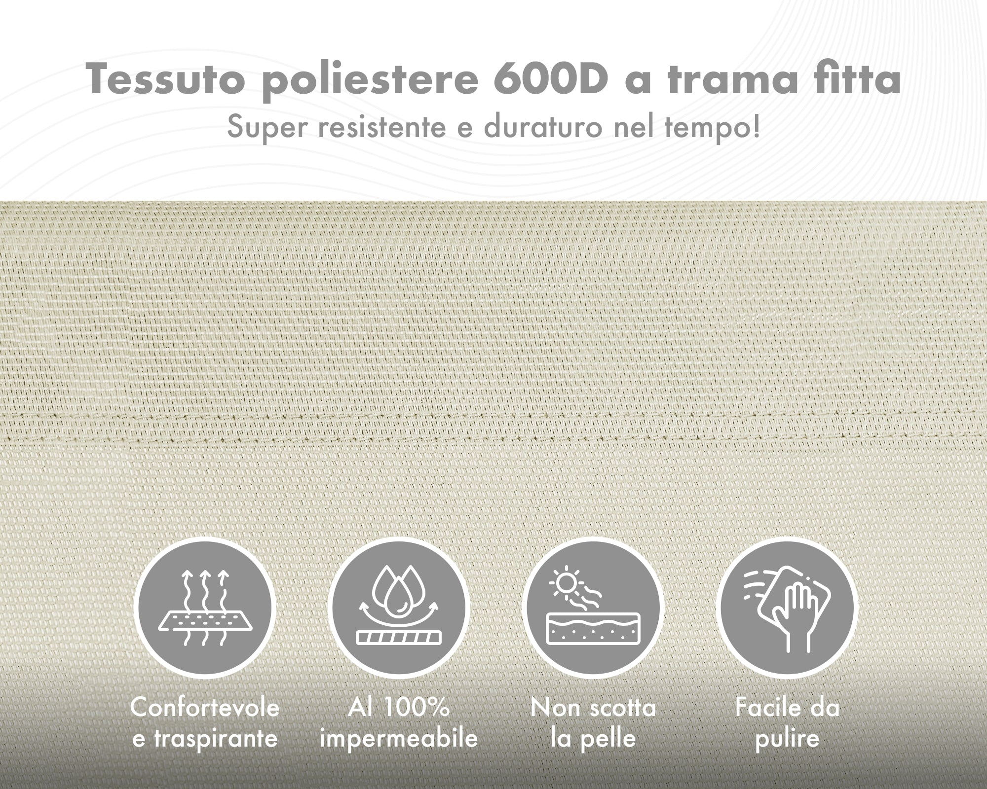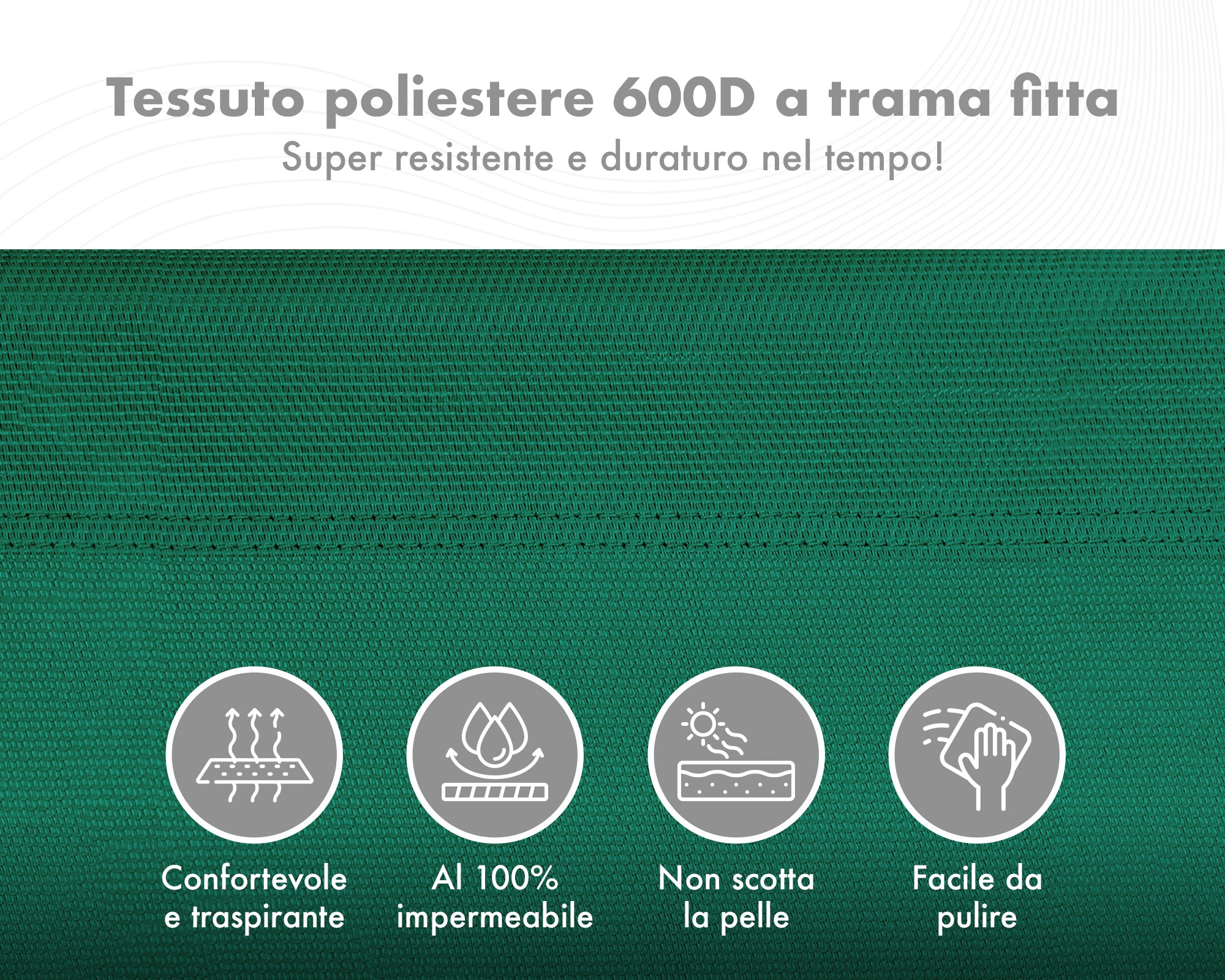 ✔️Calidad: Cama solar profesional con tejido Textilene de 850 g/m², resistente a las manchas, a los rayos UV, a la intemperie, a los cambios climáticos y al cloro. Su alta transpirabilidad evita la retención de calor en los días calurosos de verano, y la estructura especial del Textilene permite un secado rápido en caso de humedad.