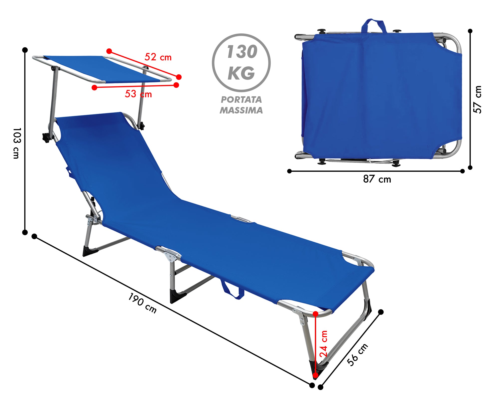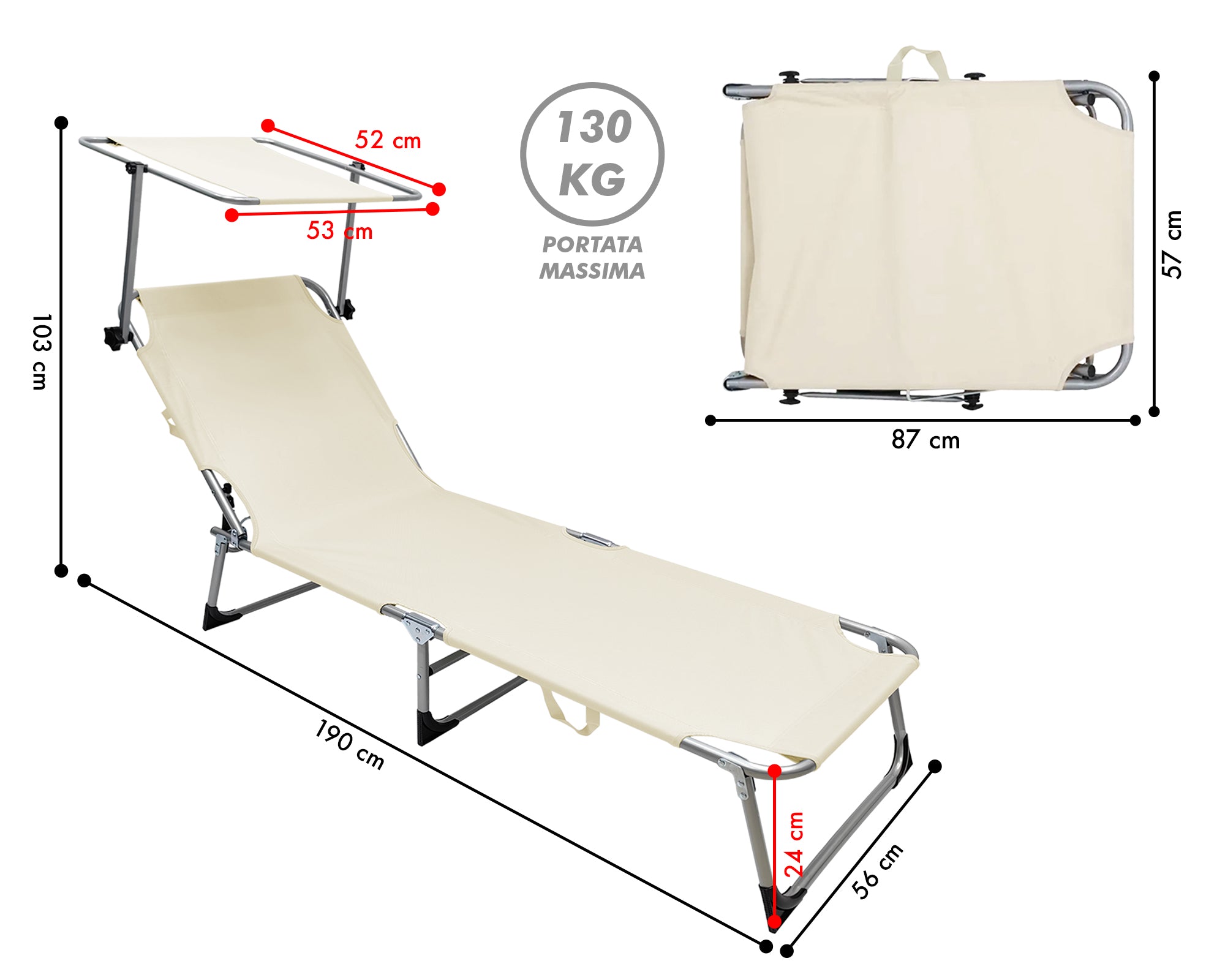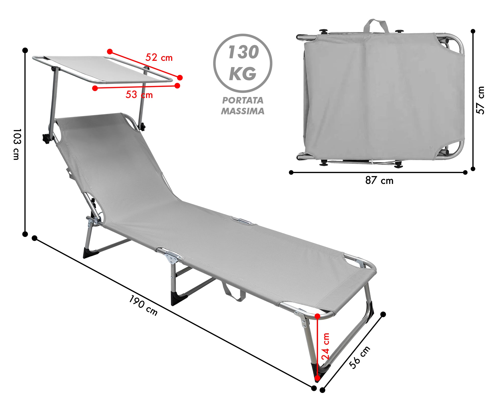 ✔️Dimensiones: Plegable, para transportarla con facilidad y comodidad a cualquier lugar. Dimensiones abierta: 190 x 56 cm. Altura desde el suelo: 24 cm. Dimensiones cerrada: 87 x 57 x 11 cm con asa para facilitar el transporte. Dimensiones del toldo: 52 x 30 cm.