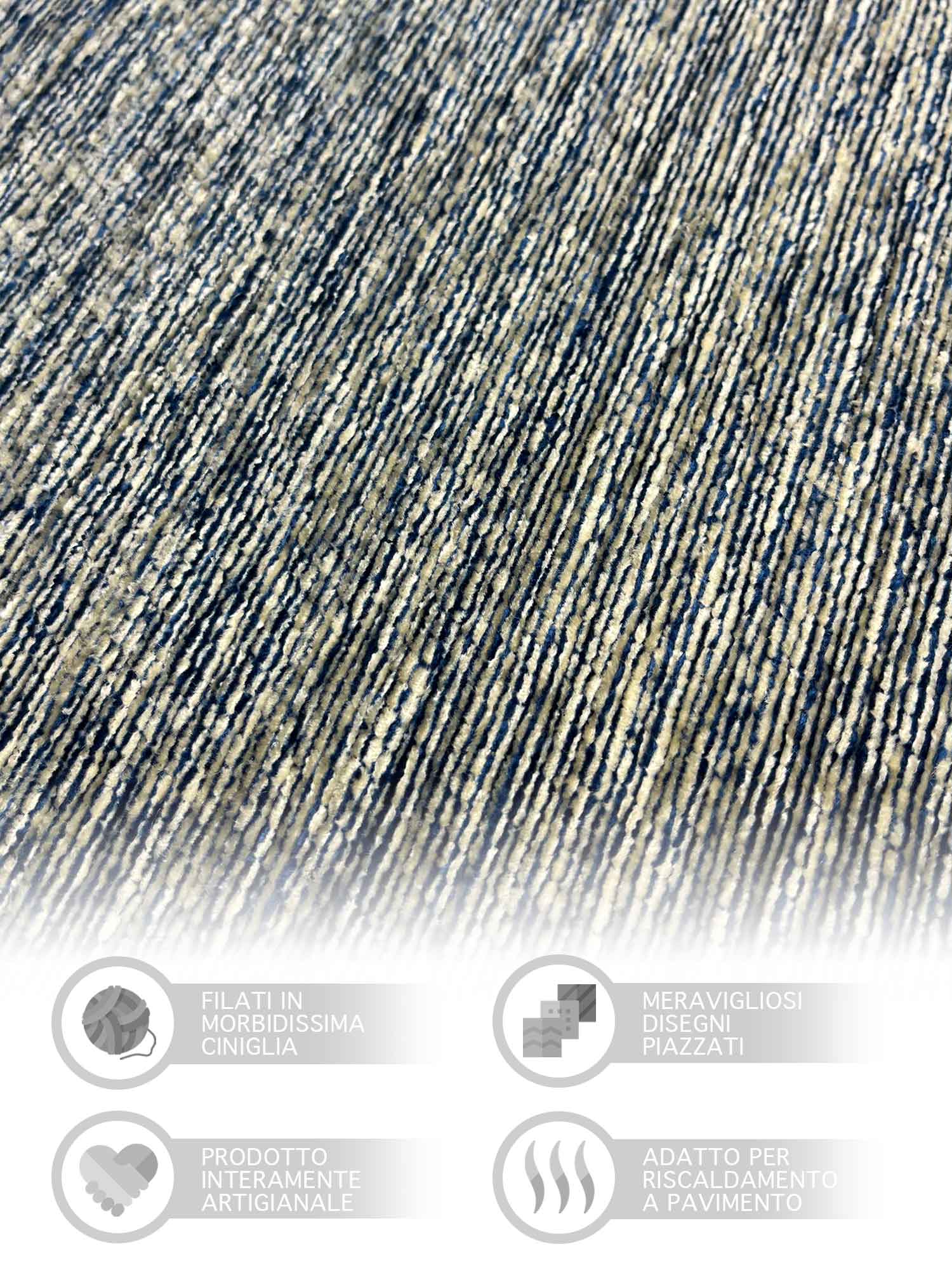 Alfombra moderna antideslizante de chenilla, fabricada en Italia, de algodón, grande, Roma BluMare
