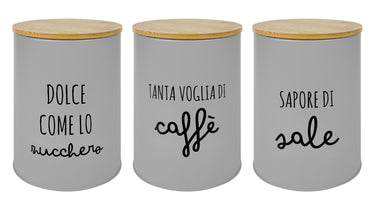 Ensemble de 3 bocaux ronds avec couvercle en bambou pour sel, sucre et café Il Gruppone
