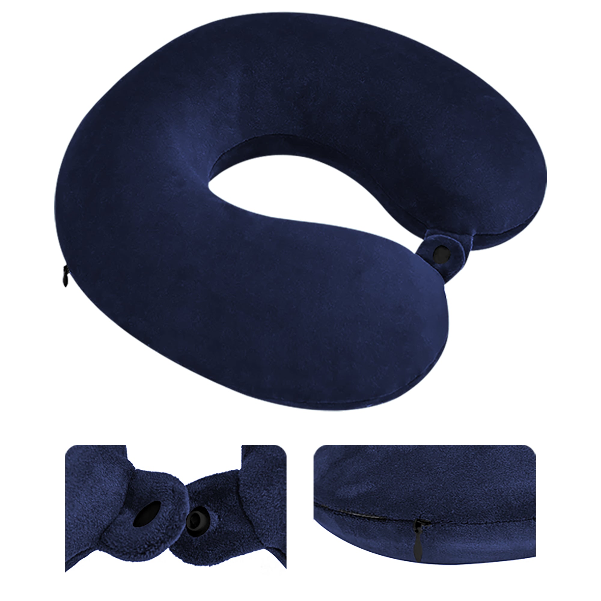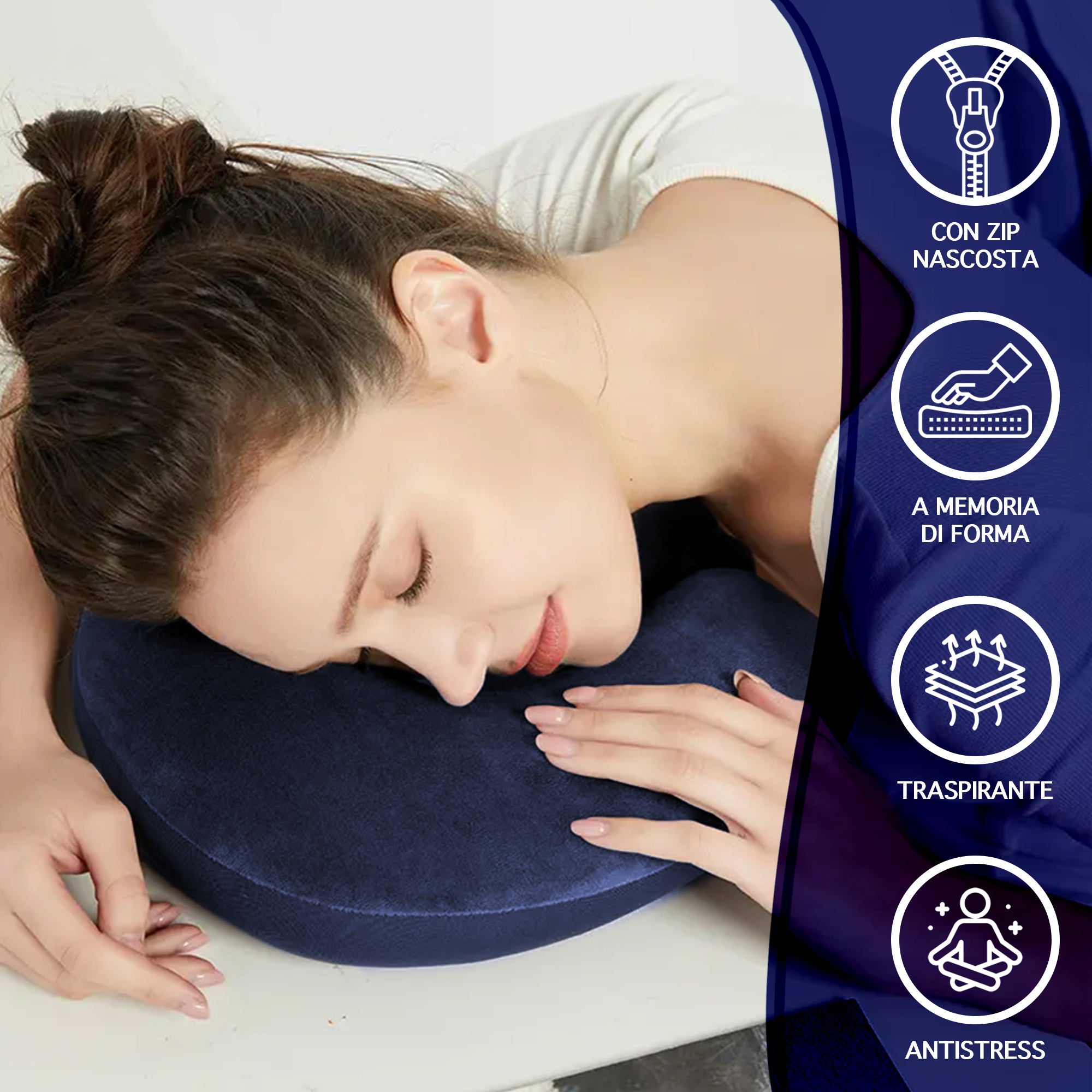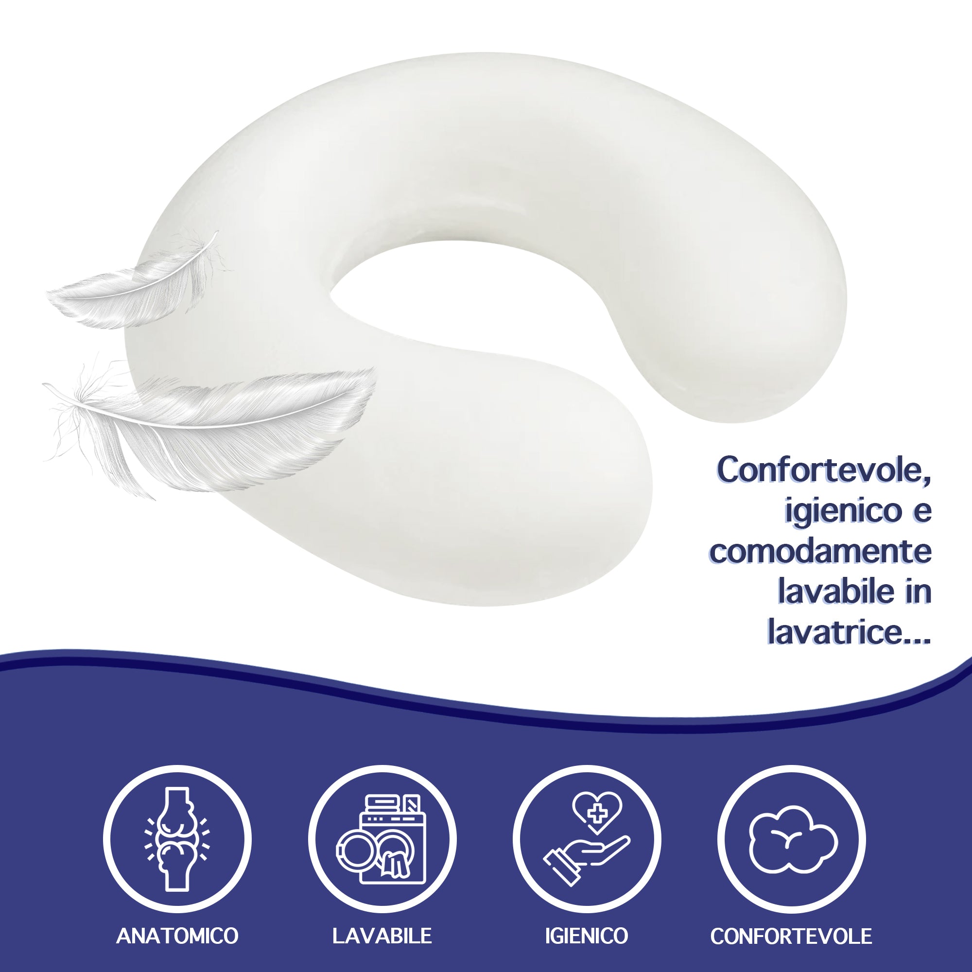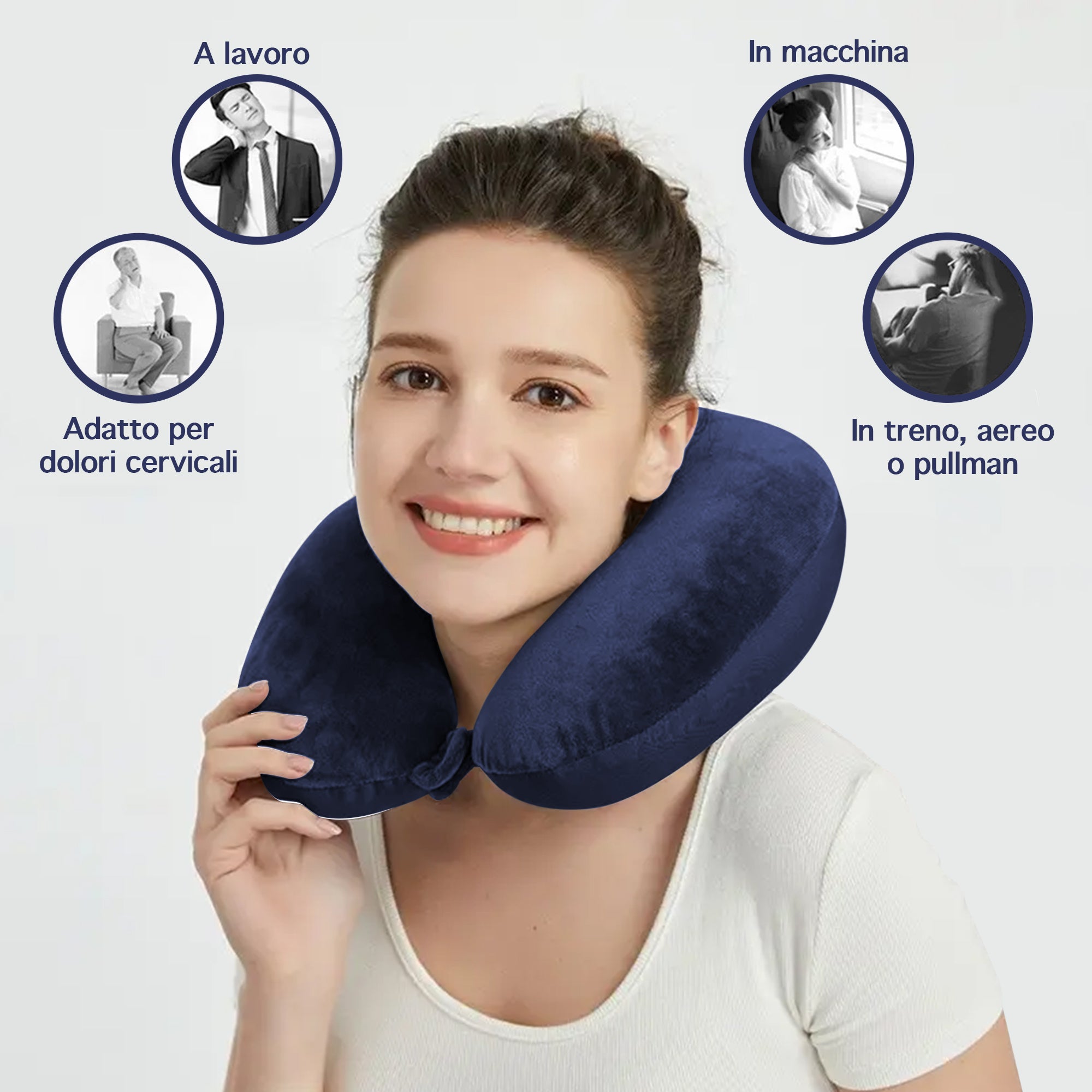 Cuscino Da Viaggio Semicircolare In Memory Foam 33x26Cm Sfoderabile Lavabile Antistress A Forma Di Memoria Traspirante Igienico Colore Blu Navy Prodotto Certificato Oeko Tex
