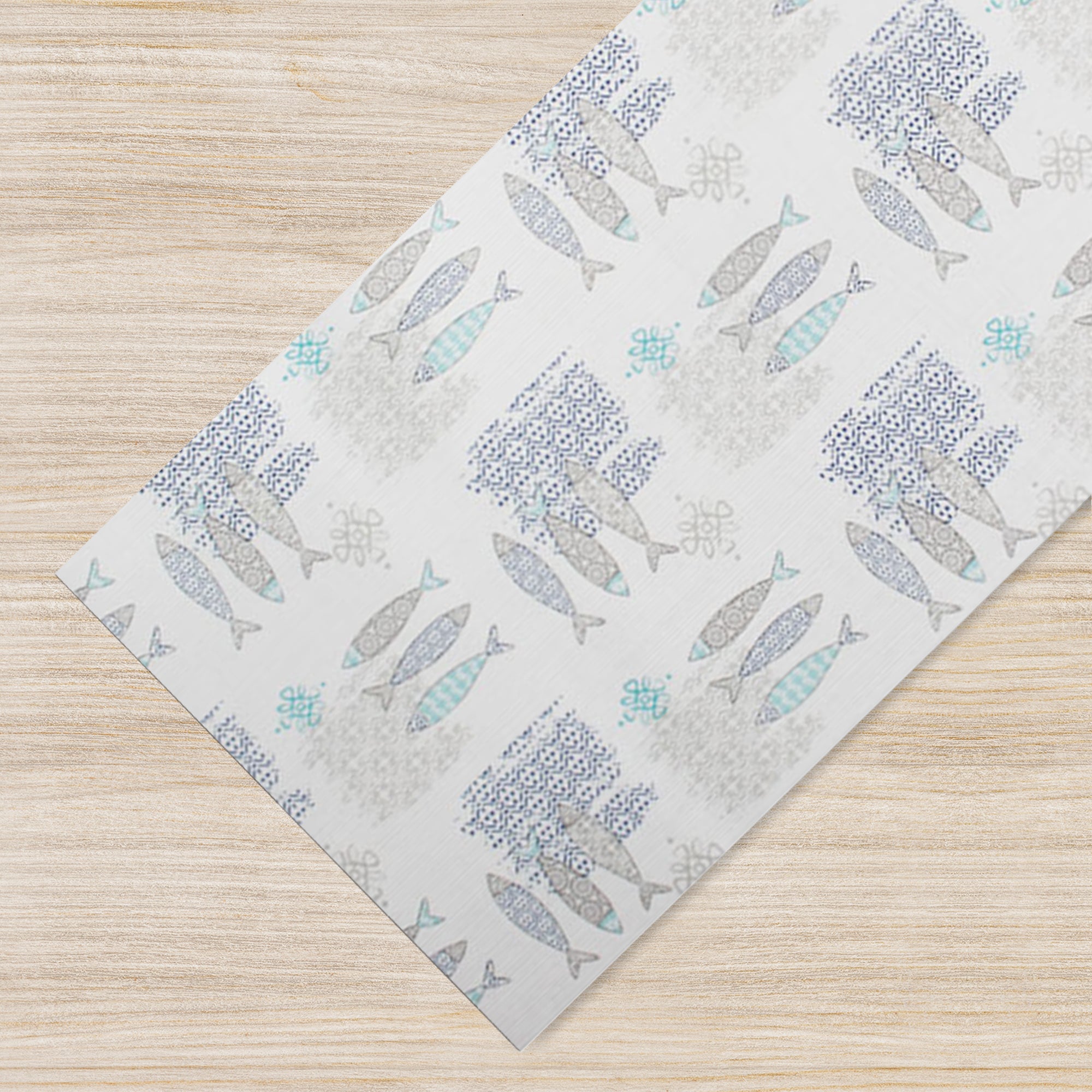Tappeto passatoia fantasia Pesca azzurra antiscivolo lavabile varie misure