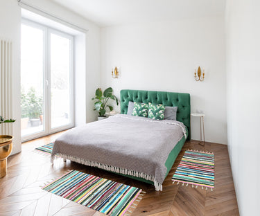 Set Tre Pezzi Tris Scendiletto Tappeti Camera Multicolore Con Nappe Cotone Naturale Fatto a Mano Etnico