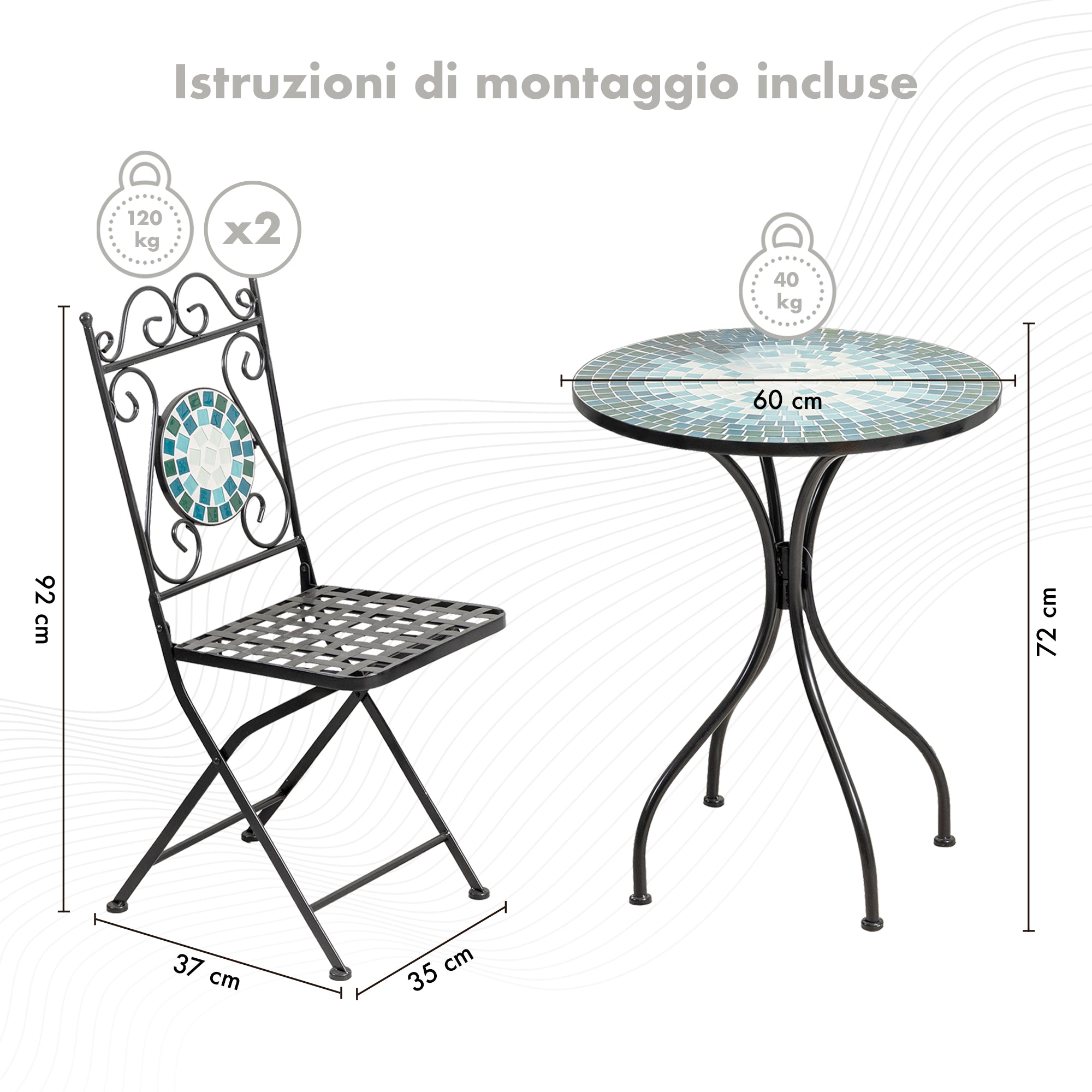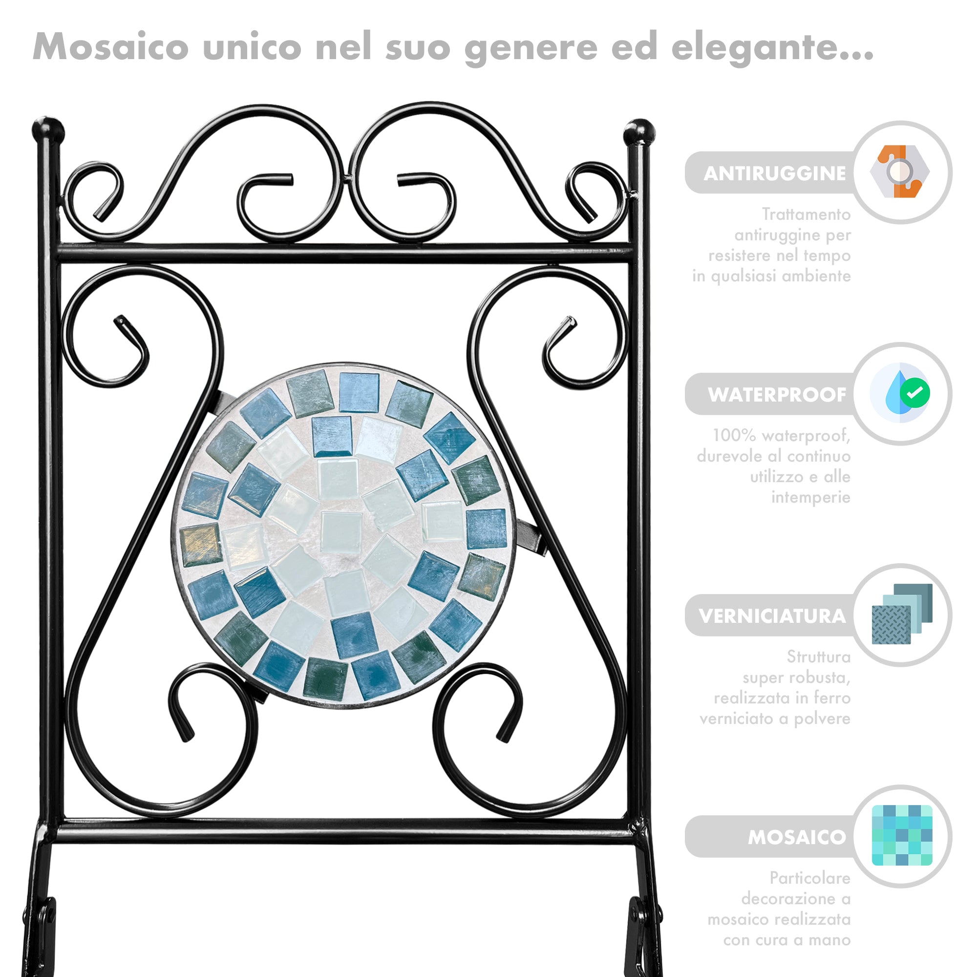 Set Bistrot Tavolino Con 2 Sedie Con Mosaico In Ceramica Per Esterno Terrazzo Giardino Pieghevoli Patio Casa,Bar,Ristoranti,Mobili Giardino