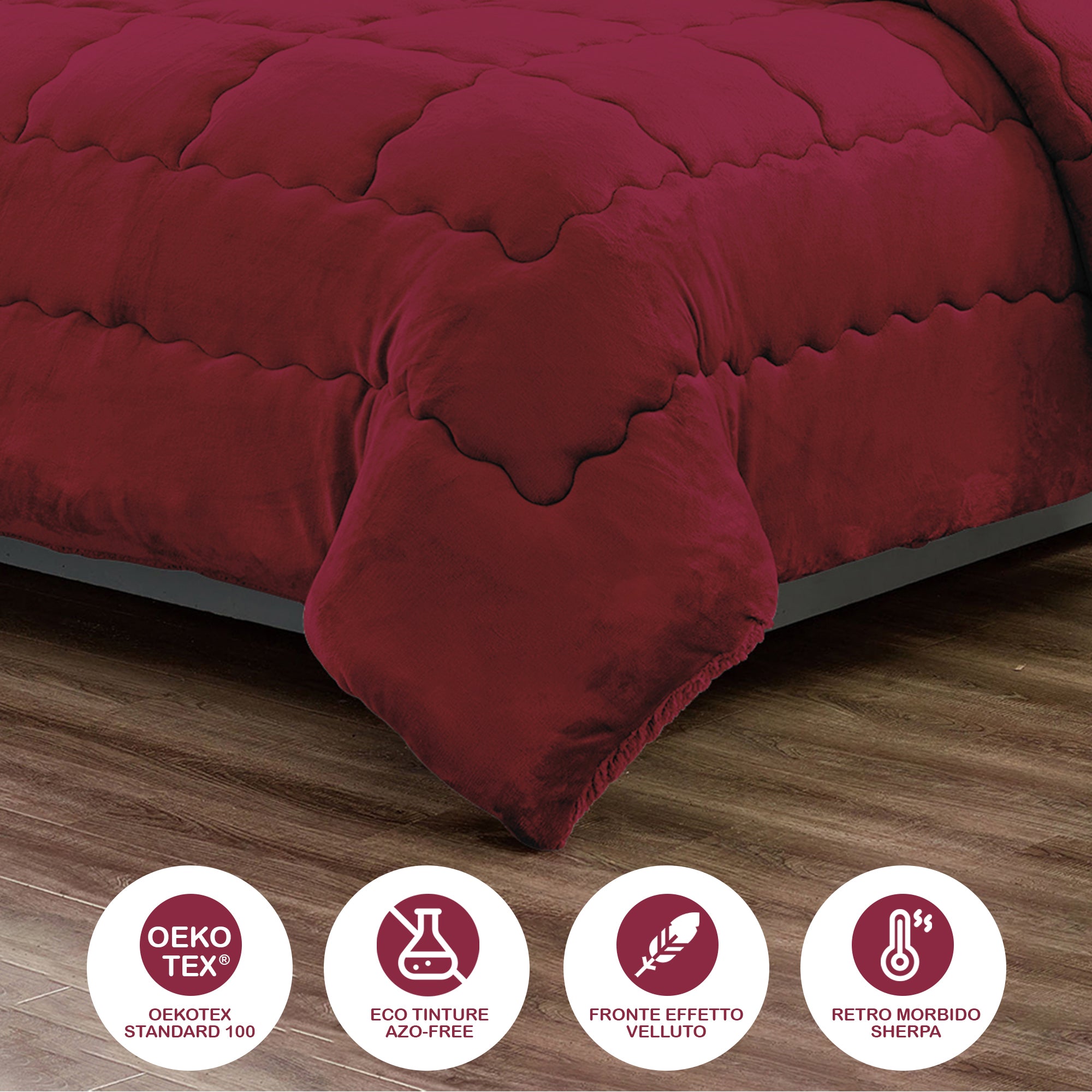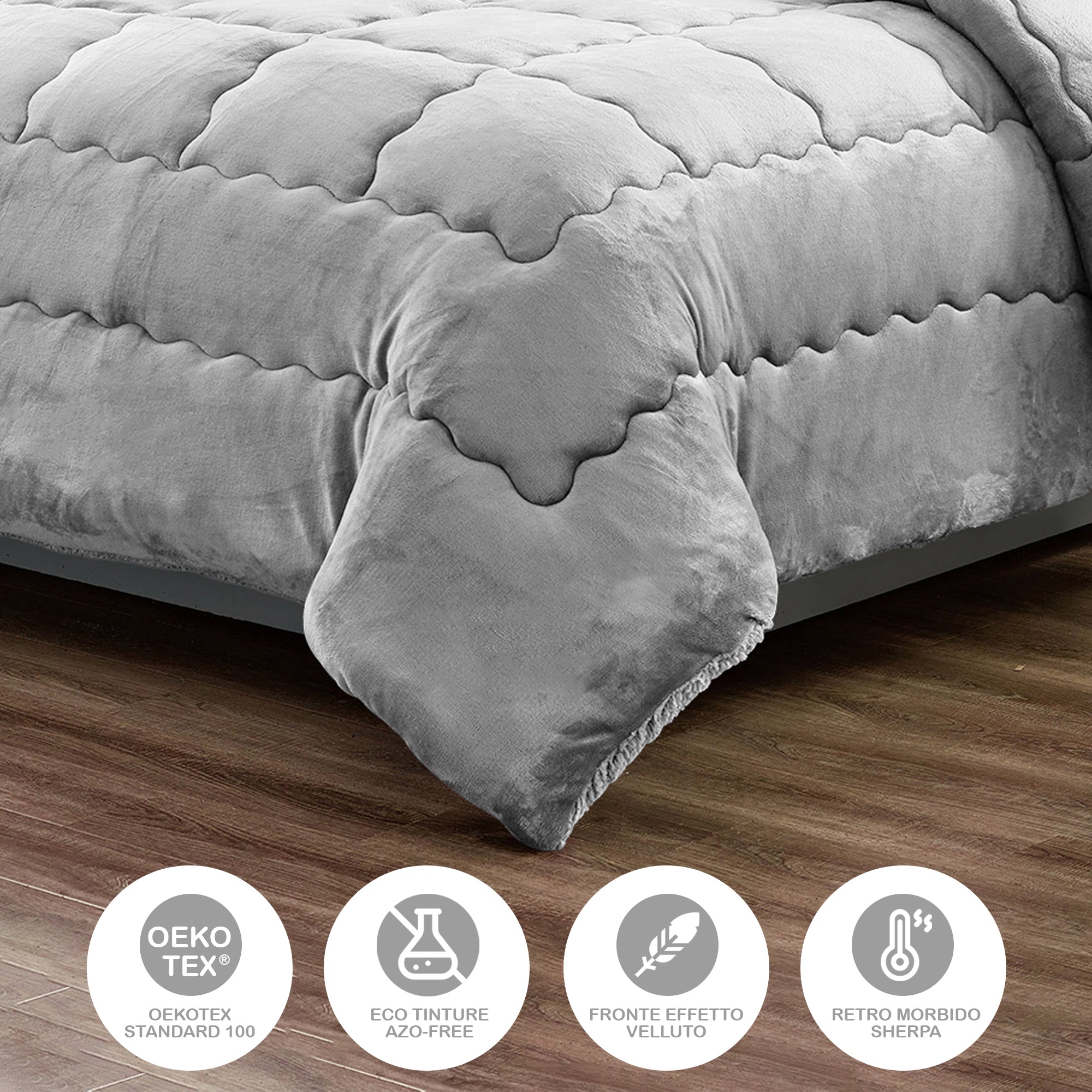 Trapunta Matrimoniale in Velluto con Retro Sherpa Invernale Effetto Piuma 560 g/mq Duck Friendly Il Gruppone