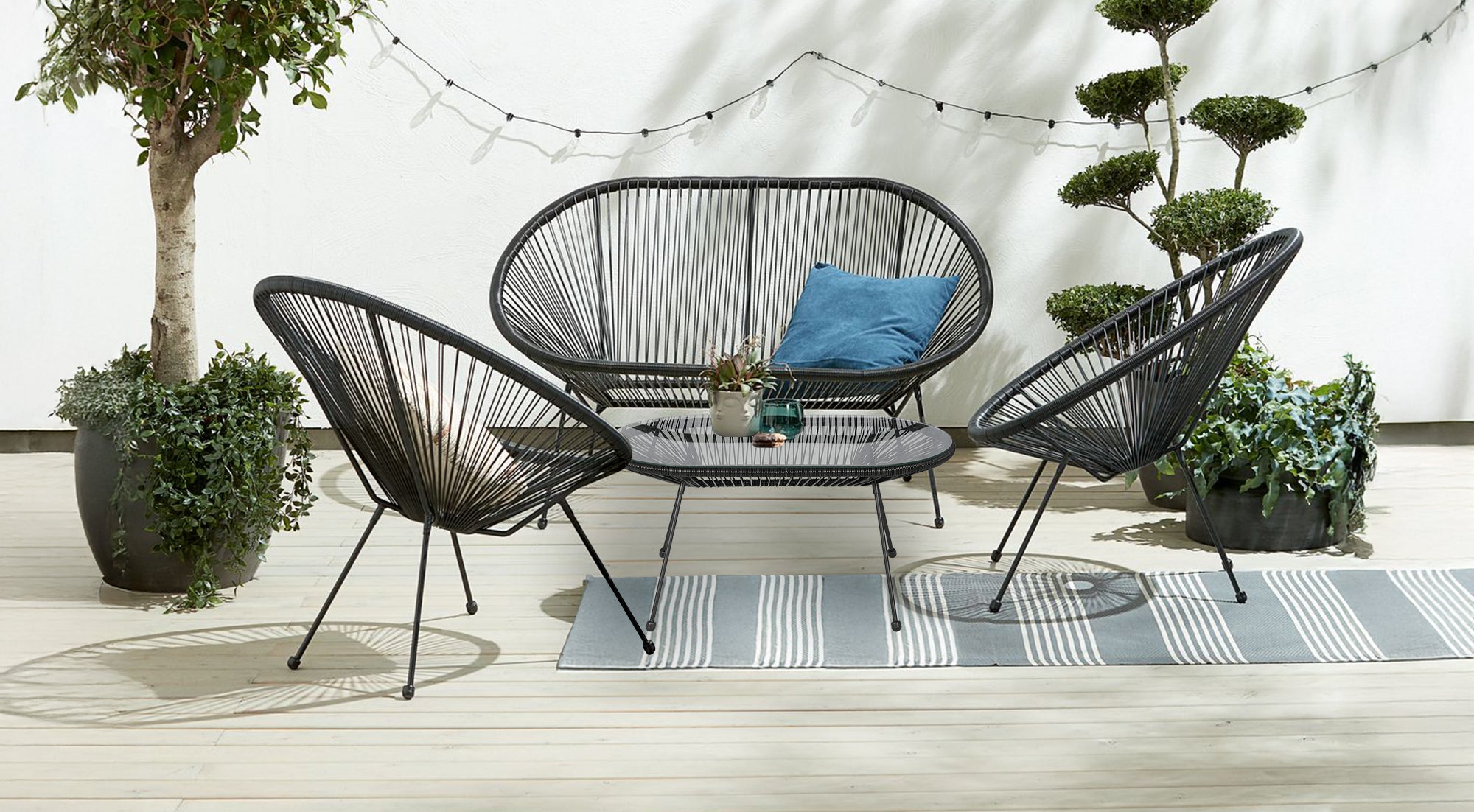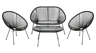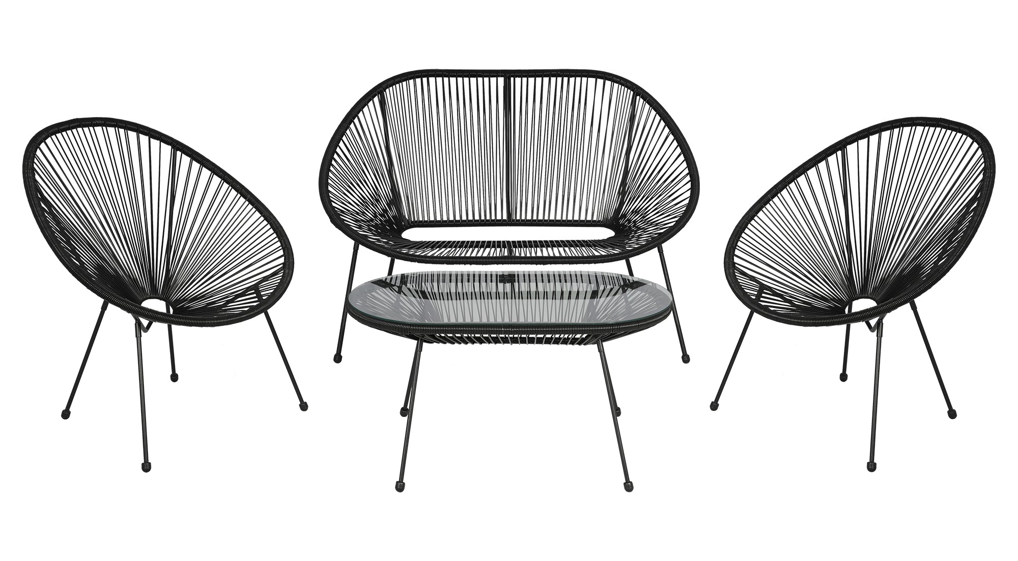 Salotto Da Giardino In Fili Di Resina Intrecciati 2 Poltrone Un Divano Un Tavolo Con Ripiano In Vetro Terrazzo Salottino Estivo Sedie Tavolino Struttura Solida In Acciaio