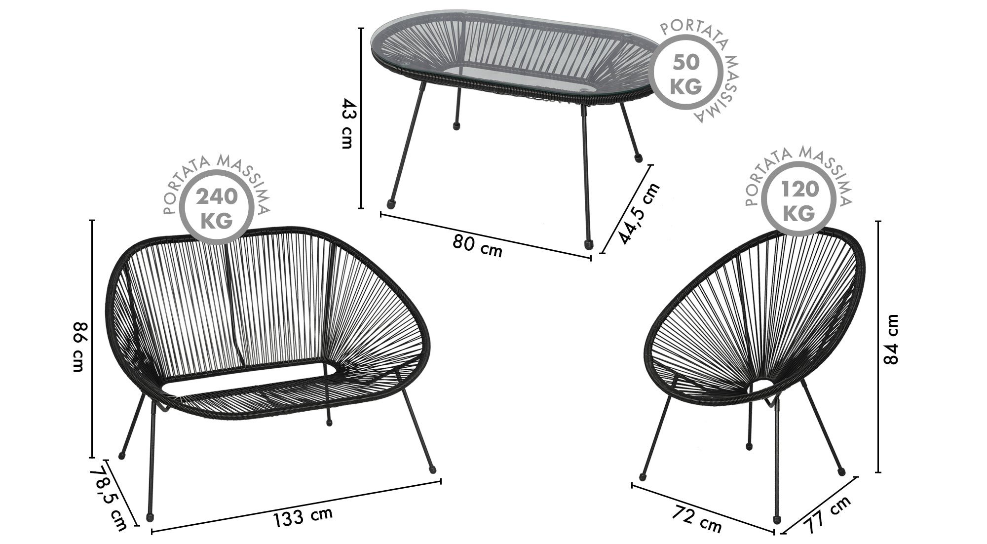 ✔️CONFORT E FUNZIONALITA':Questo salottino non è solo esteticamente gradevole, ma anche estremamente funzionale. Le poltrone e il divano offrono un'ottima comodità, permettendo di trascorrere ore all'aperto in totale relax. Che si tratti di una cena all'aperto, di un pomeriggio di lettura o di una chiacchierata con amici, questo set è la scelta ideale per arricchire il tuo spazio esterno con stile e comfort.